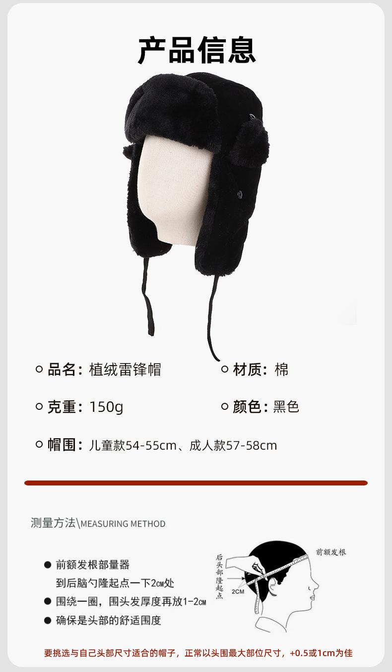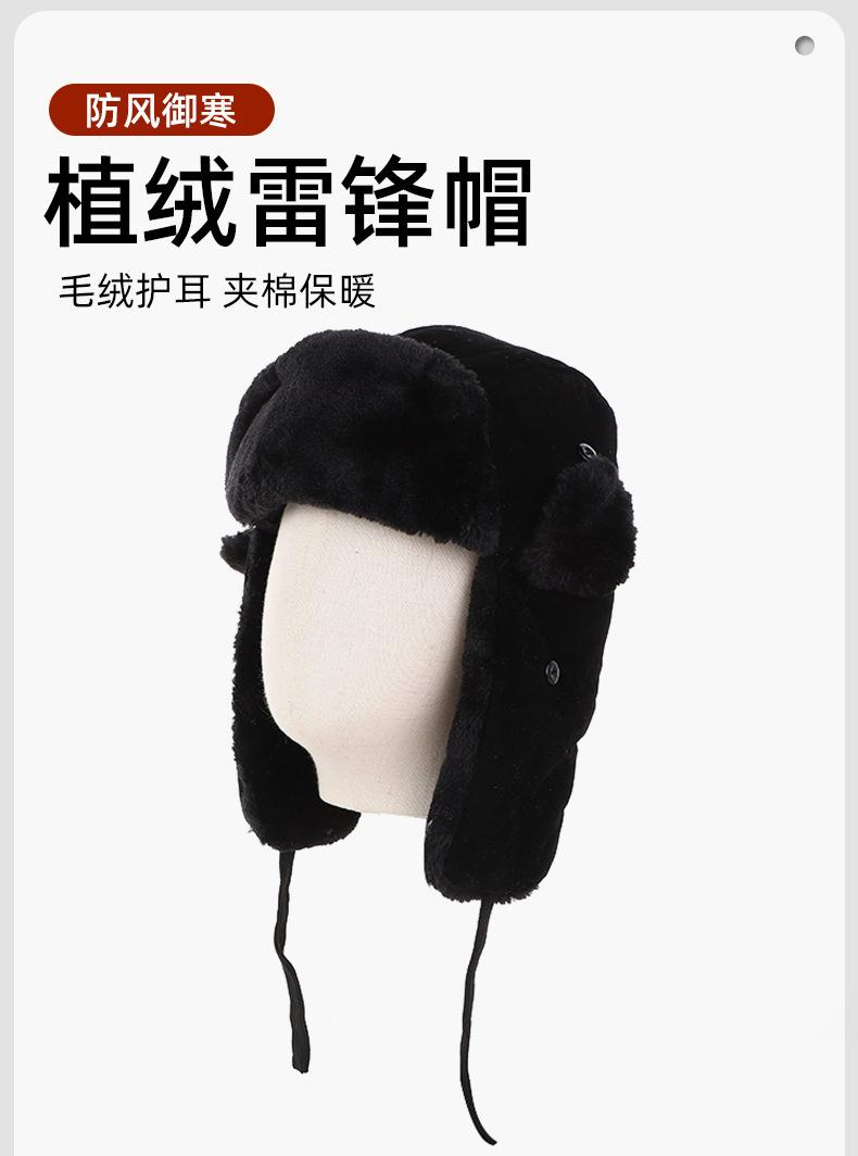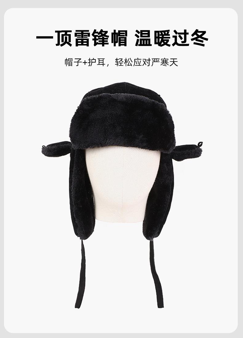 Lã forrada Lei Feng Chapéu Simples Cor Sólida Inverno Quente Proteção Auricular Equitação Chapéu À Prova de Vento À Prova de Vento Flocando Lei Feng Chapéu