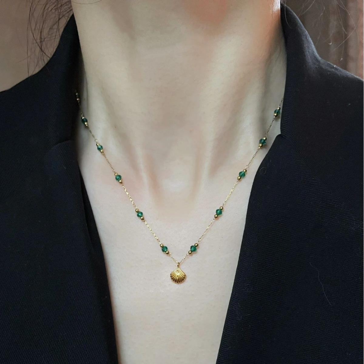 Luz de Luxo Vintage Colar de Esmeralda Pequeno Shell de Ouro 18K Pingente de Ouro Sentido de Design de Alta Qualidade Elegante Clavícula Corrente Feminina
