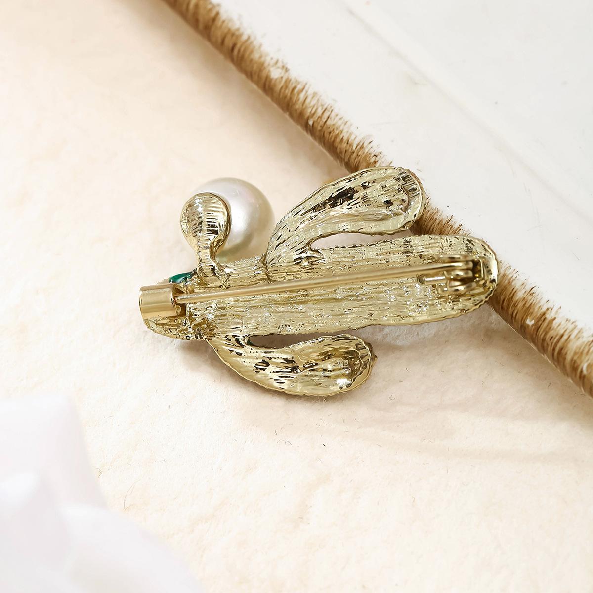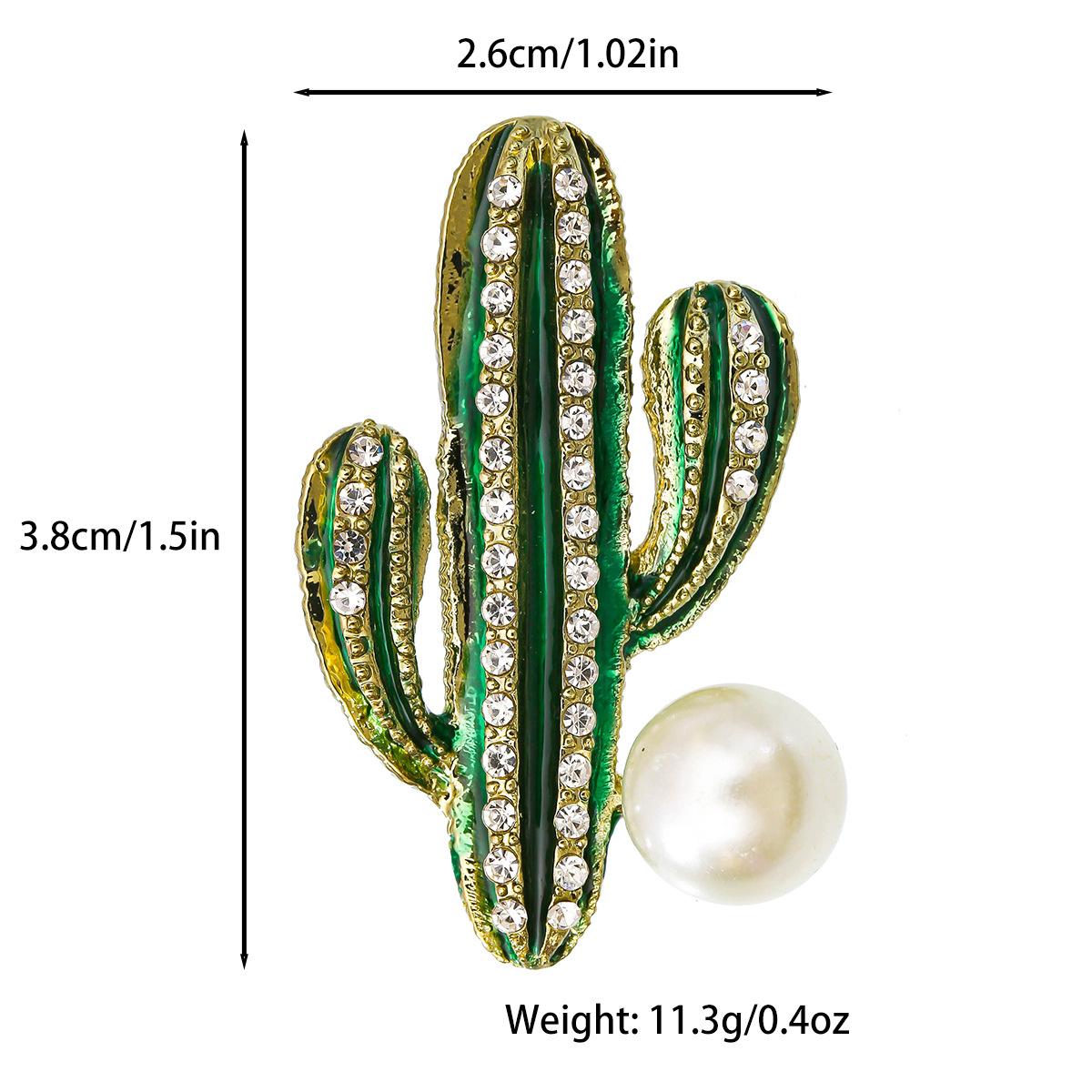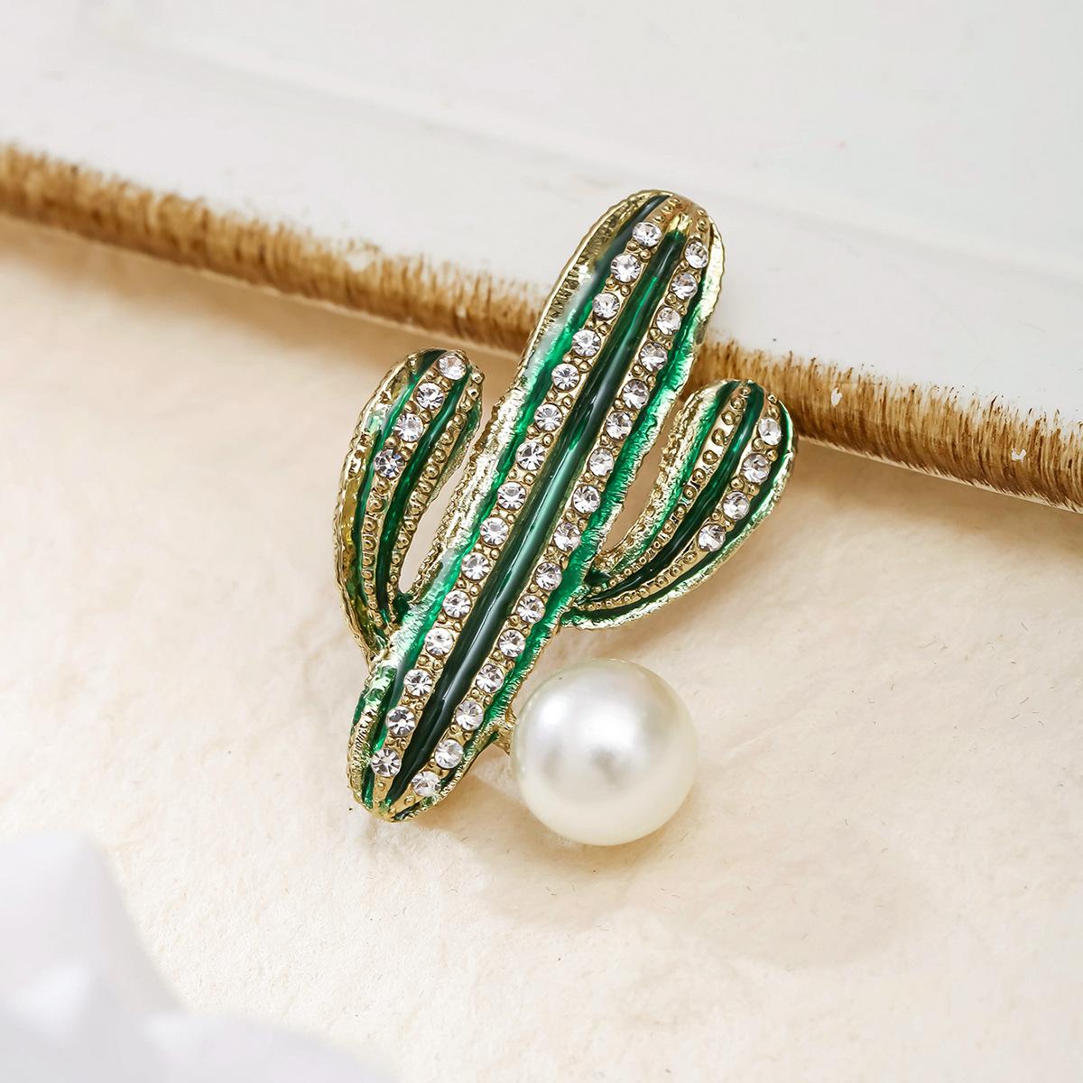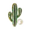 Broche de pérola de cacto incrustado de diamante criativo, moda feminina, vestido, colarinho fixo, casaco, cardigan, alfinete decorativo