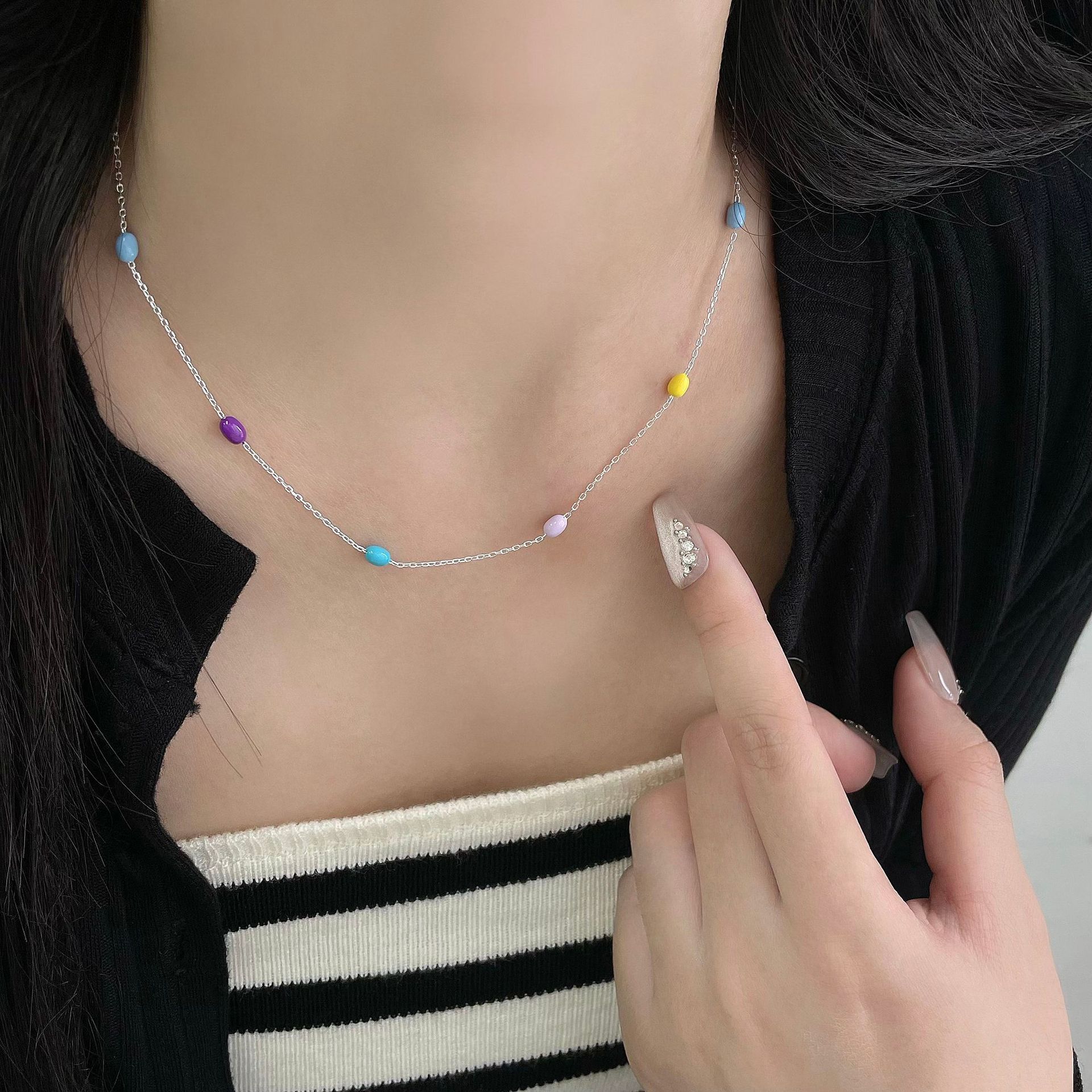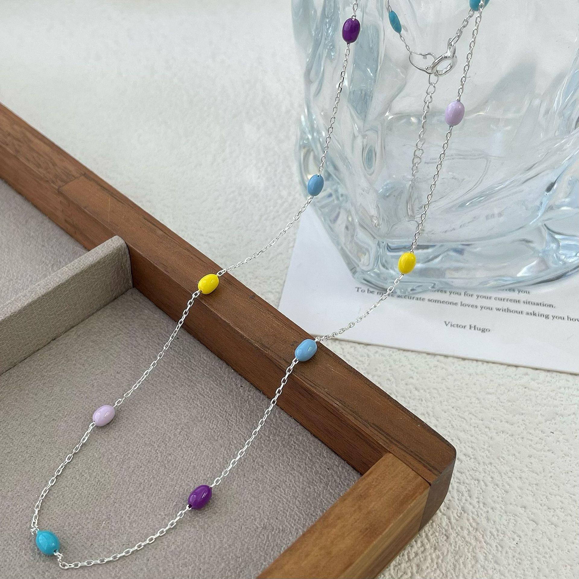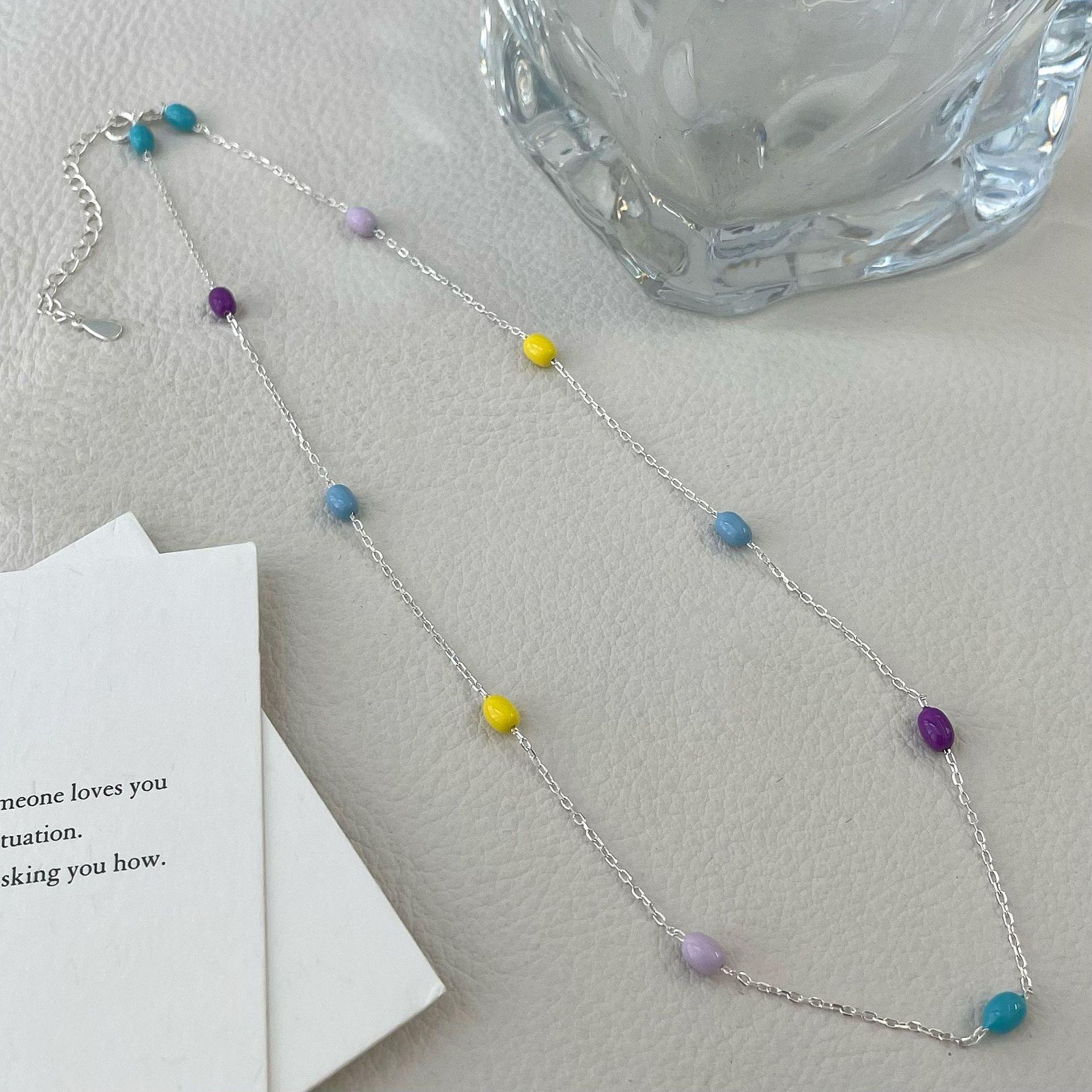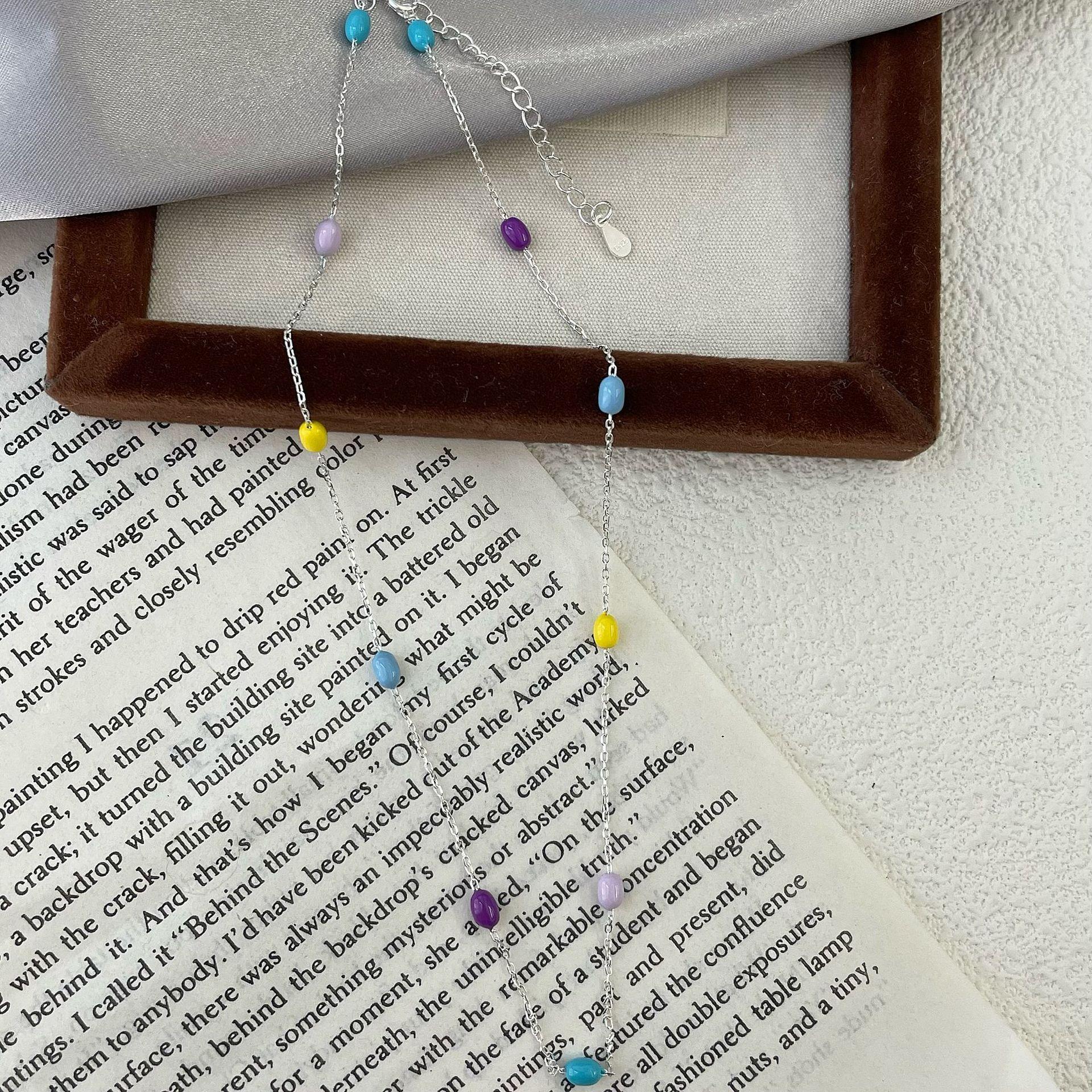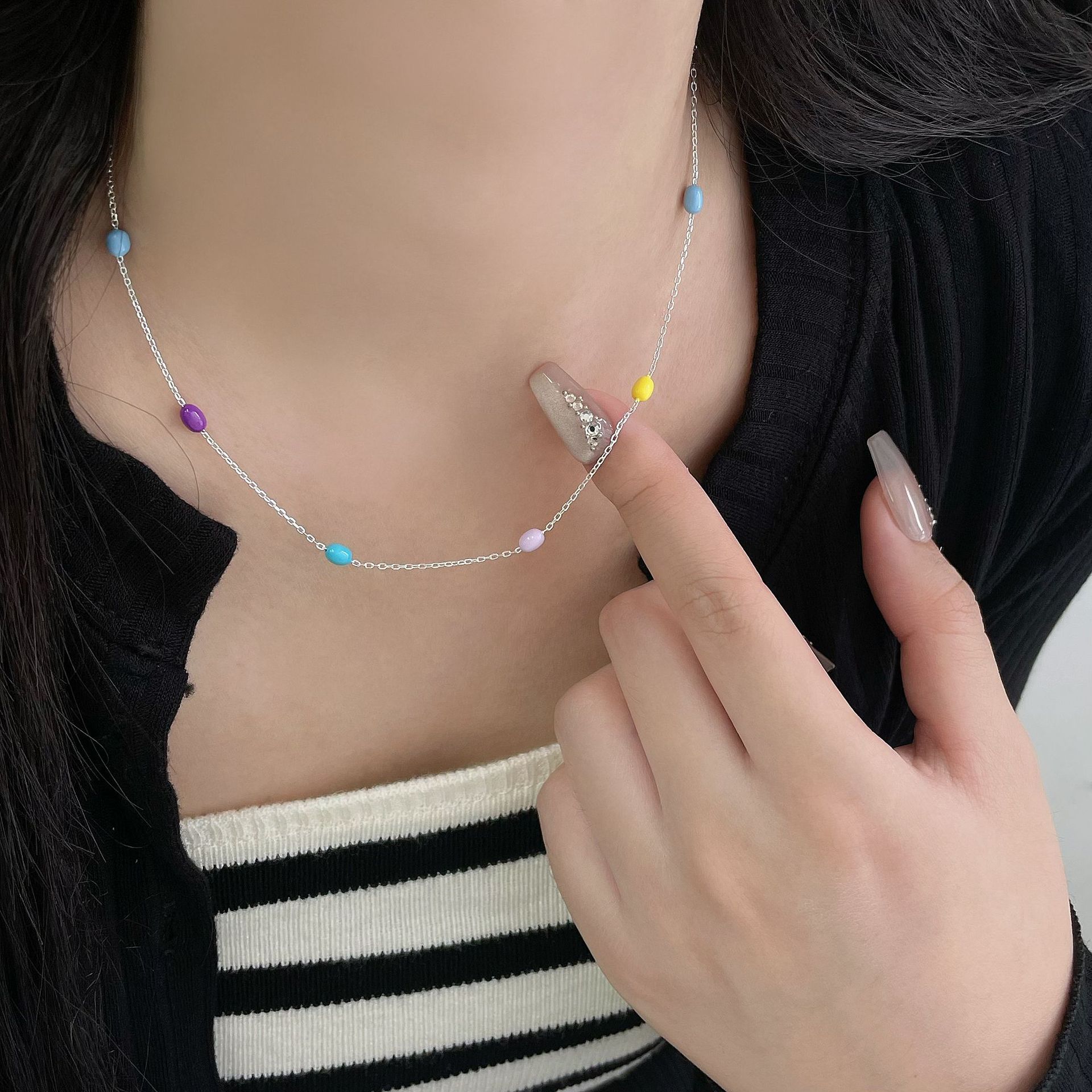 S925 Sterling Silver Color Bean Drop Yo Colar de clavícula estilo coreano Ins Temperamento de alta classe Niche Design All-match
