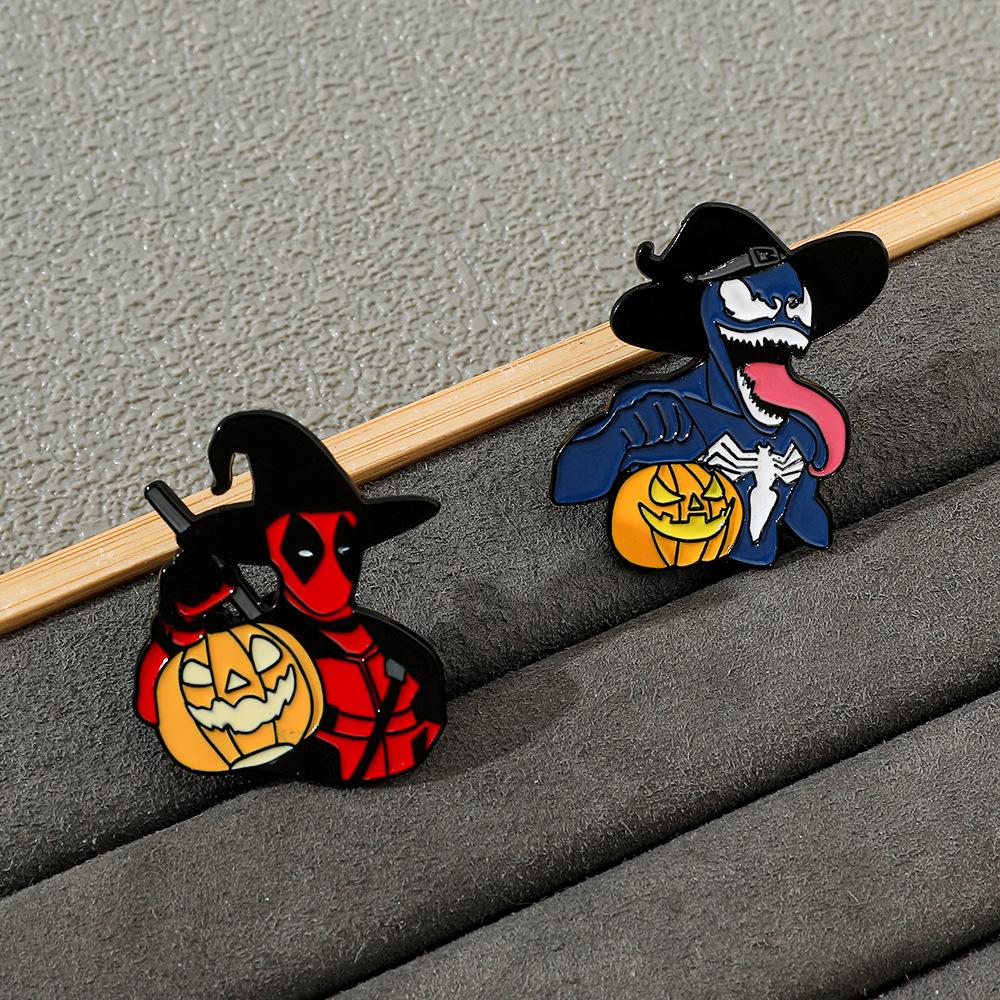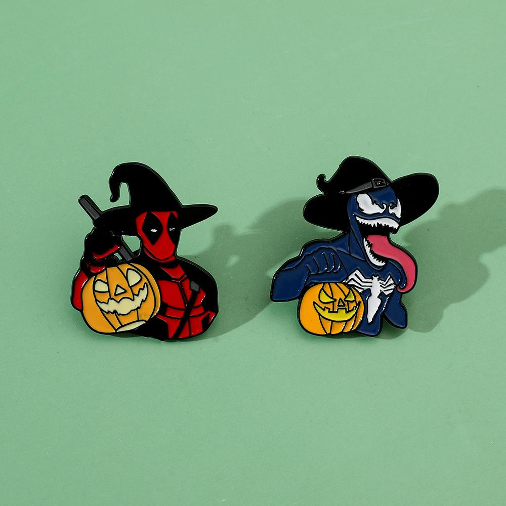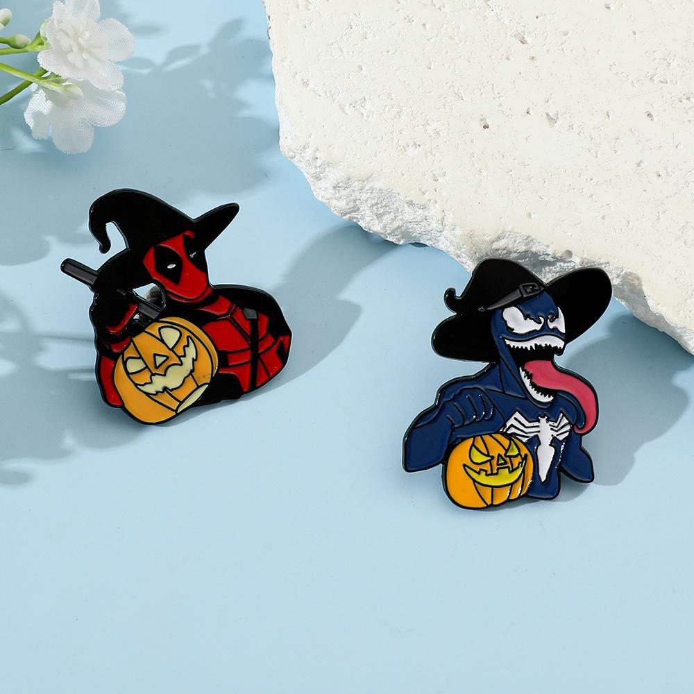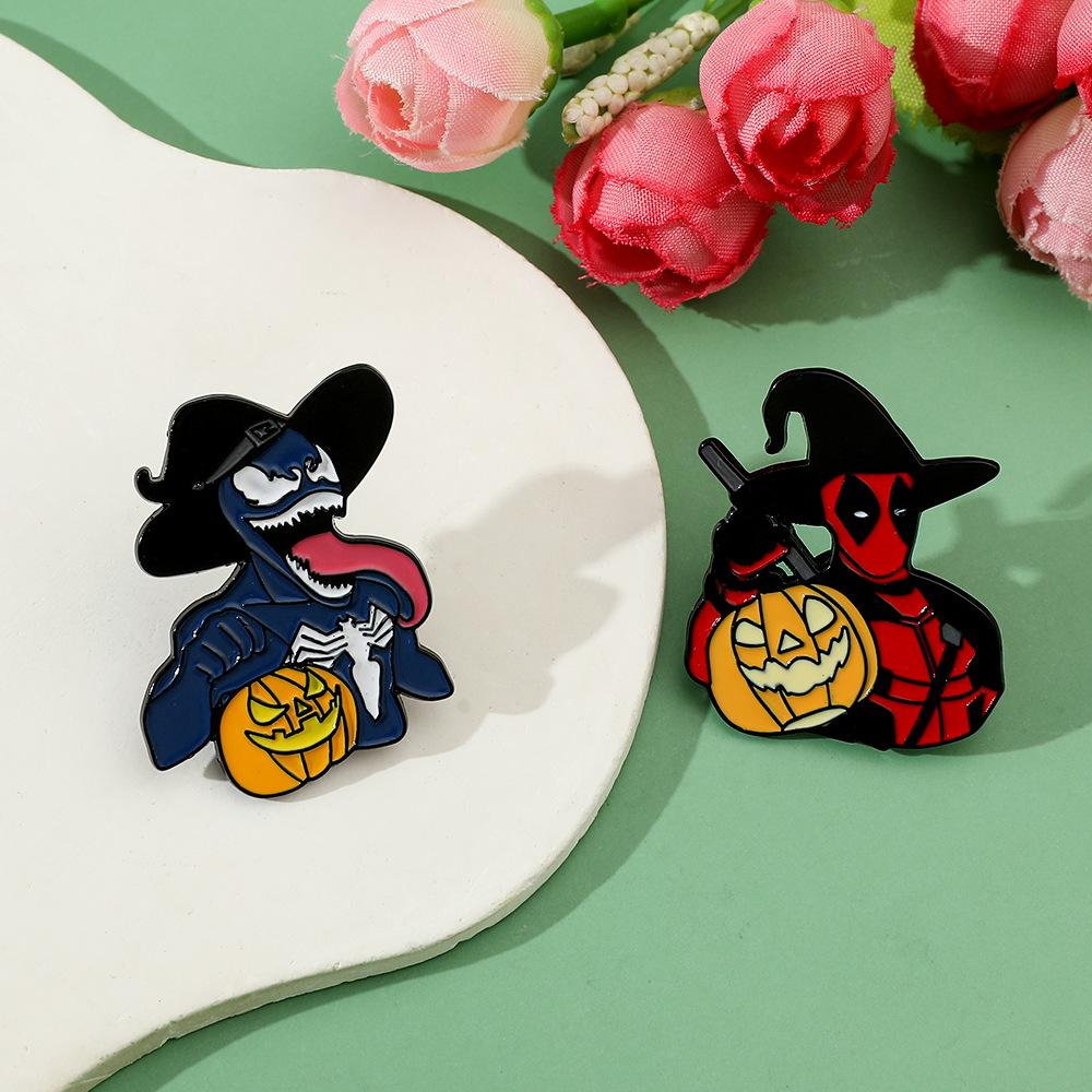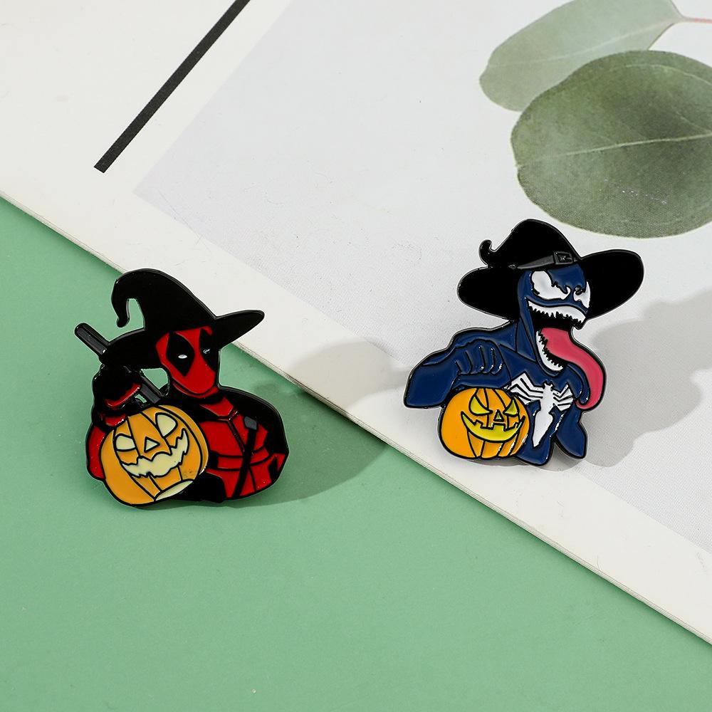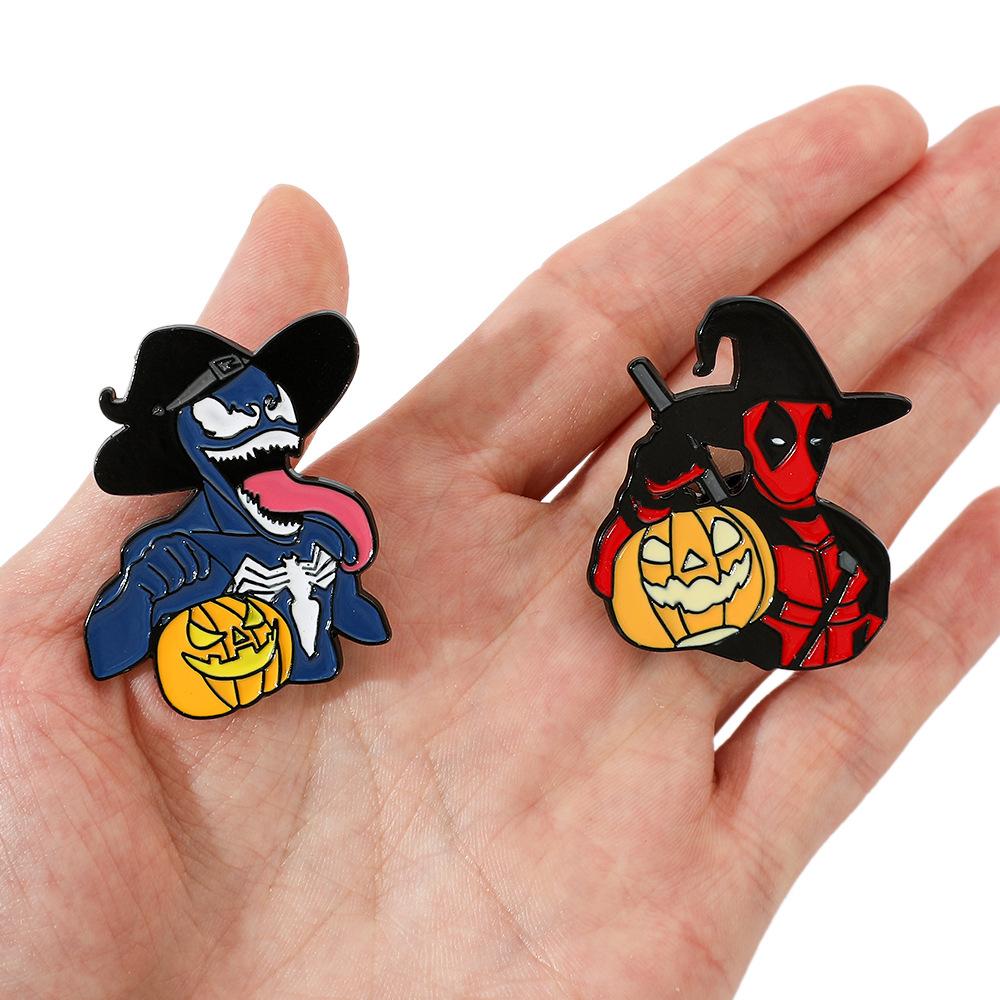 Compre Desenho animado europeu e americano criativo elementos sagrados Deadpool Venom broche de metal decorativo óleo caindo liga pinos acessórios no atacado no Joom.pro