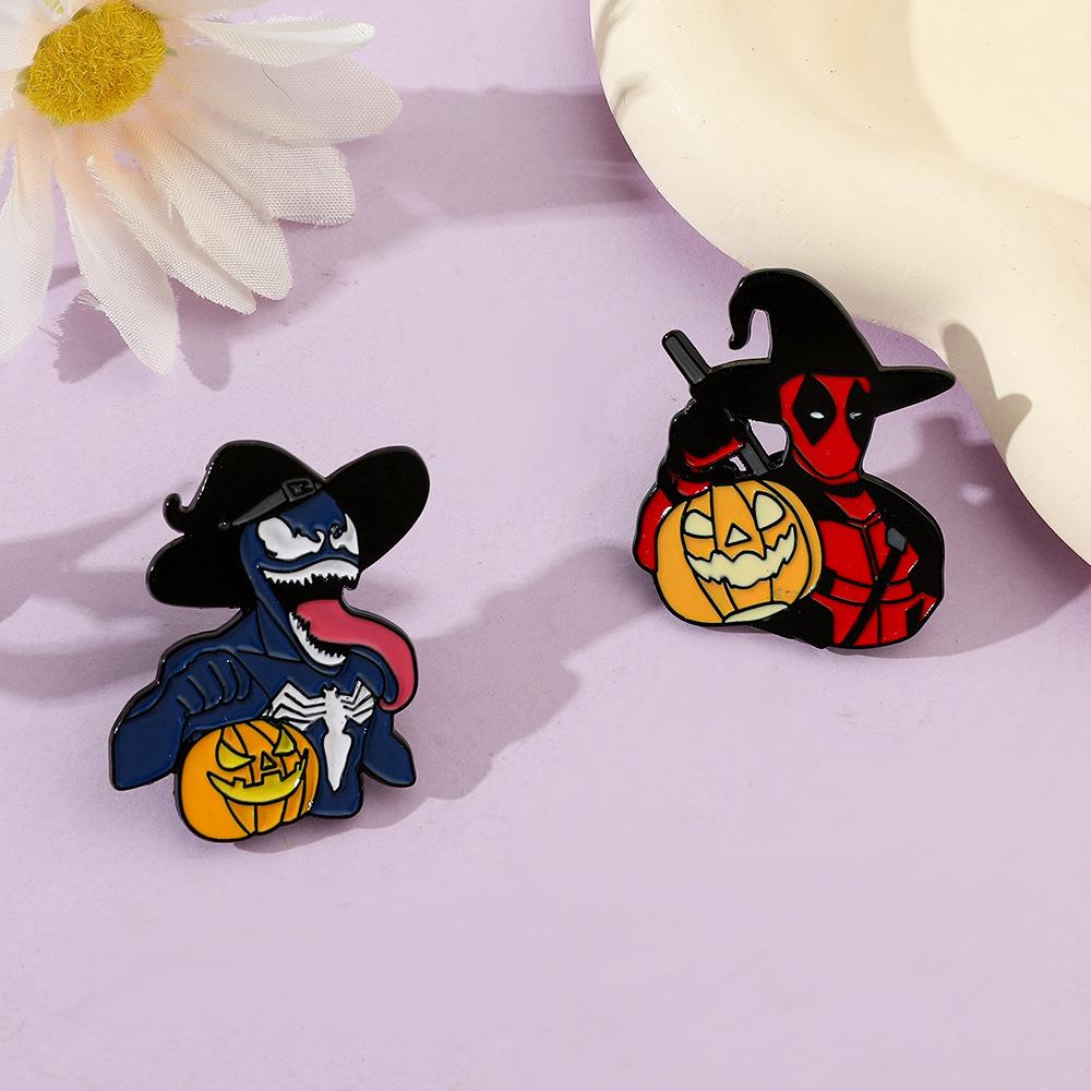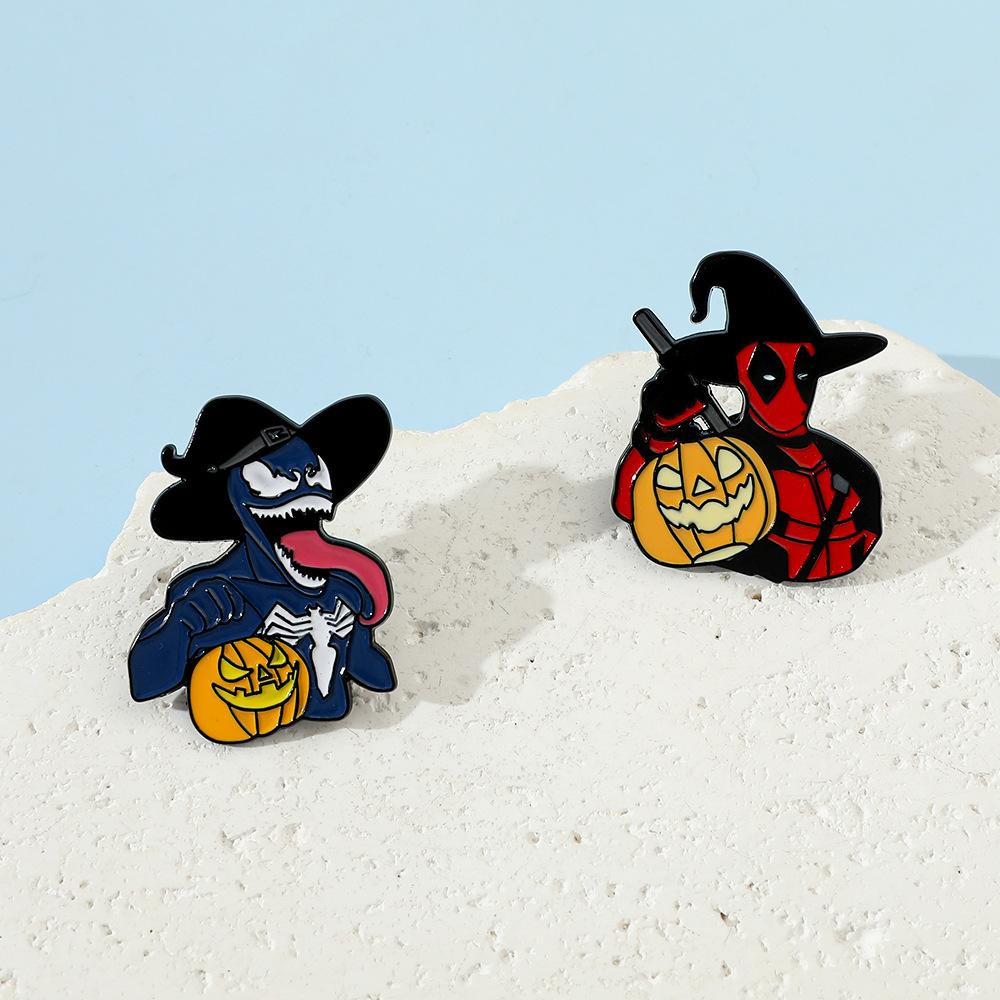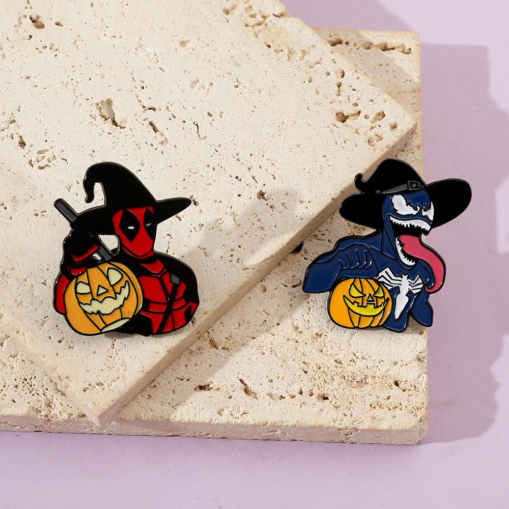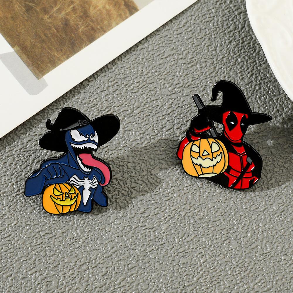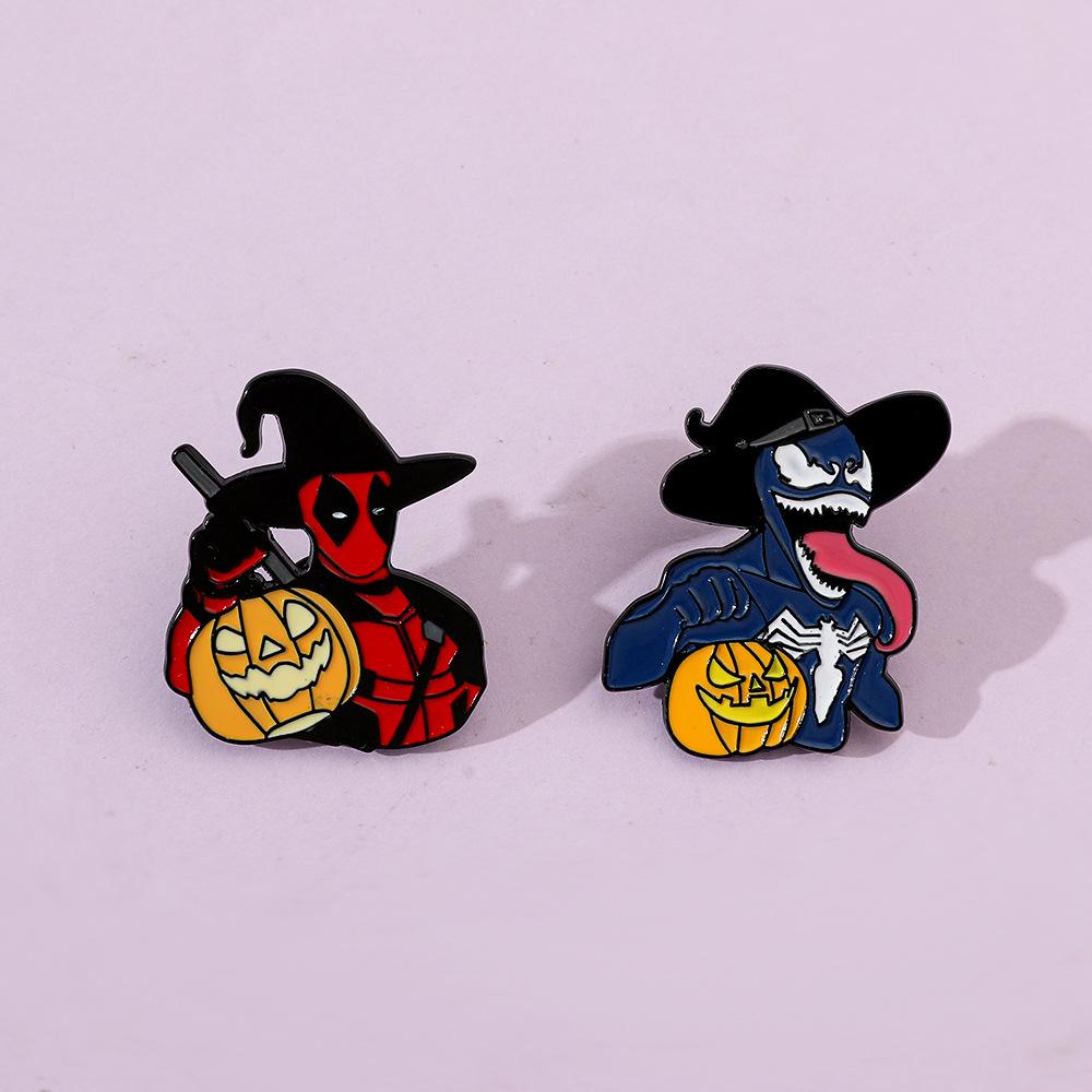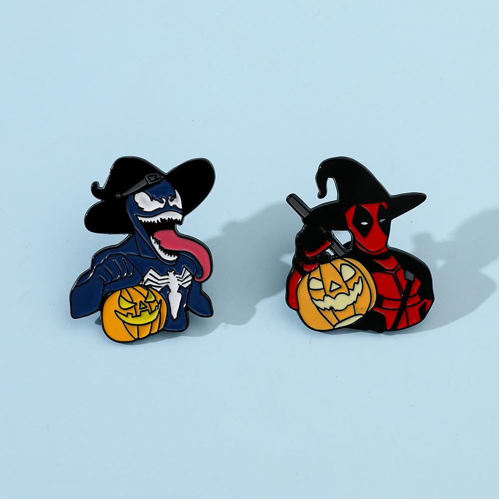 Compre Desenho animado europeu e americano criativo elementos sagrados Deadpool Venom broche de metal decorativo óleo caindo liga pinos acessórios no atacado no Joom.pro