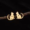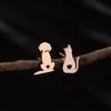 Novos brincos de gatinho assimétricos simples e fofos de fronteira com personalidade em formato de coração e amor oco atacado