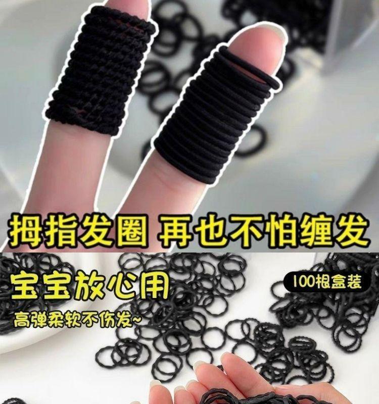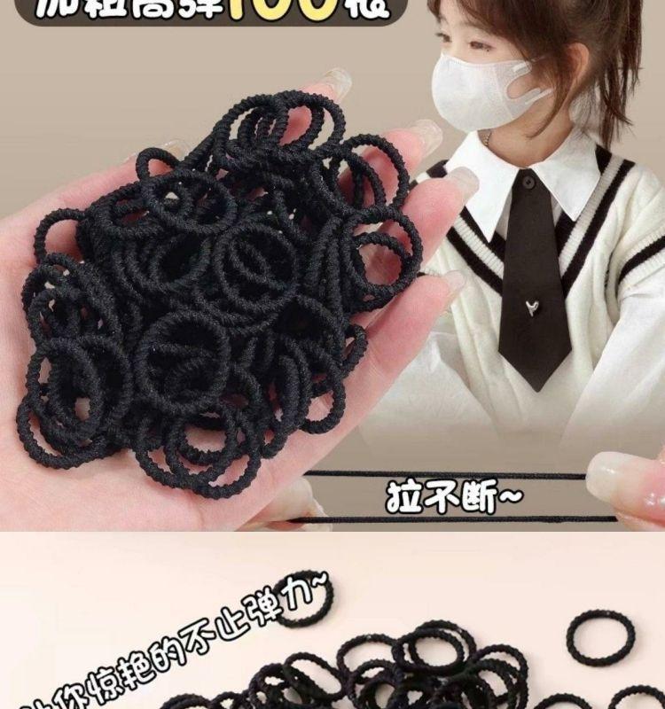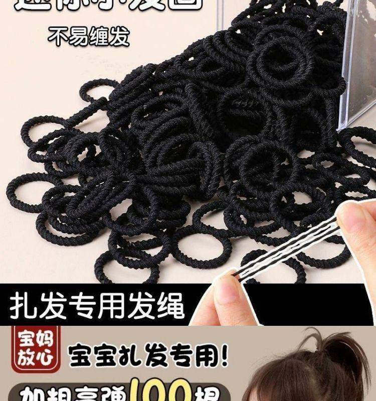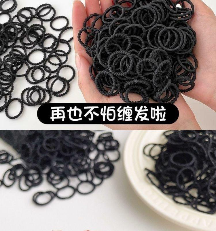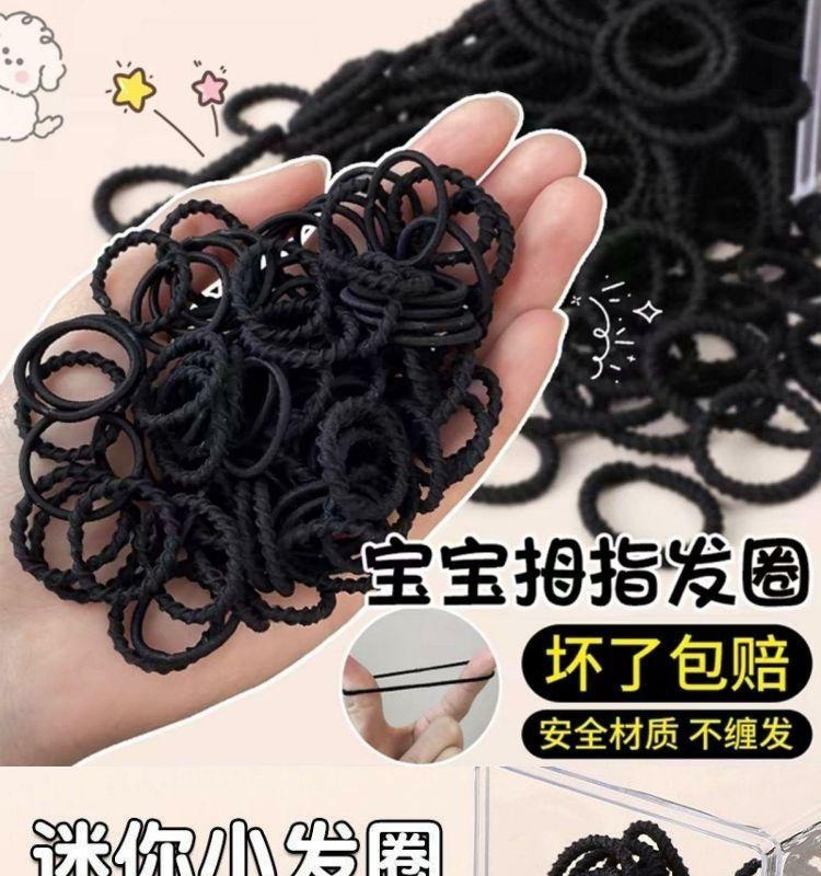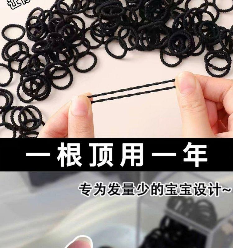 Elástico Preto Pequeno de Borracha para Cabelo Infantil Amarrador de Cabelo de Bebê Corda de Cabelo Pequena Anel de Cabelo de Alta Elasticidade Anel de Borracha Feminino Corda de Cabeça Acessórios de Cabelo