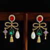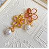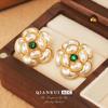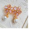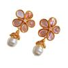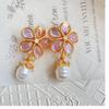 Preservação de alta cor em ouro real galvanizado, estilo francês romântico doce, pingente de pérola barroca, brincos de flores, marcação de clipes de orelhaClipe de orelha triangular com agulha de prata S925 para orelhas não furadas Comprimento: 6 cm