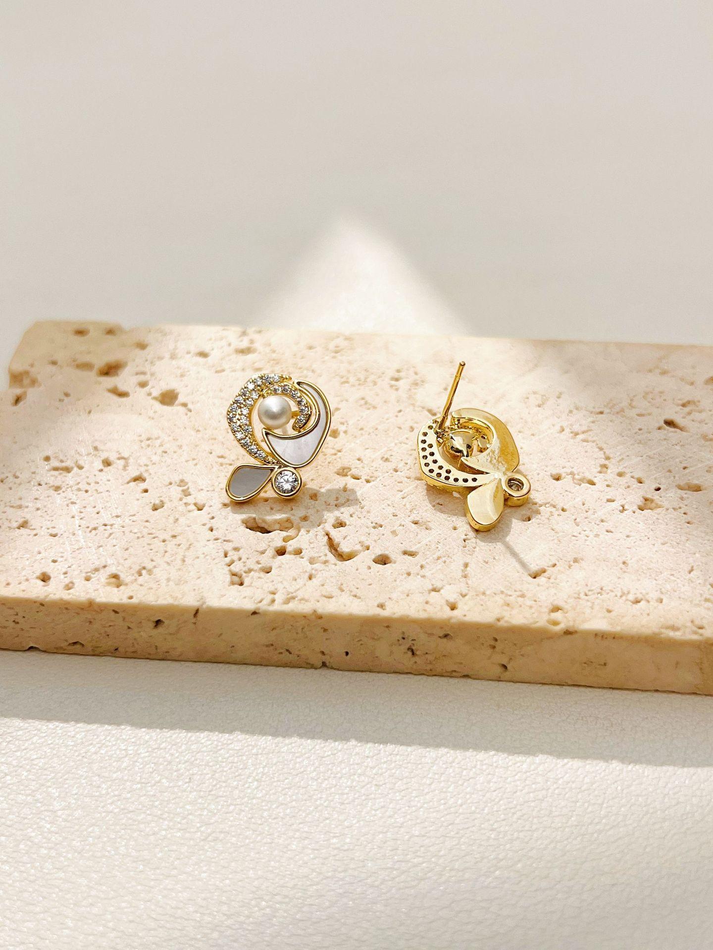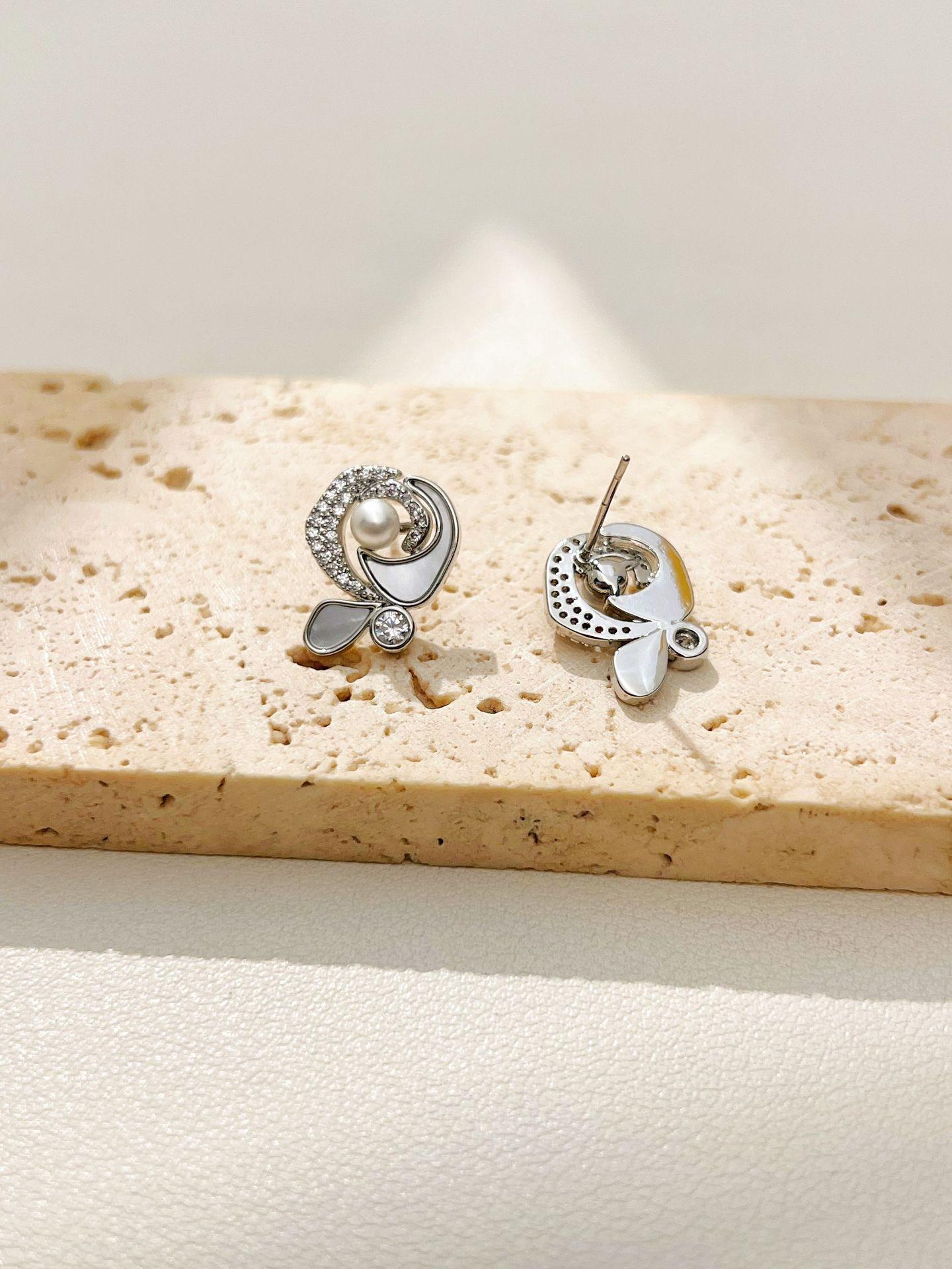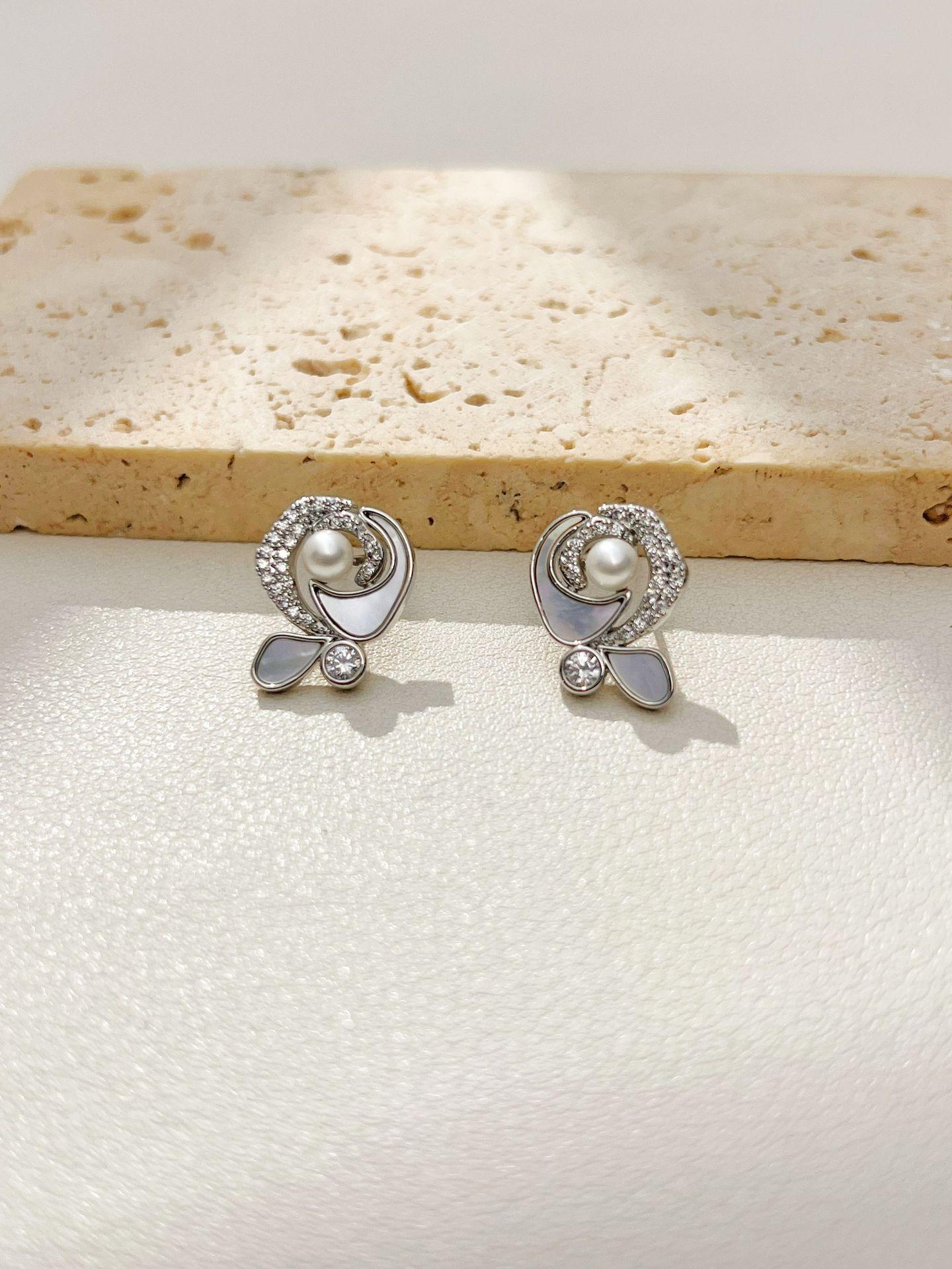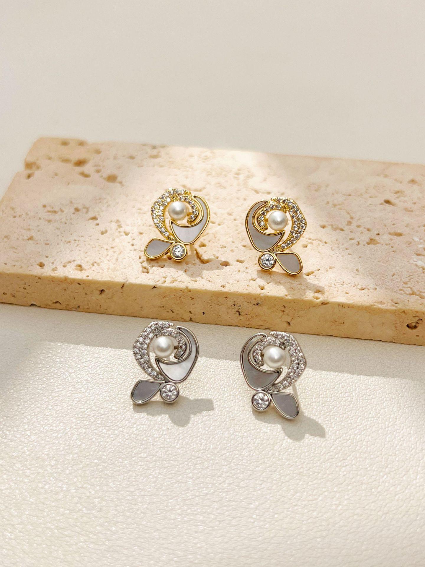 Novos Brincos de Flor Simples e Elegantes, Estilo Luxo Leve com Incrustações de Concha, Acessórios Versáteis para Mulheres