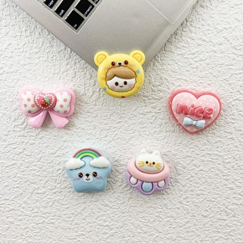 Compre Desenho animado brilhante estrela arco amor diy acessórios de resina do telefone móvel shell hairpin cocar geladeira adesivo pacote de material no atacado no Joom.pro