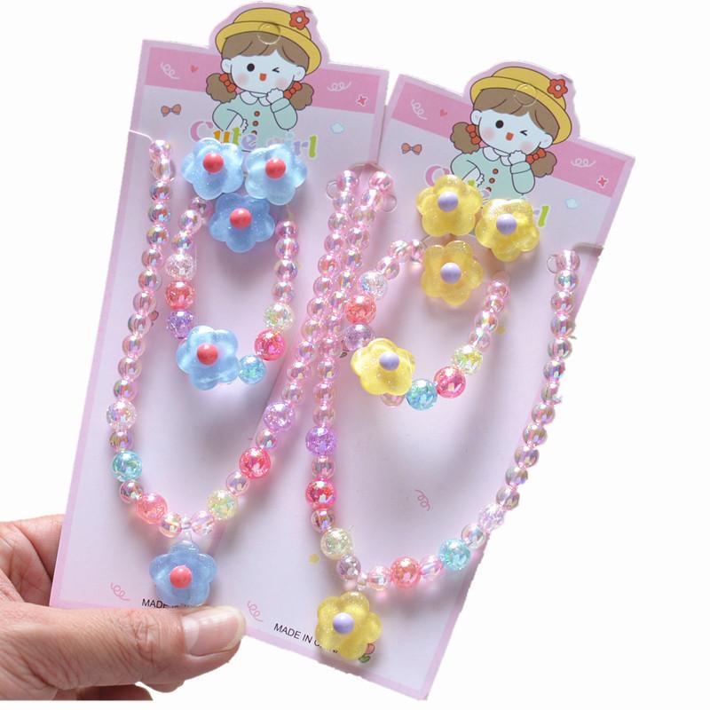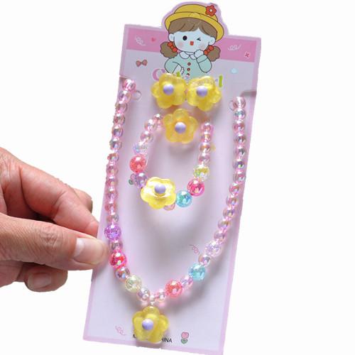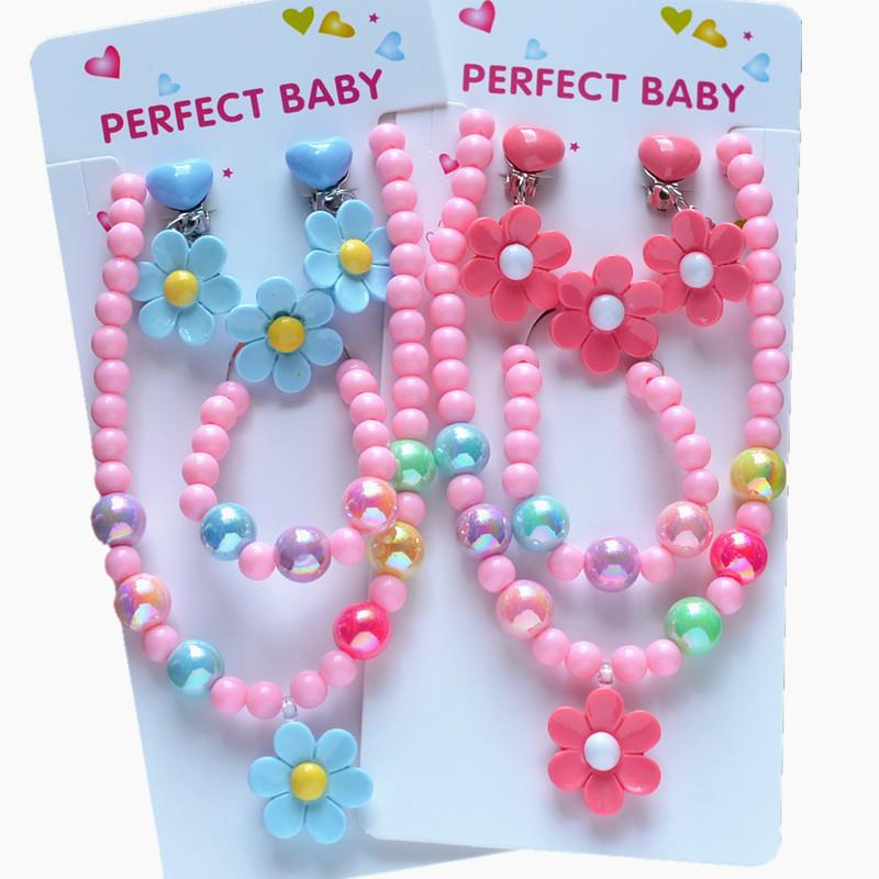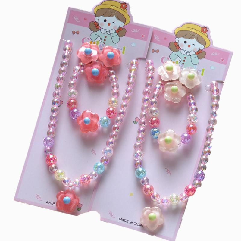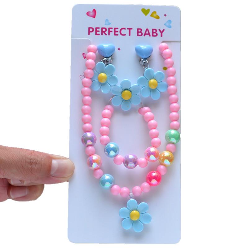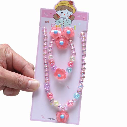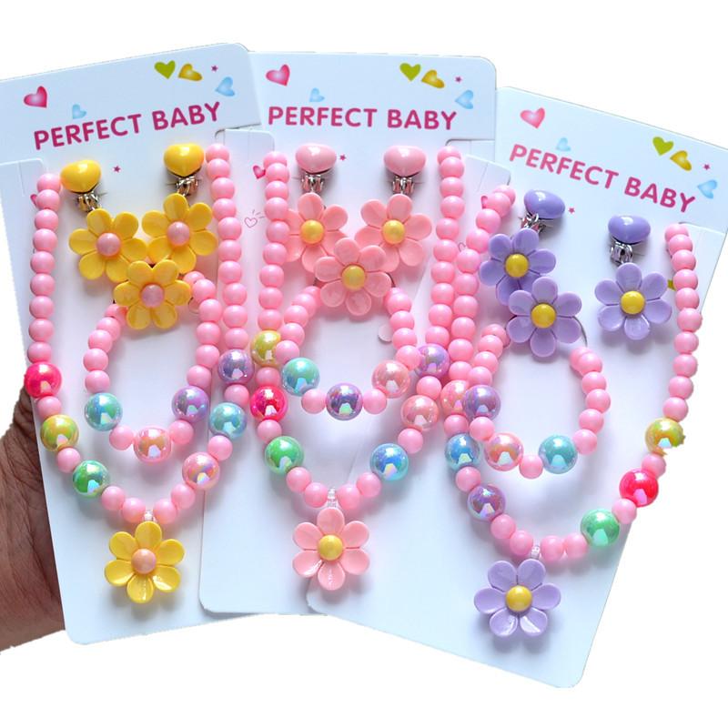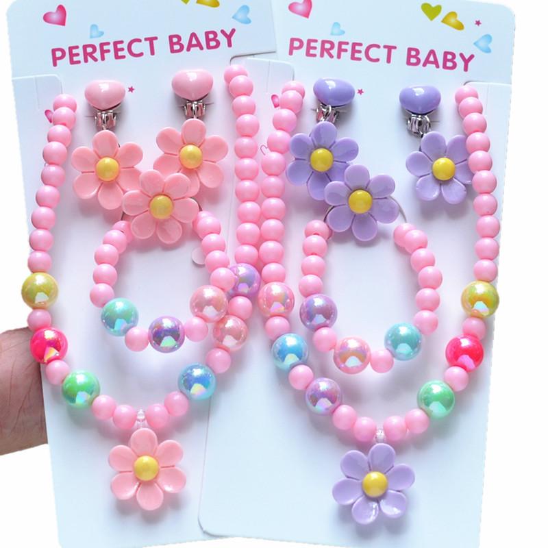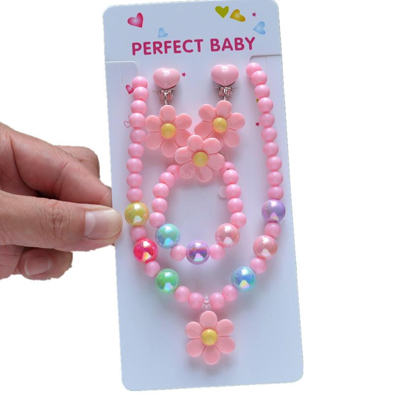 Colar infantil pulseira clipe de orelha terno pequena princesa rosa anel menina acessórios do bebê 2024 Novo