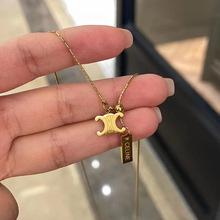 | Colar de aço titânio banhado a ouro com pingente de cordão padrão Arco do Triunfo leve e luxuoso, corrente de clavícula de alta qualidade para mulheres, moderno e resistente à cor |