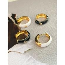 | Europeu e americano ins nicho francês feito à mão preto e branco esmalte fivelas de orelha zircão gotejamento esmalte estrela brincos redondos brincos |