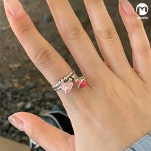 | Anel pequeno com pingente de Saturno Imperatriz Viúva Cixi para mulheres, lindo anel de dedo indicador de planeta em esmalte rosa, nicho, anel de empilhamento da moda |