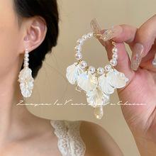 | Jardim Flutuante Super Fada Francês Retro Pérola Pétala Brincos Borla Luz Luxo High-end Pequeno Design Brincos |