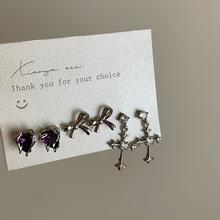 | Brincos, brincos, zircão amor arco cruz brincos de metal conjunto de seis peças doce estilo legal zircão personalidade |