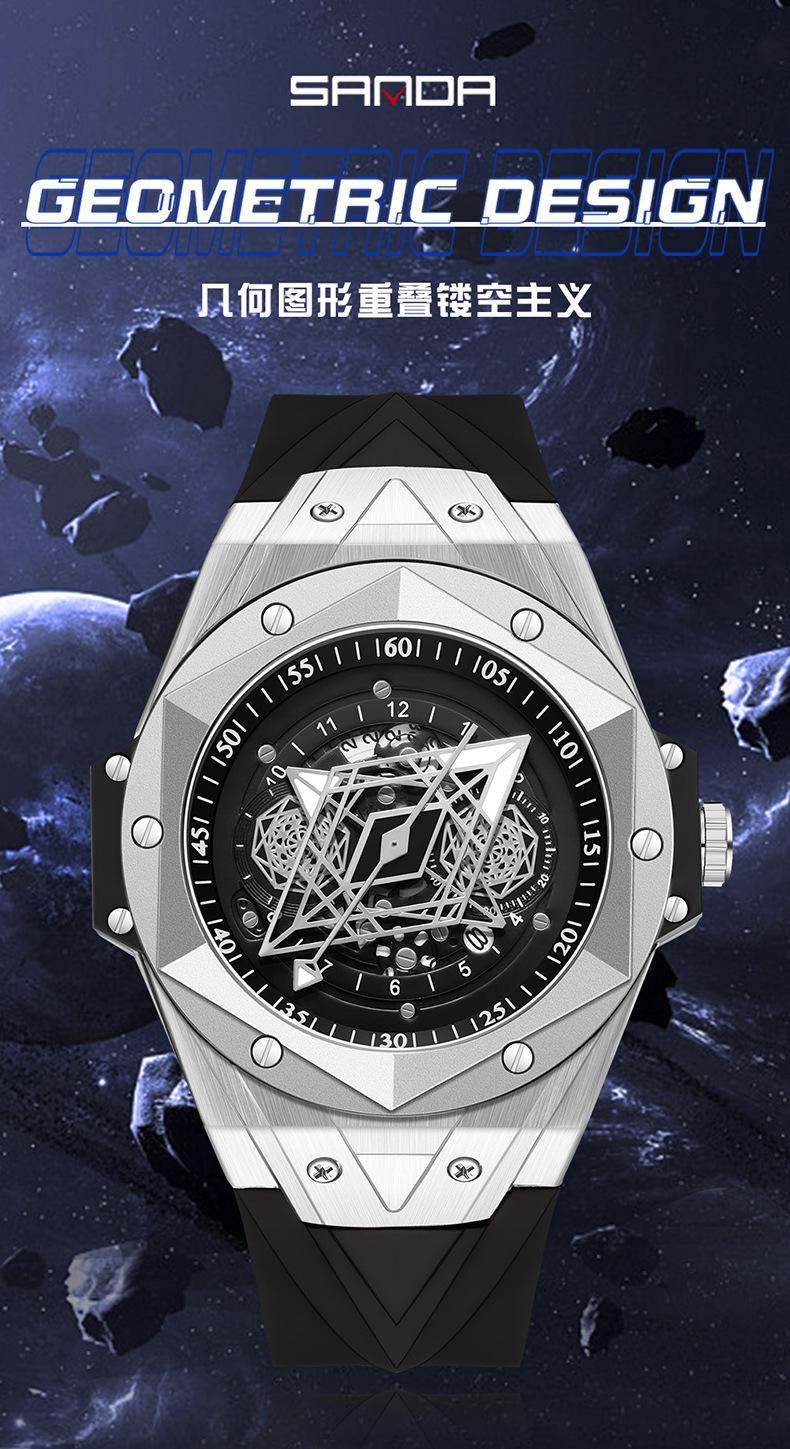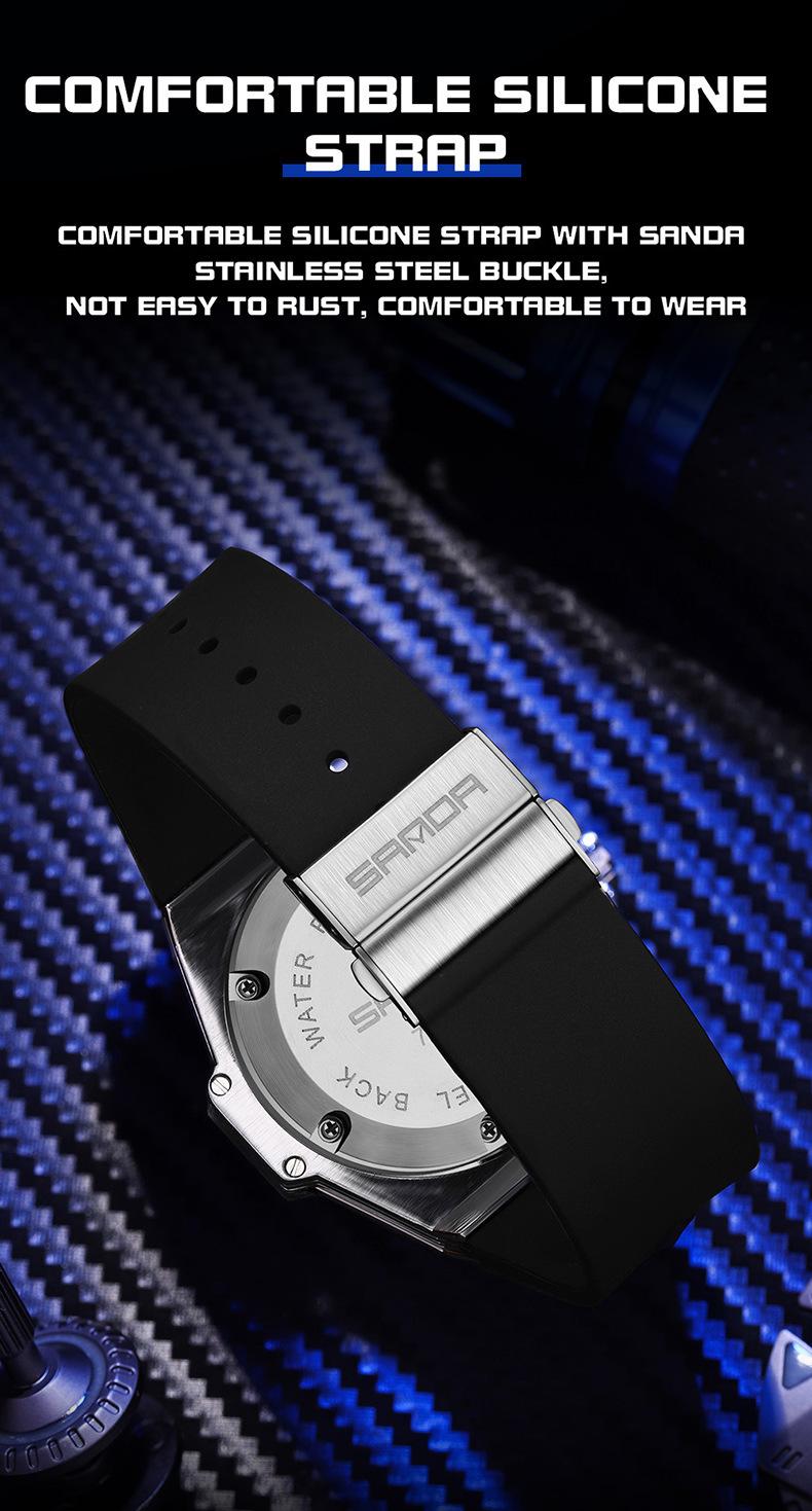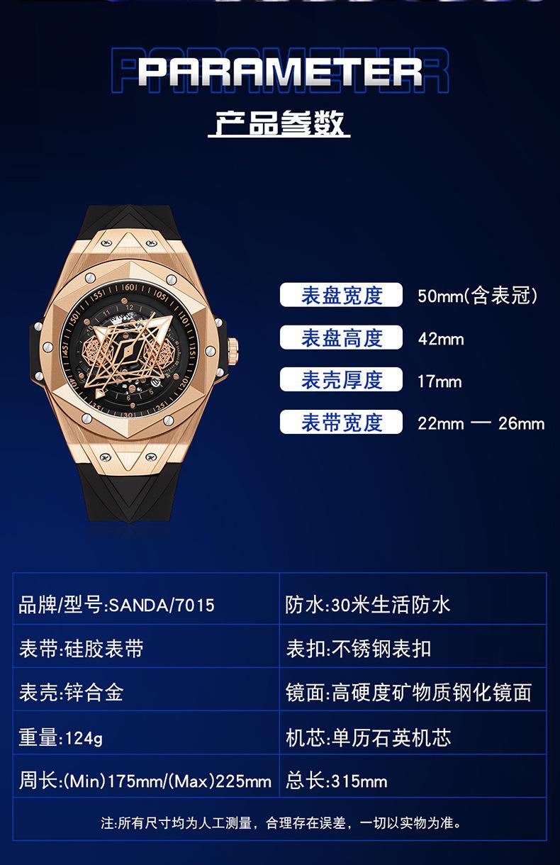 Sanda Novo 7015 Quartzo Oco Relógio Masculino Tendência da Moda Legal Criativo Relógio Masculino Calendário Relógio de Silicone