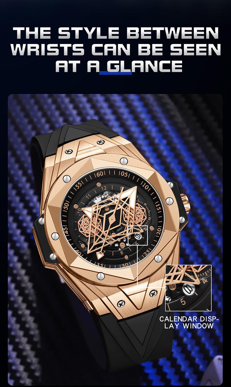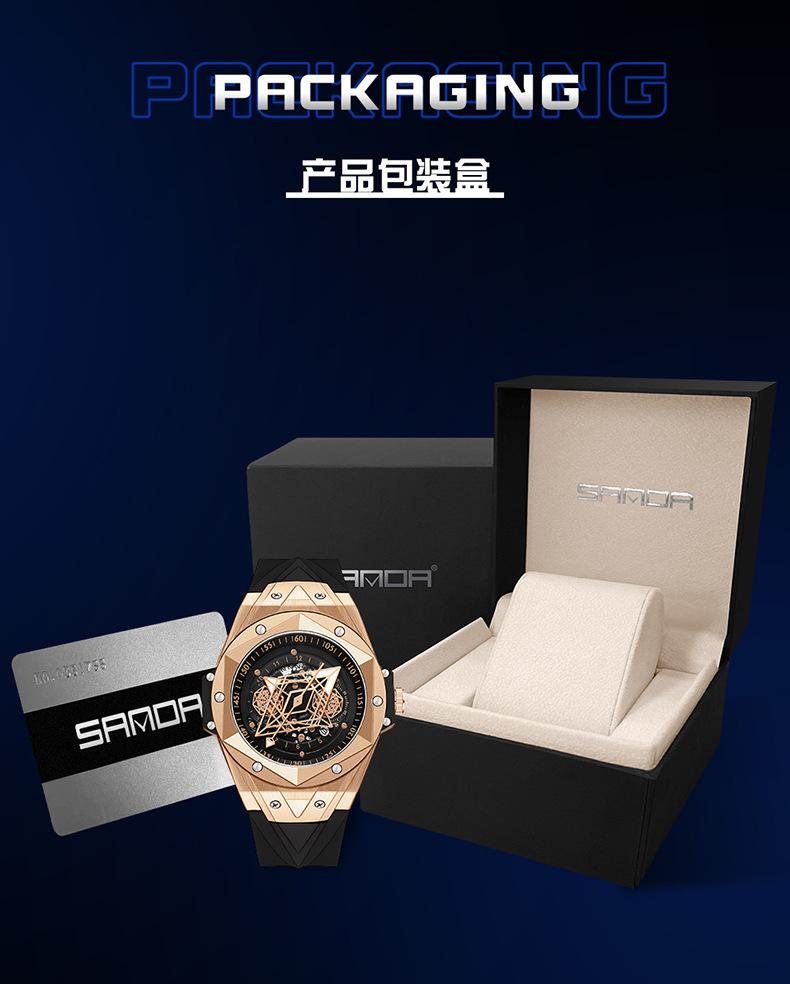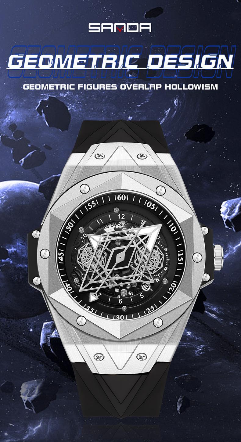 Sanda Novo 7015 Quartzo Oco Relógio Masculino Tendência da Moda Legal Criativo Relógio Masculino Calendário Relógio de Silicone