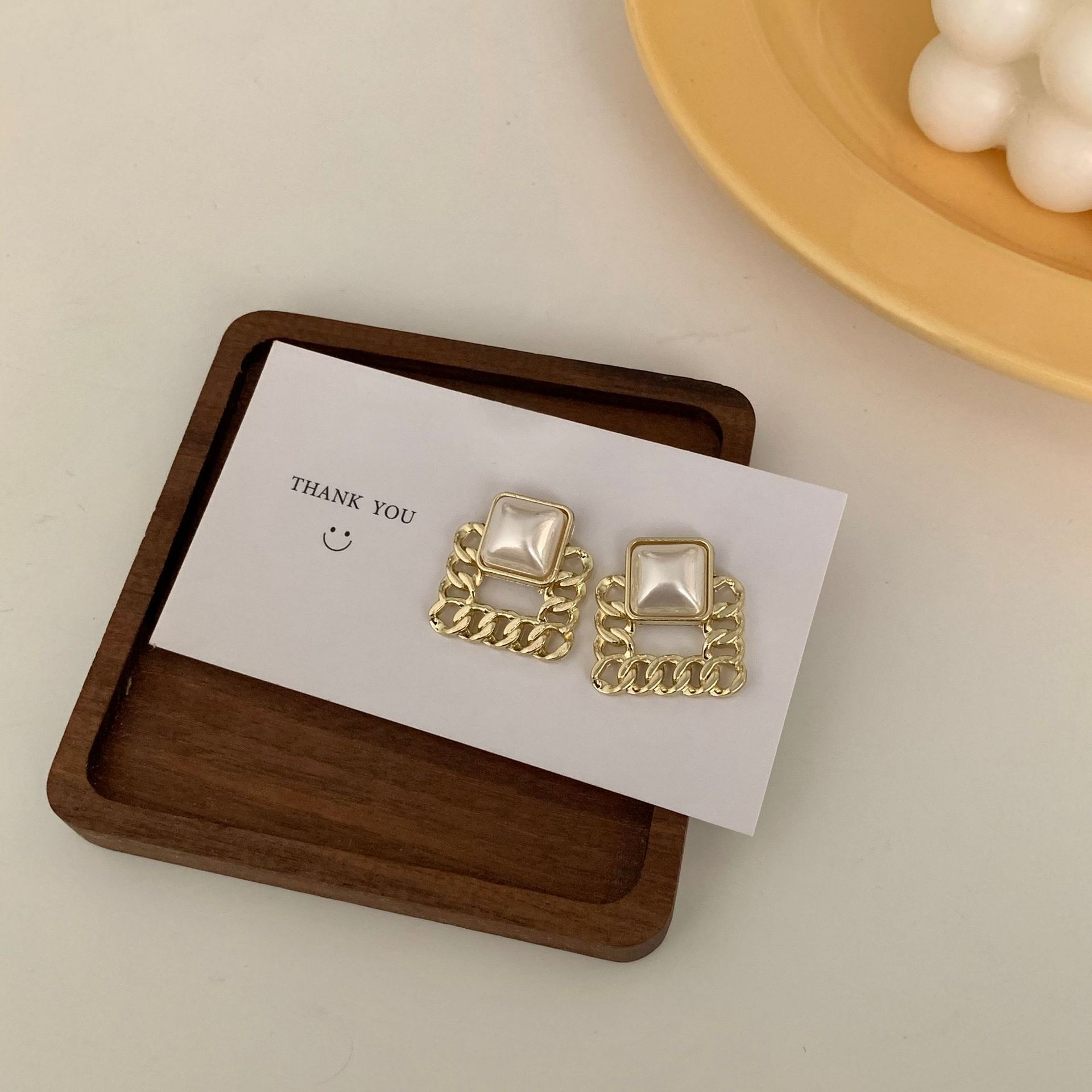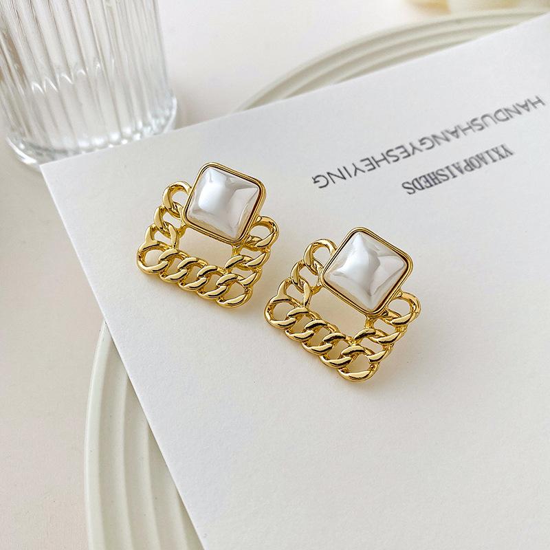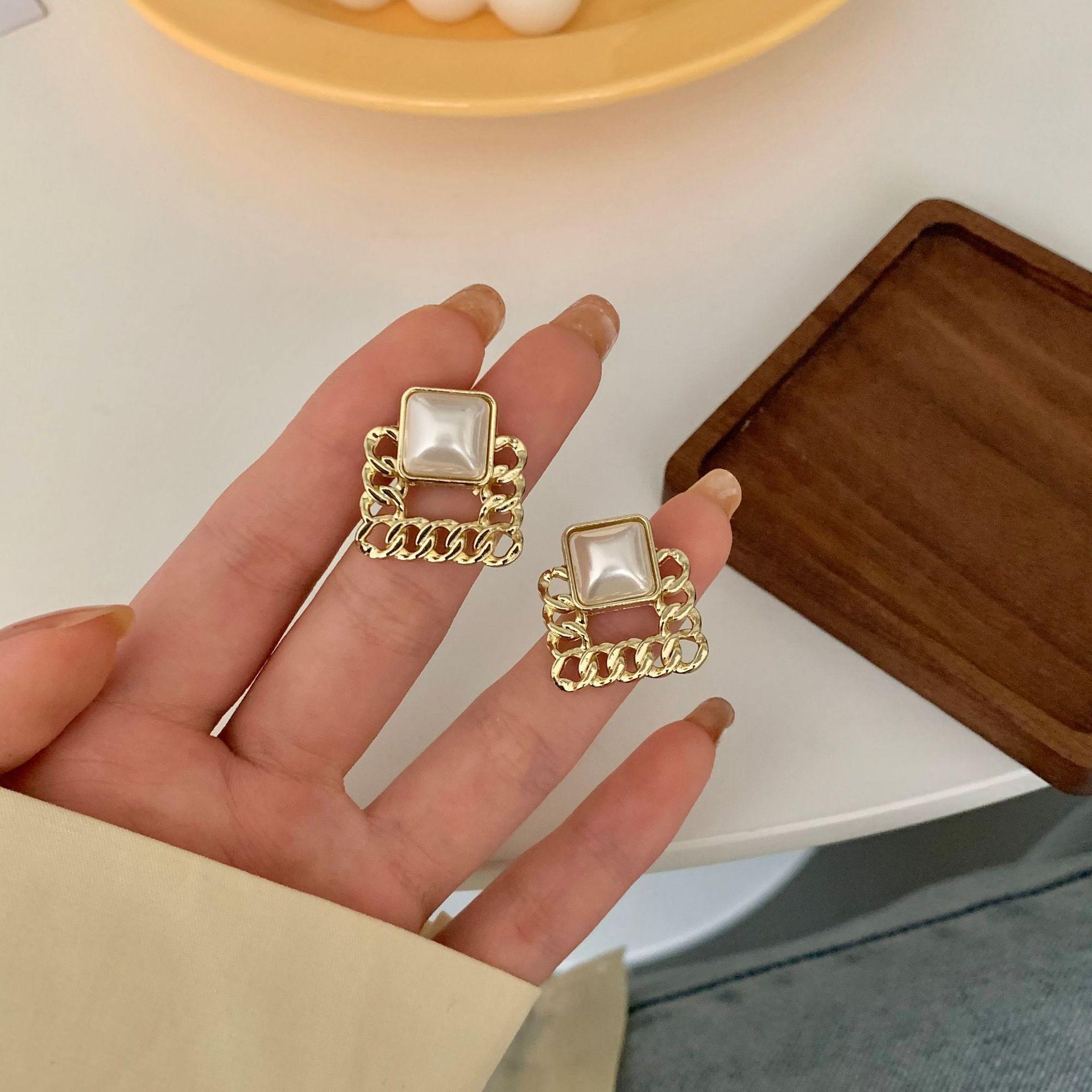 Brincos de pérola em forma de corrente Brincos de pérola de design oco avançado Brincos simples atmosféricos para todos os jogos