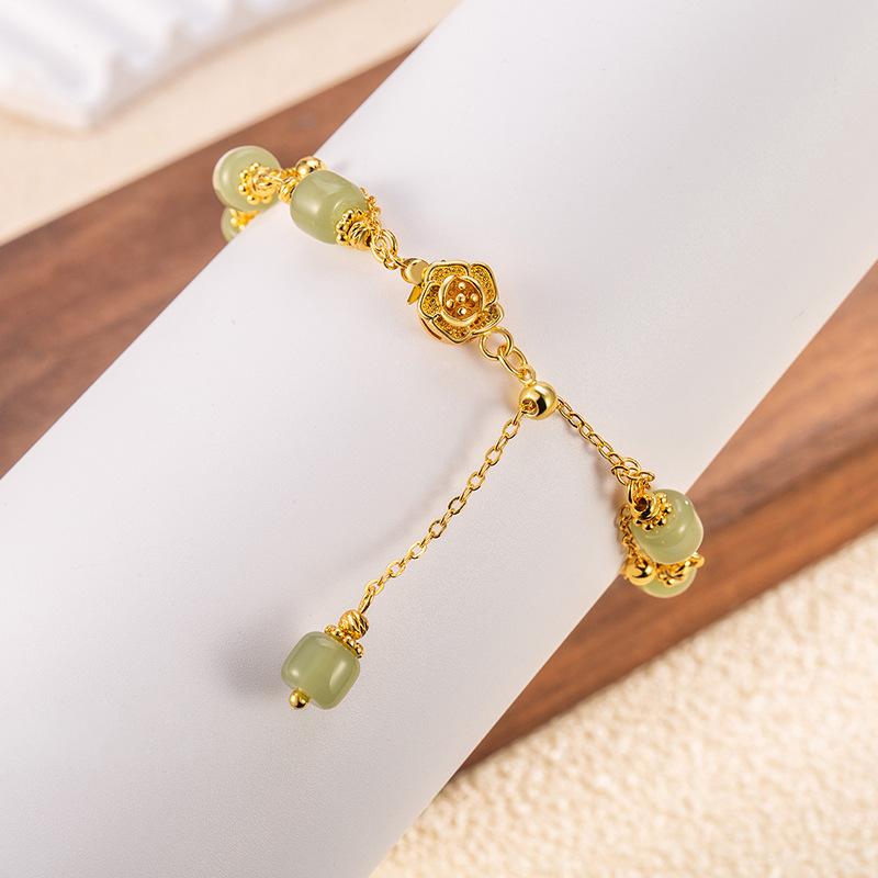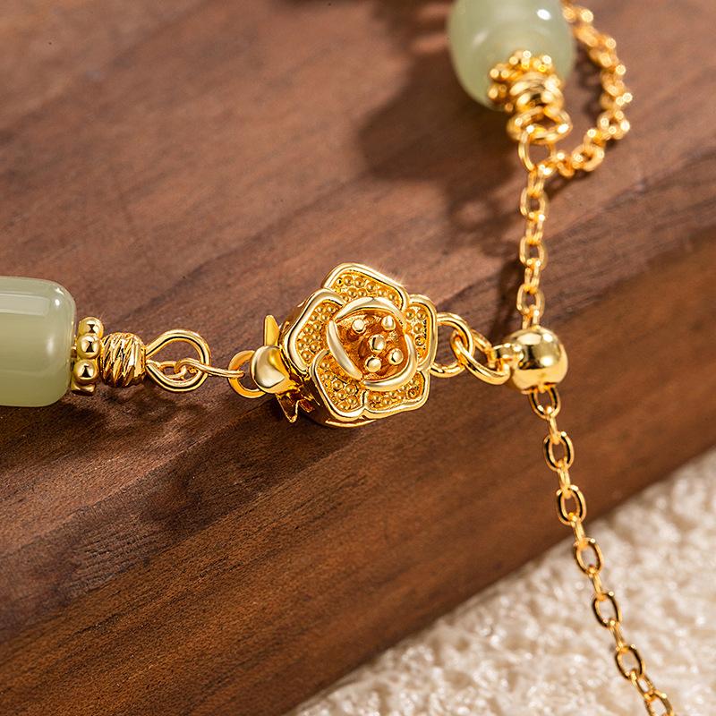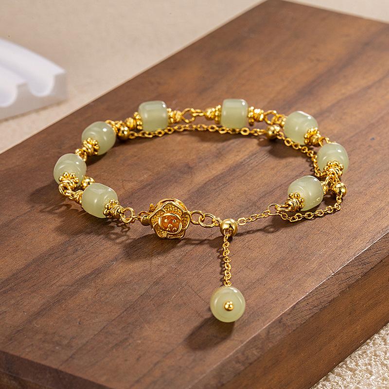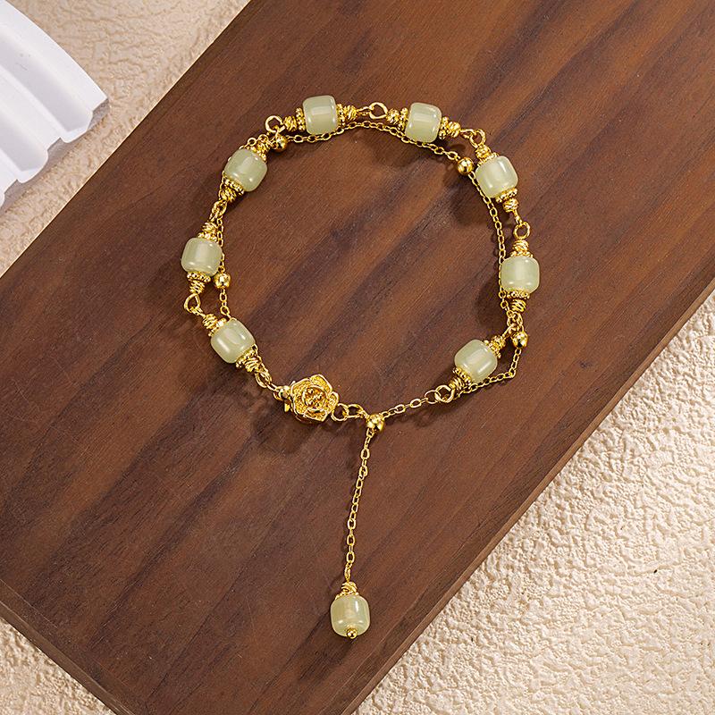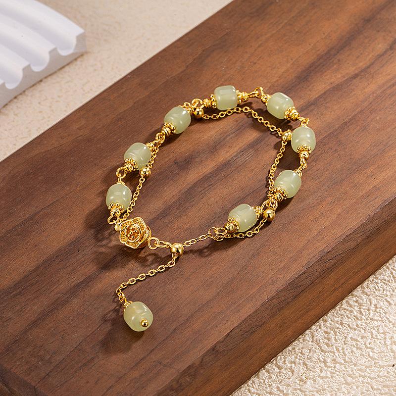 Dupla Camada Imitação Hetian Jade Rose Pulseira Menina High Sense Niche Design Estilo Nacional Requintado Jóias Presente Namorada