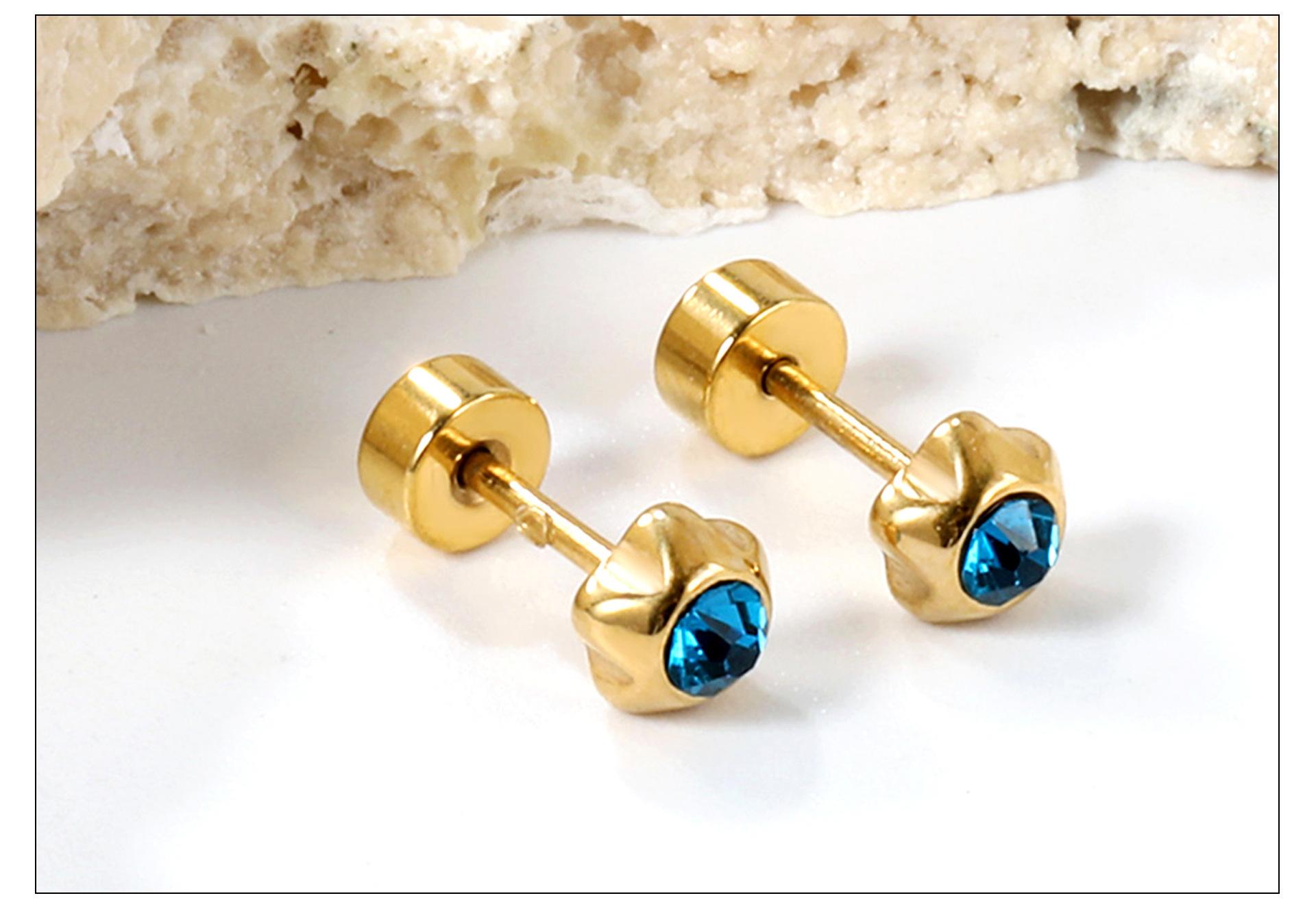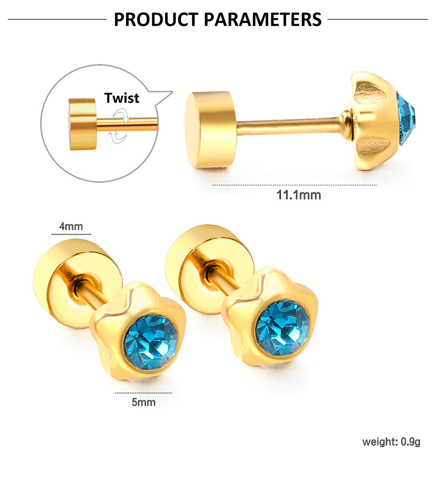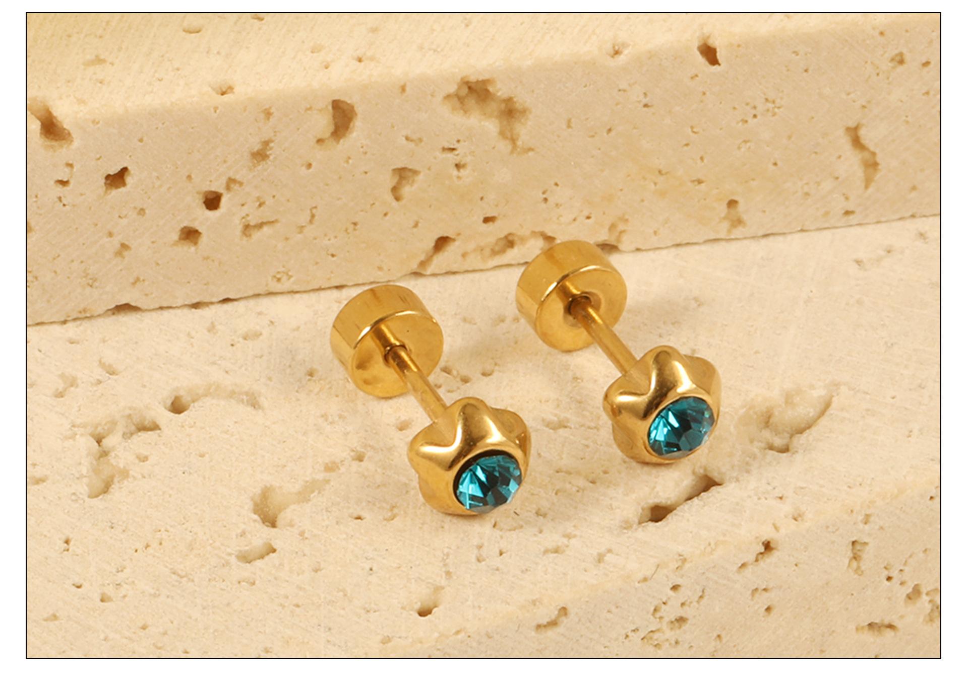 Brincos Espirais Transfronteiriços, Pequenos, Frescos e Delicados, Brincos de Estrela de Cinco Pontas, Brincos de Strass, Brincos de Aço Inoxidável Dourado para Mulheres