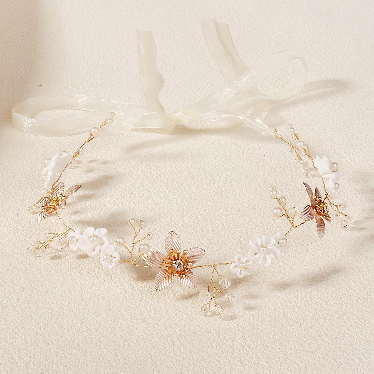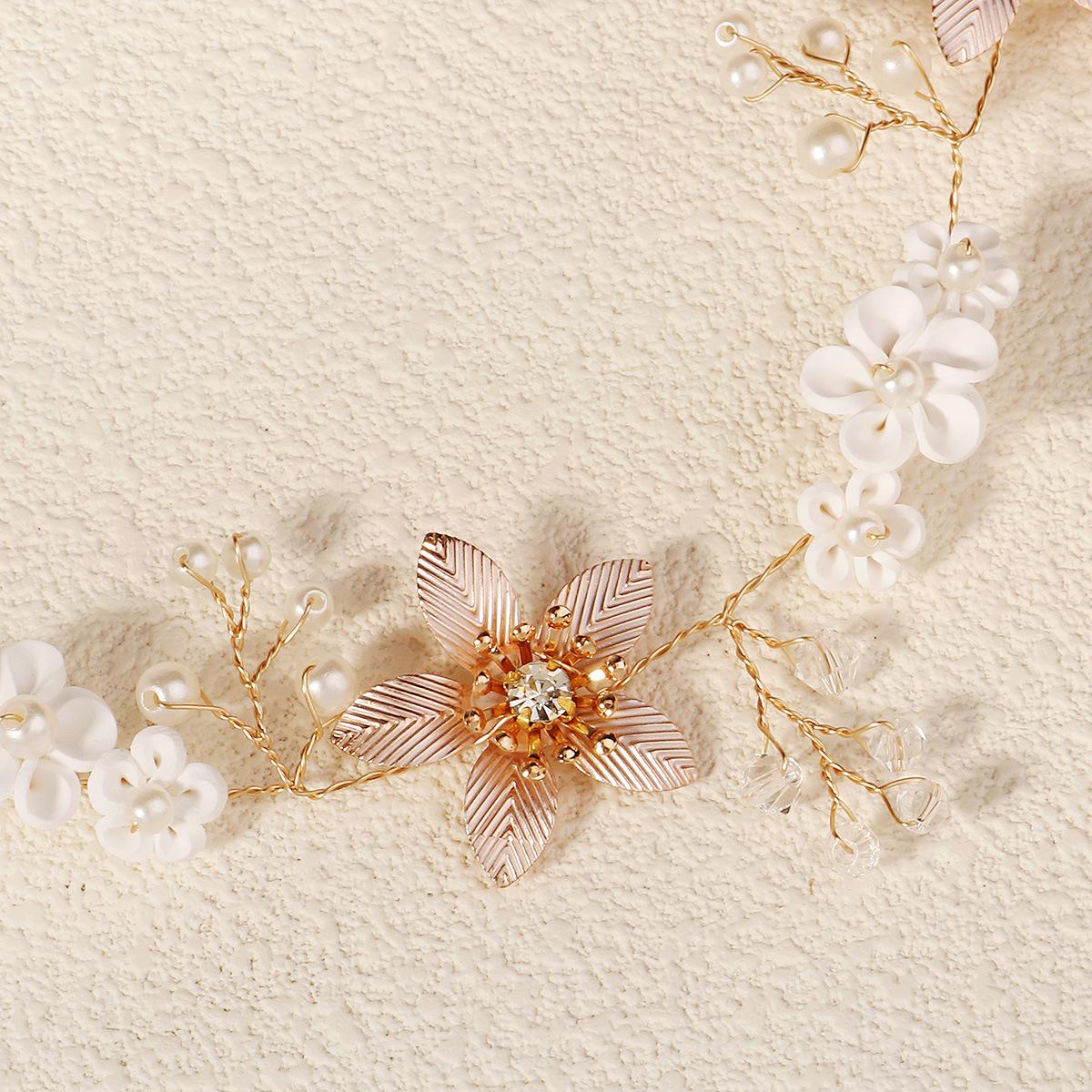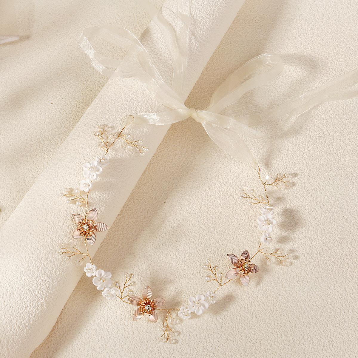 Soft Pottery Flower Crystal Handmade Beaded Copper Wire Pearl Strap Soft Chain Hair Band