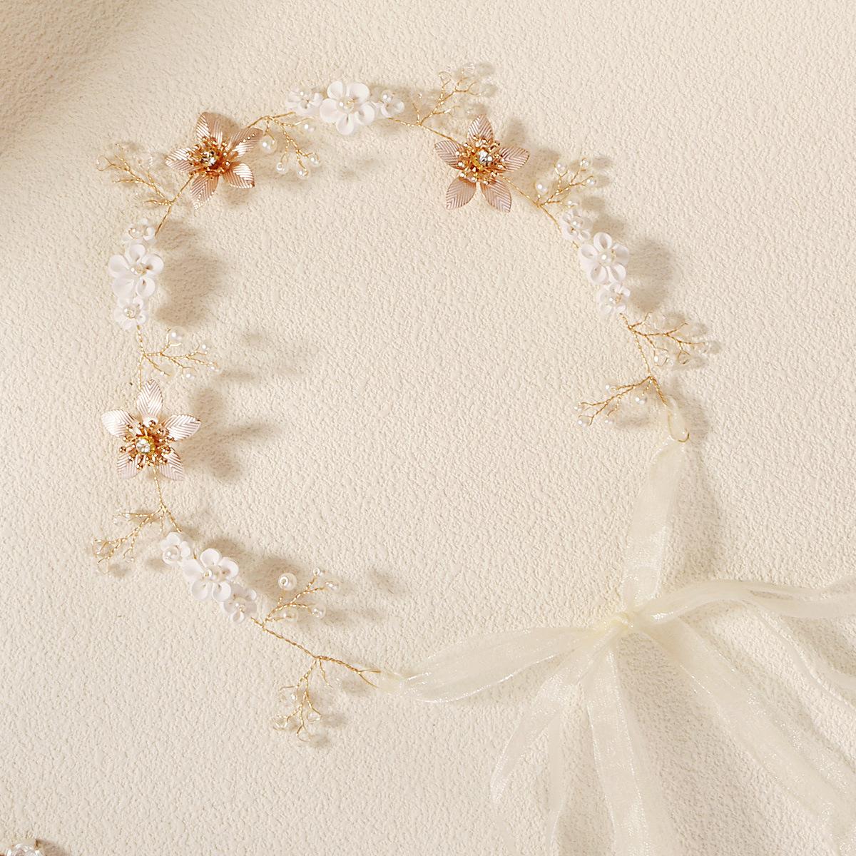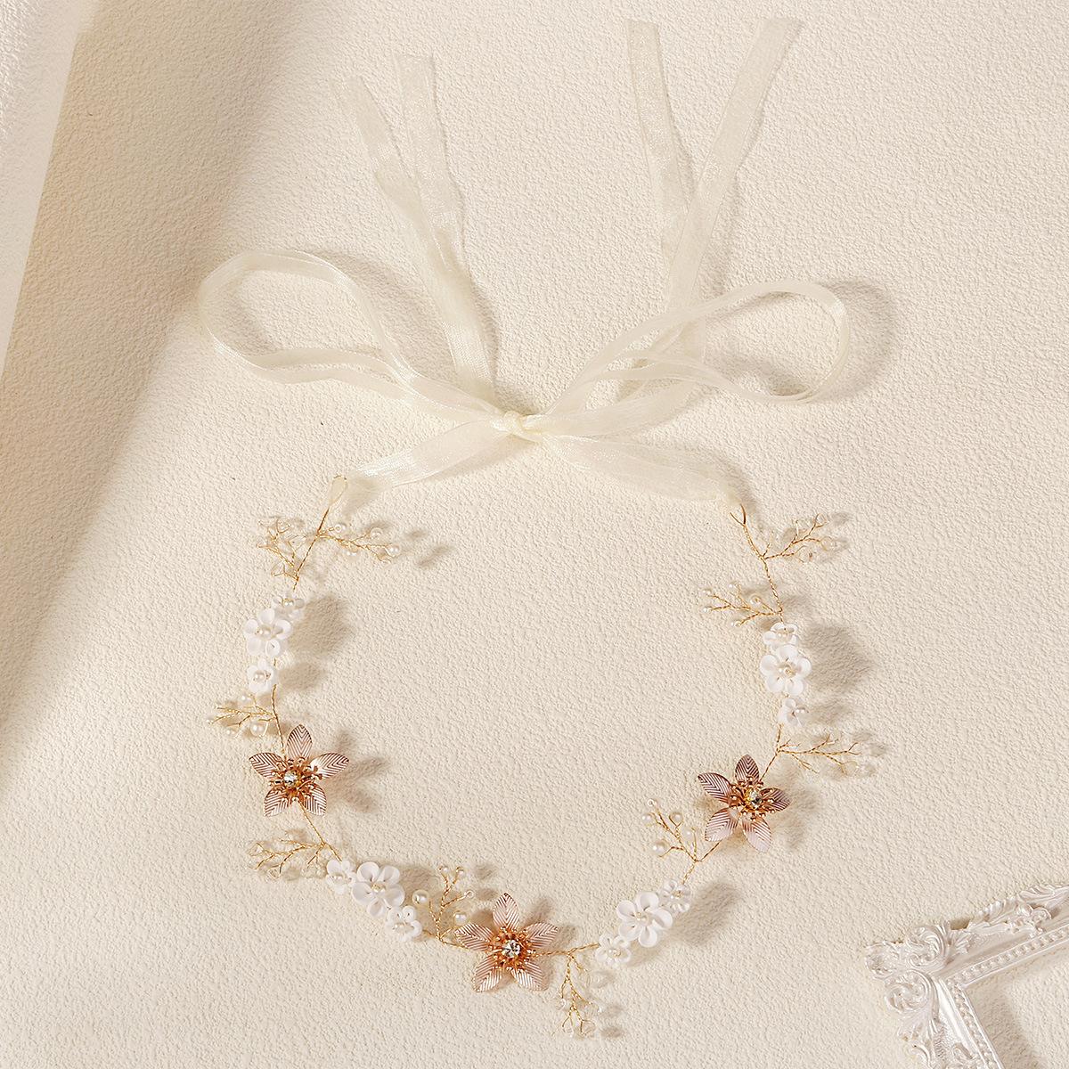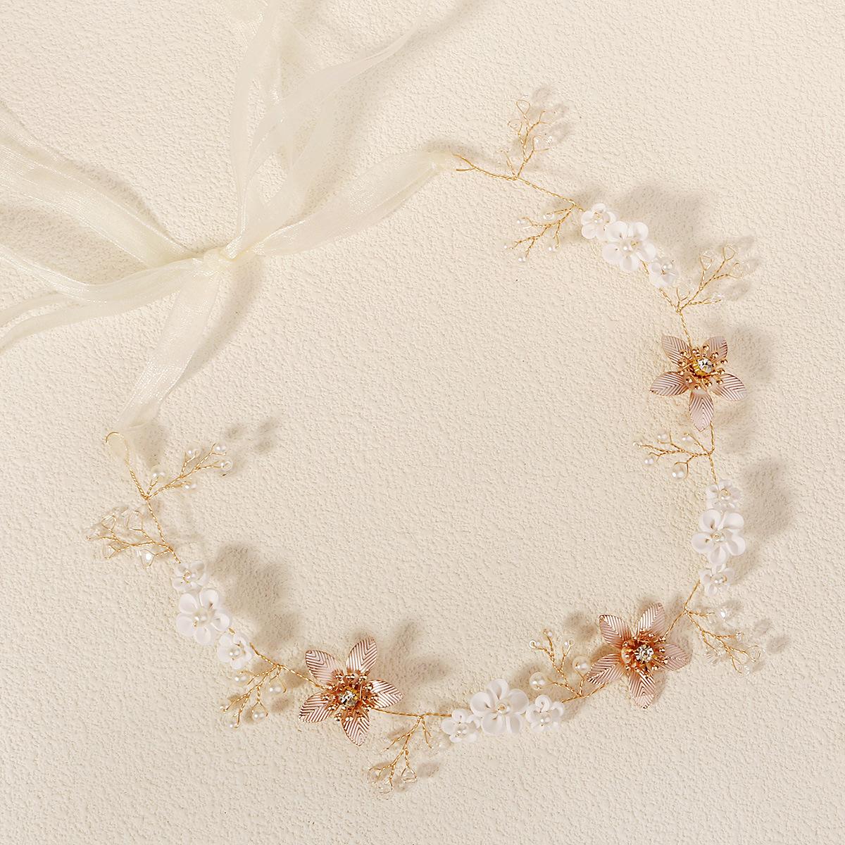 Soft Pottery Flower Crystal Handmade Beaded Copper Wire Pearl Strap Soft Chain Hair Band