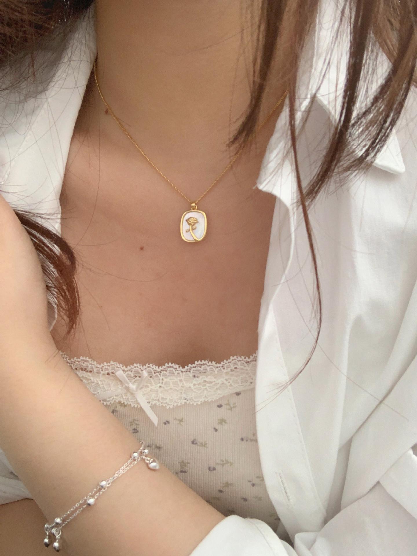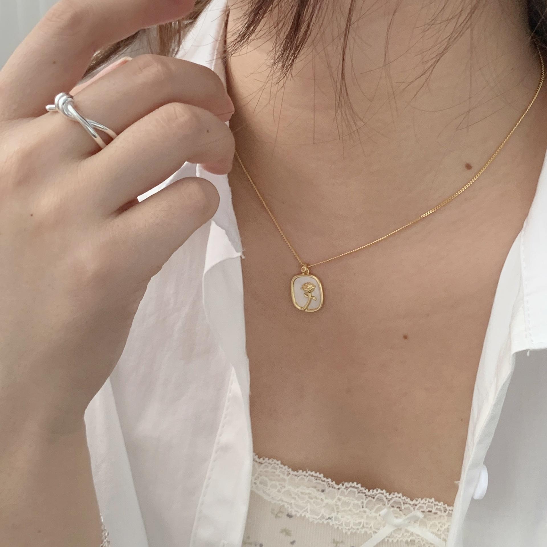 Compre Saina Niche Elegante S925 Sterling Silver Oval Rose Embossed Pingente Clavícula Cadeia Shell Colar Mulheres no atacado no Joom.pro
