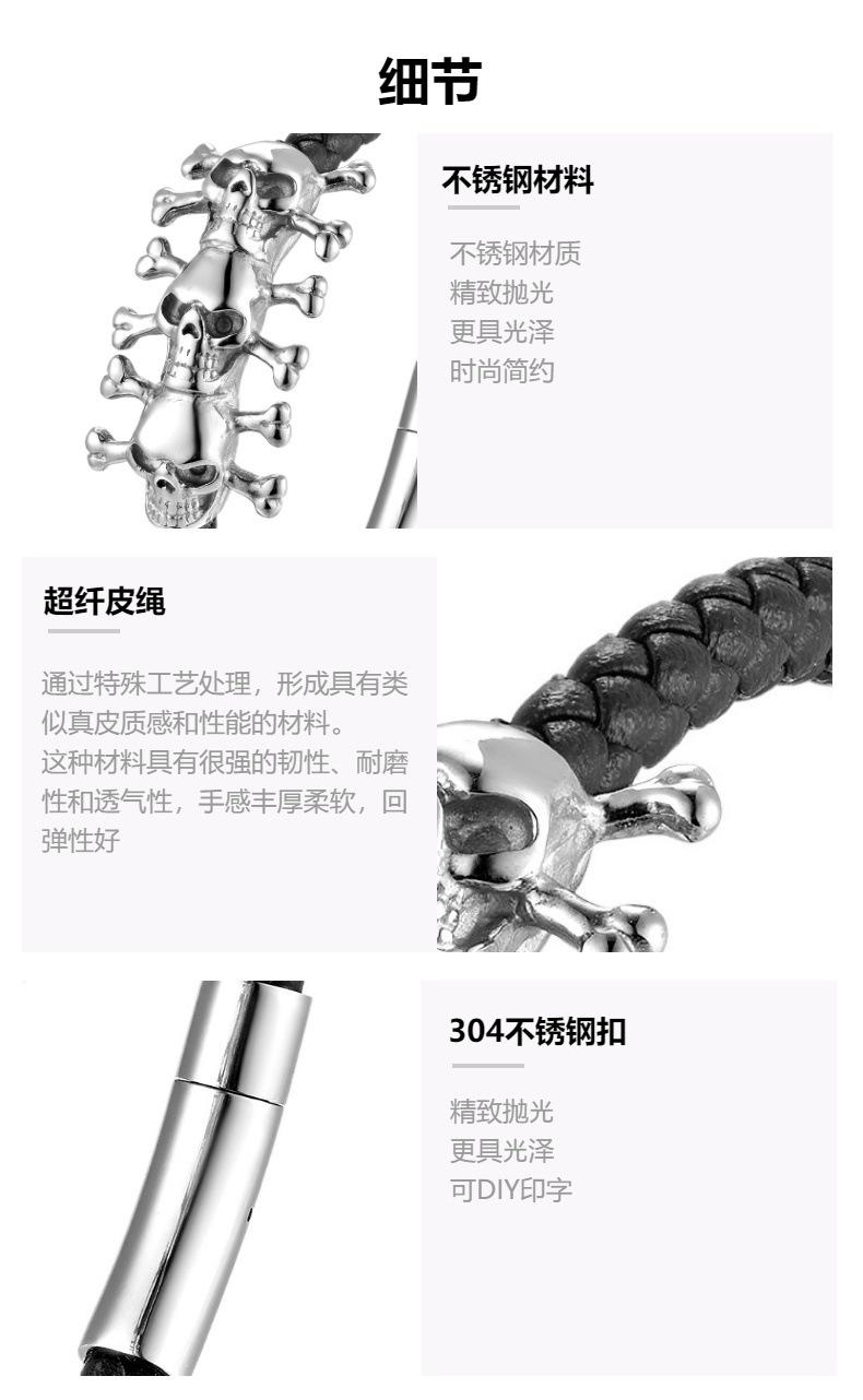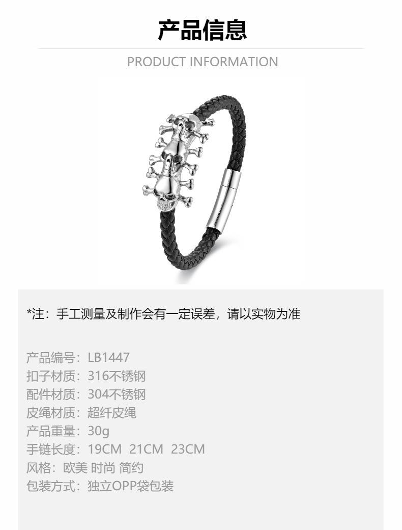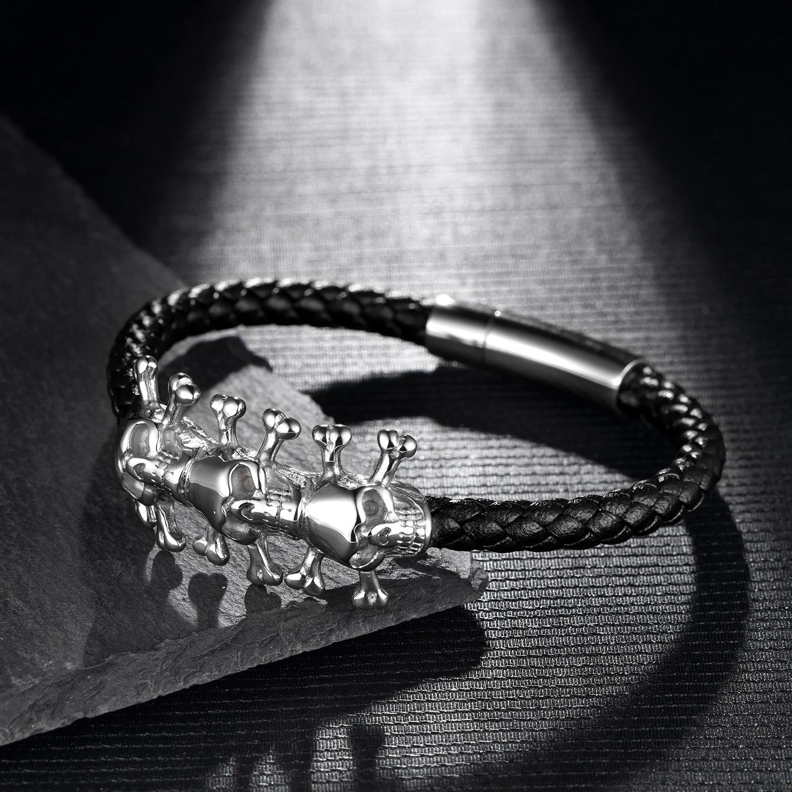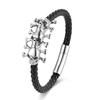 Pulseira de caveira criativa de personalidade europeia e americana, nova pulseira de couro trançado masculina, joias de casal de aço inoxidável transfronteiriças