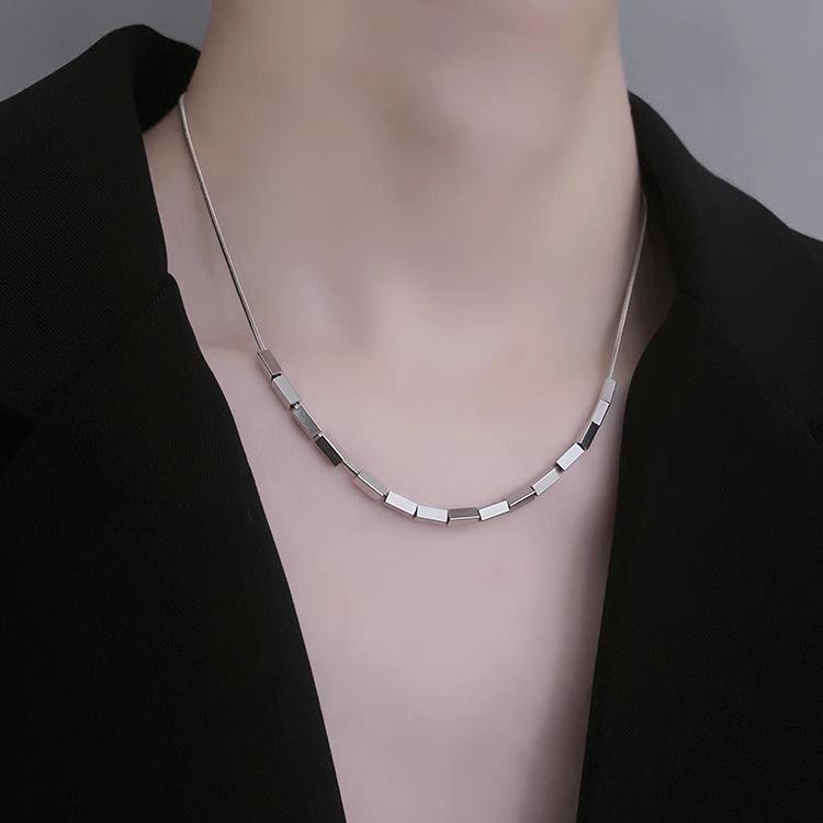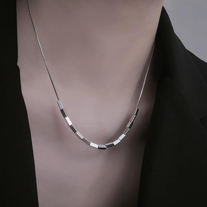 Nova Moda Longo Quadrado Pingente Colar Moda Masculina Titânio Aço Estilo Frio Clavícula Cadeia Hip Hop Acessórios Verão Nicho Jóias