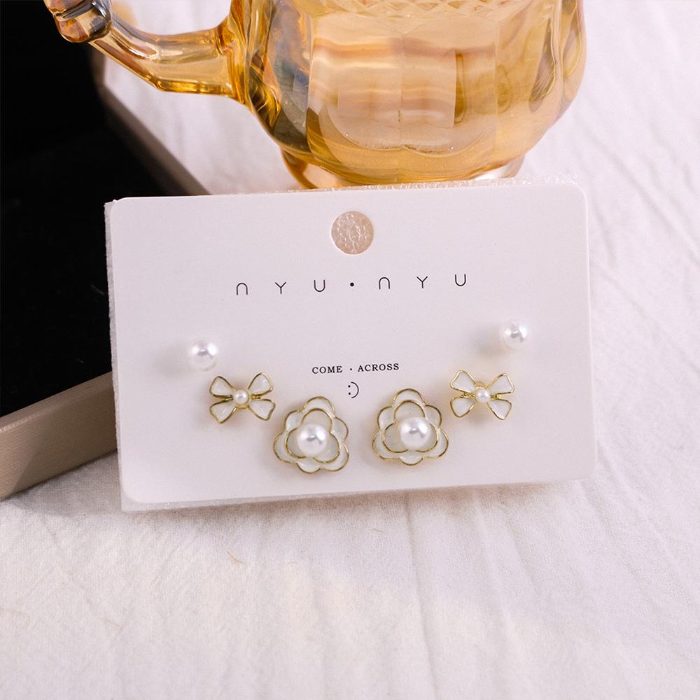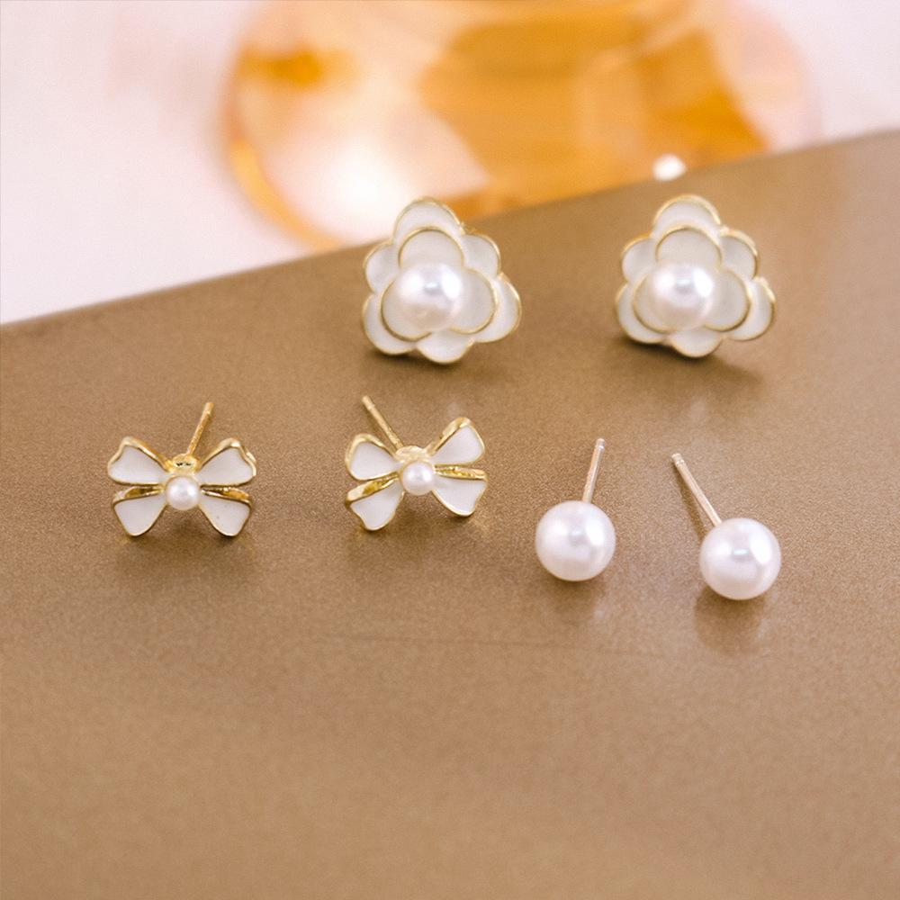 Brincos Requintados de Prata Agulha com Laço Gotejando Óleo e Pérola Novo Conjunto de Brincos de Flor de Nicho Brincos da Moda de Alta Qualidade