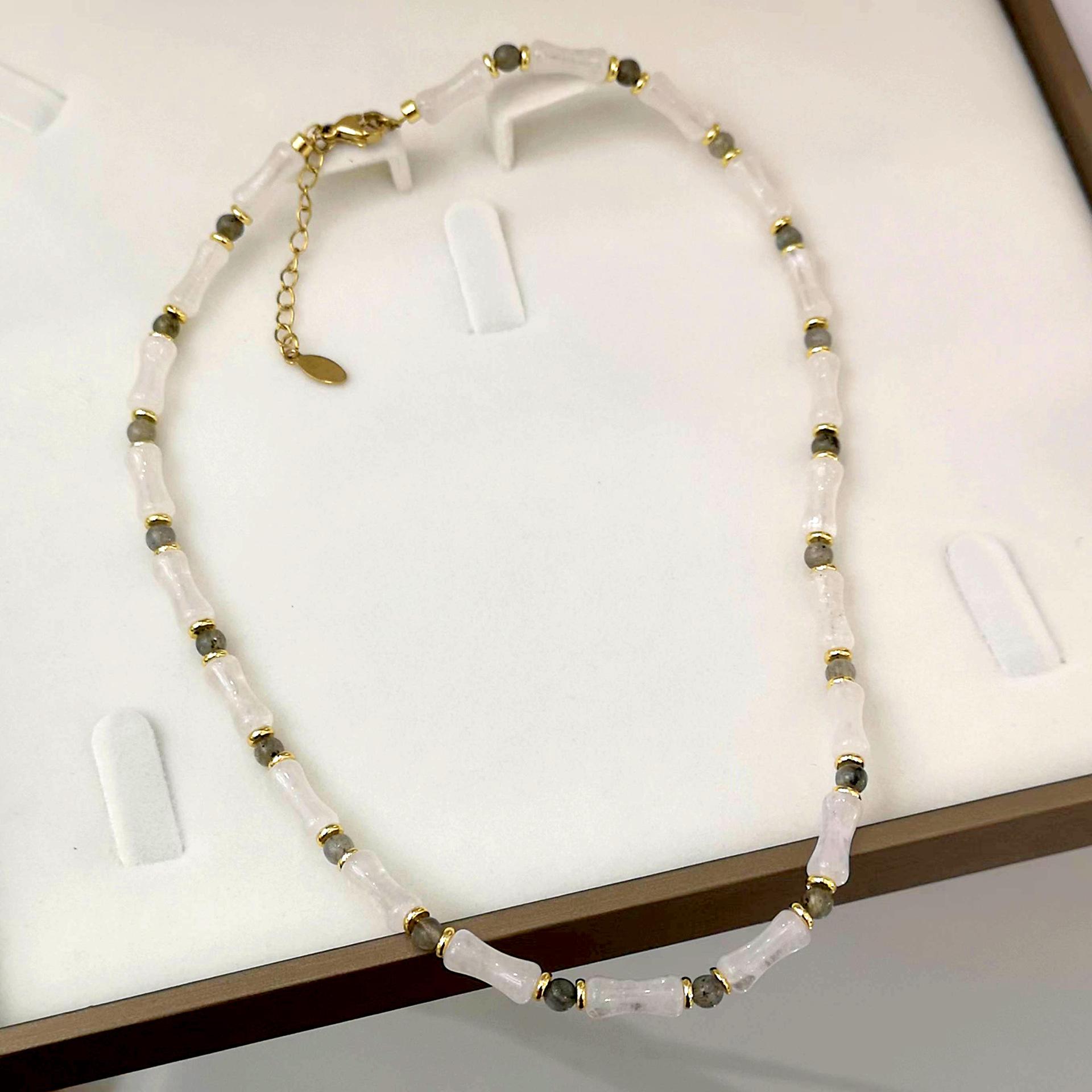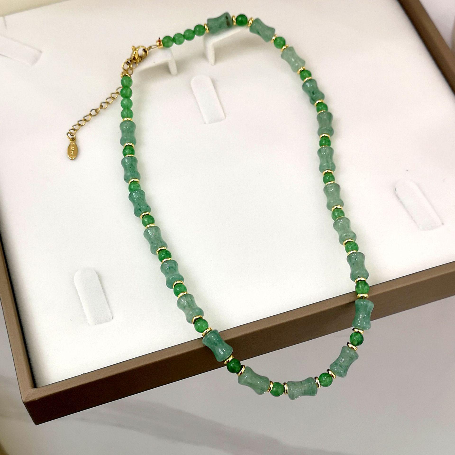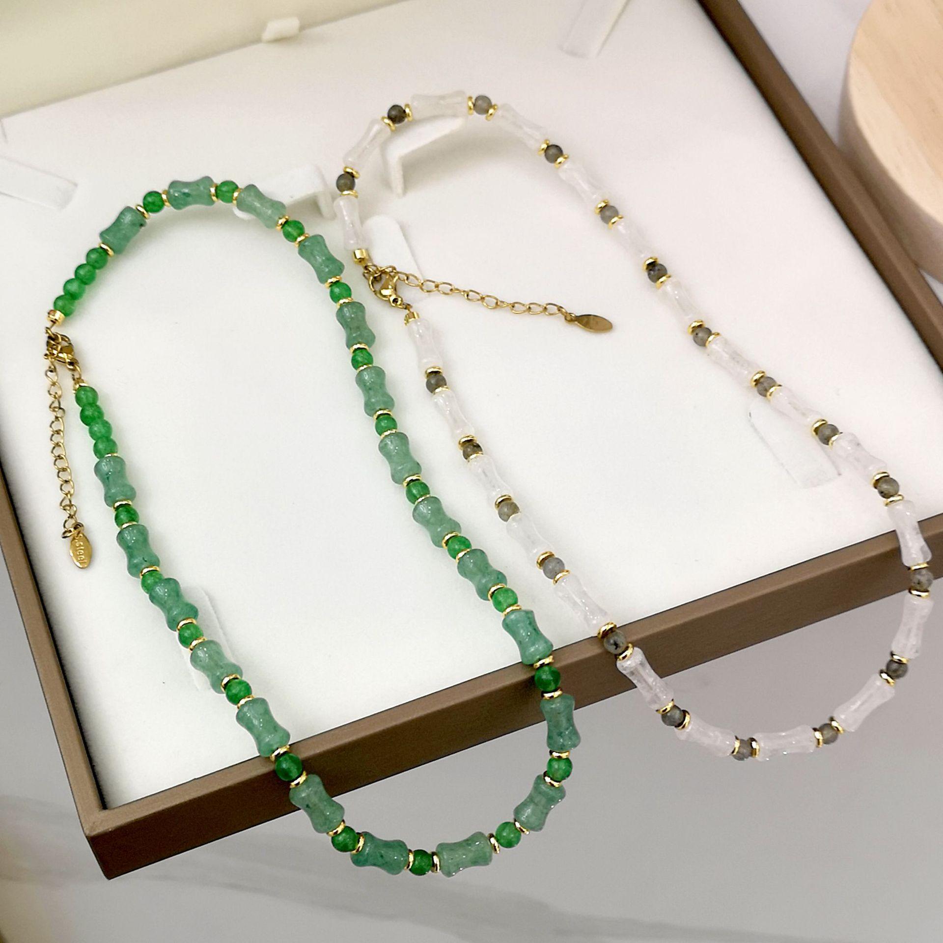Cross-border Hot Sale New Chinese Colar Pulseira terno Estilo Chinês Bambu Pedra Natural Temperamento Design Jóias Artesanais