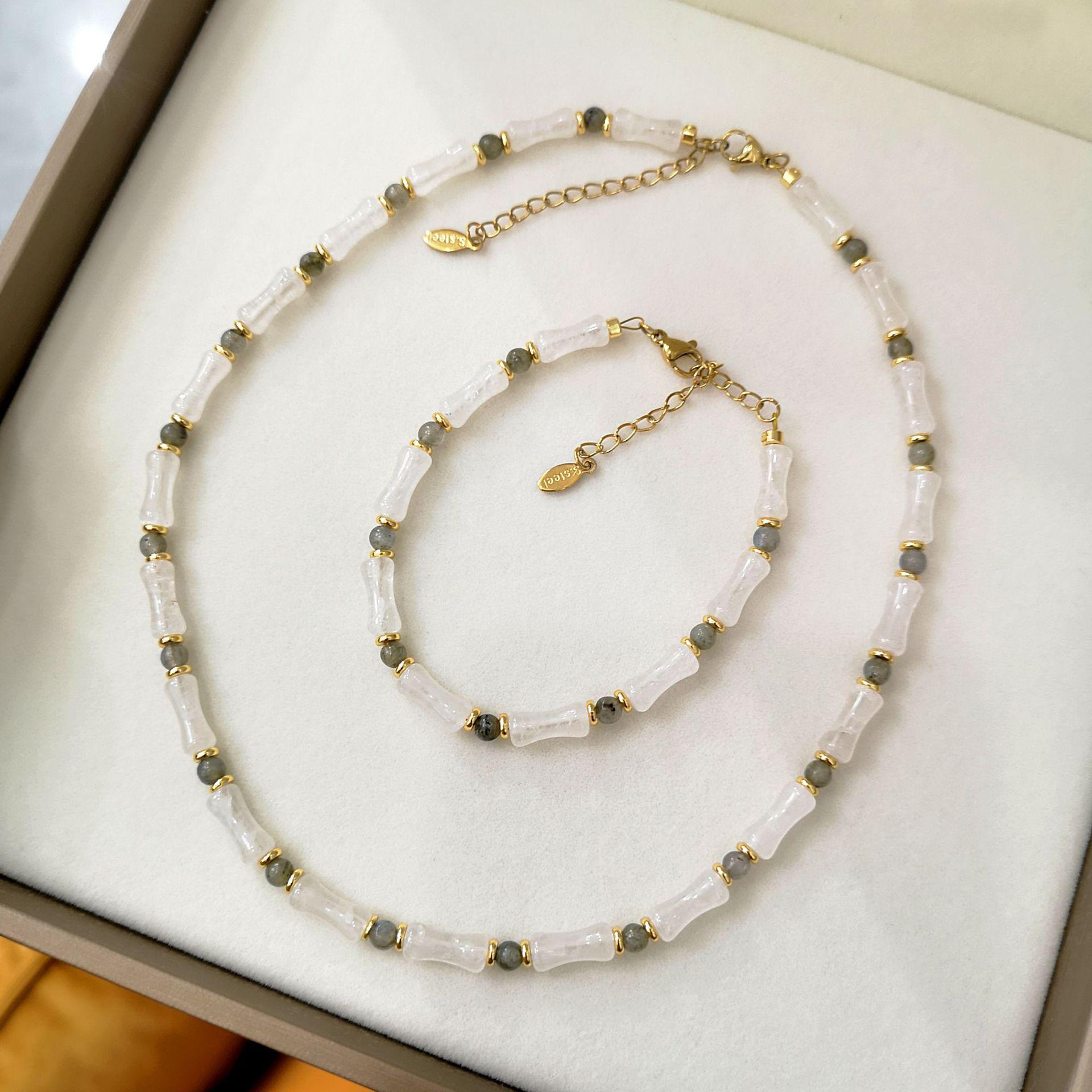 Compre Cross-border Hot Sale New Chinese Colar Pulseira terno Estilo Chinês Bambu Pedra Natural Temperamento Design Jóias Artesanais no atacado no Joom.pro