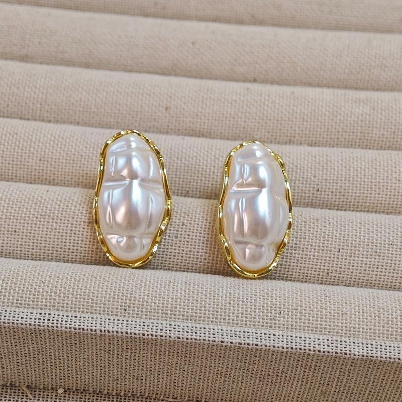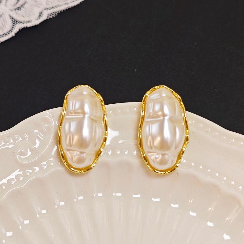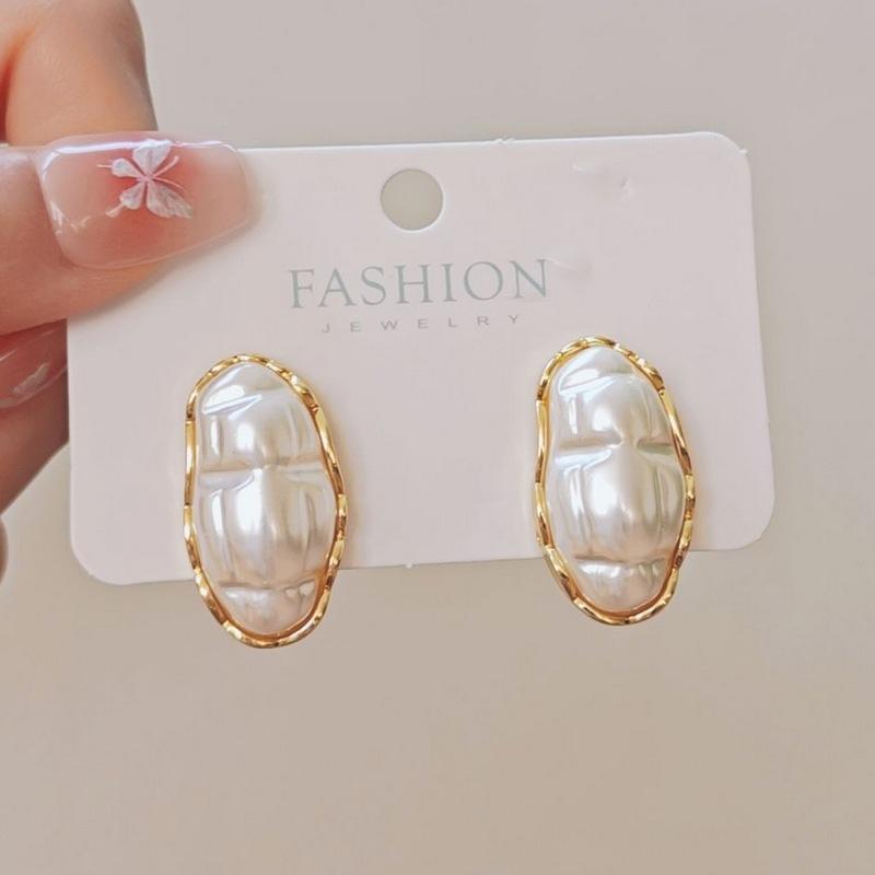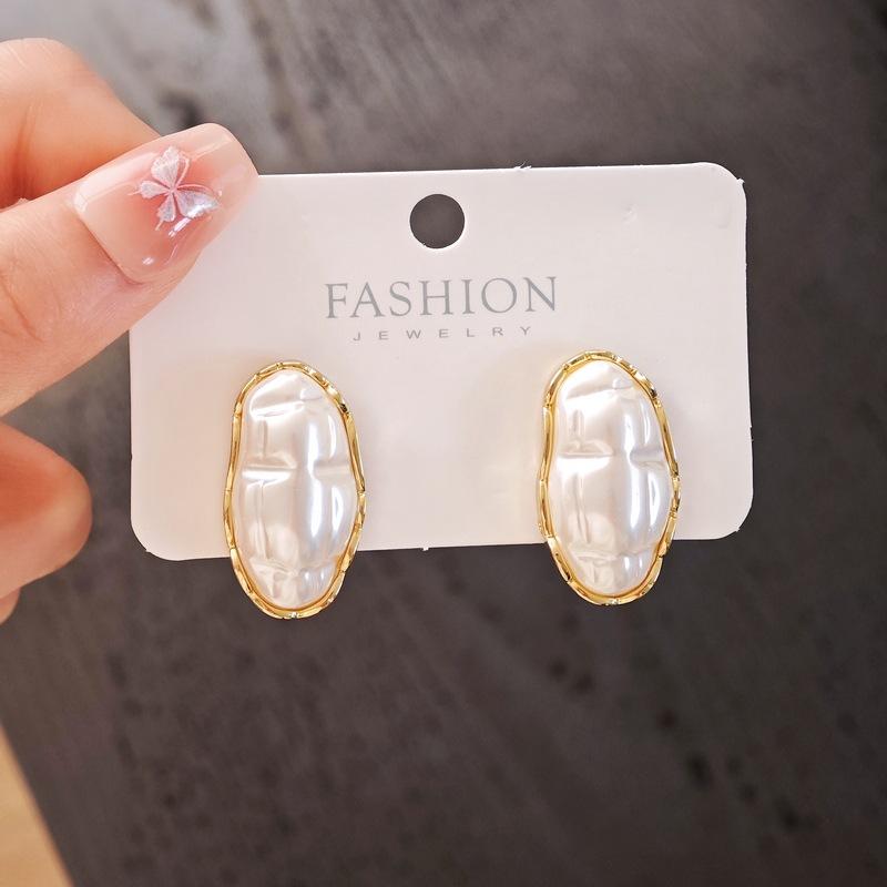 Coreia do Sul brincos de pérolas ovais temperamento retrô brincos geométricos nicho personalidade novos brincos exagerados para mulheres