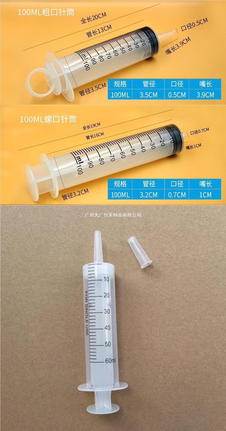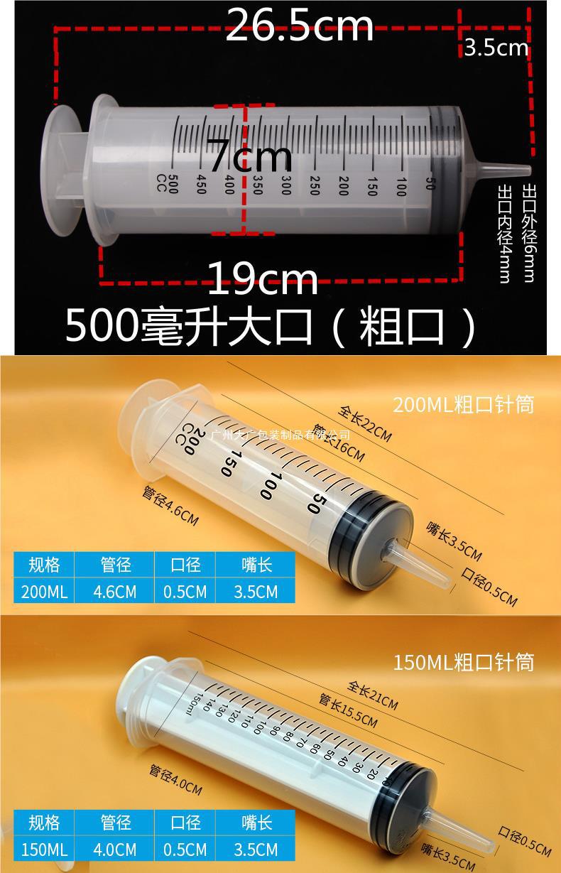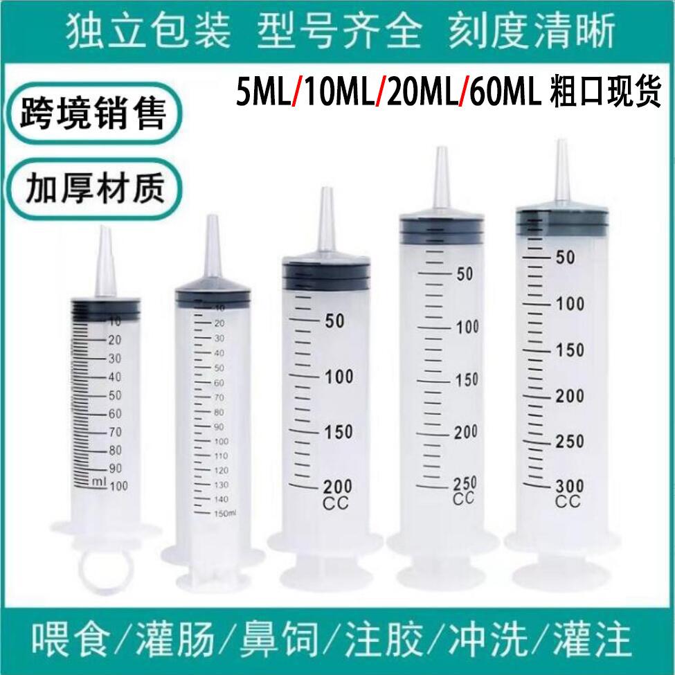 Seringa veterinária de grande capacidade de 500ml transfronteiriça, boca grossa, alimentador descartável para animais de estimação de 100ml