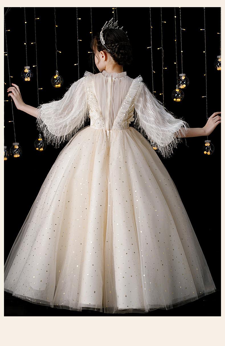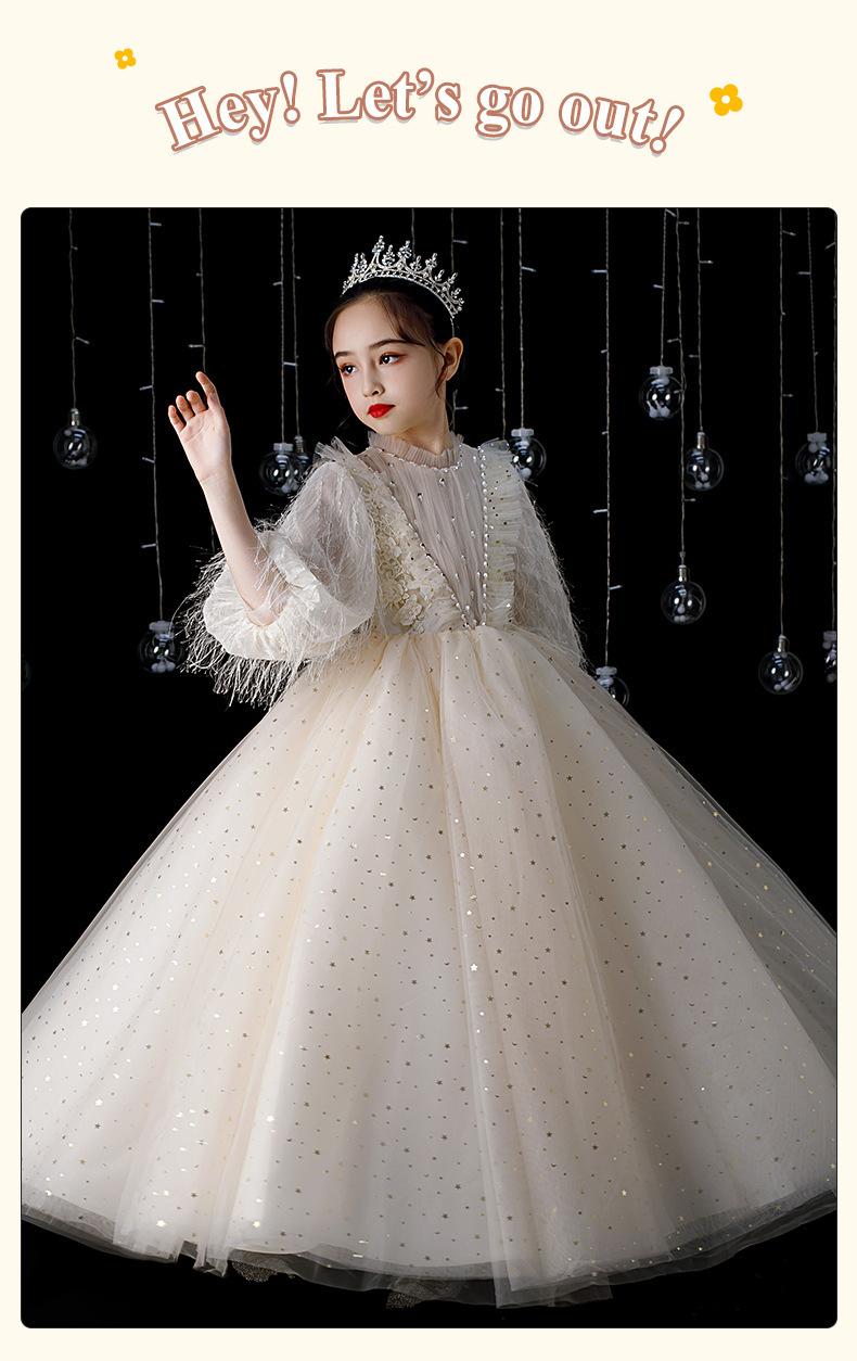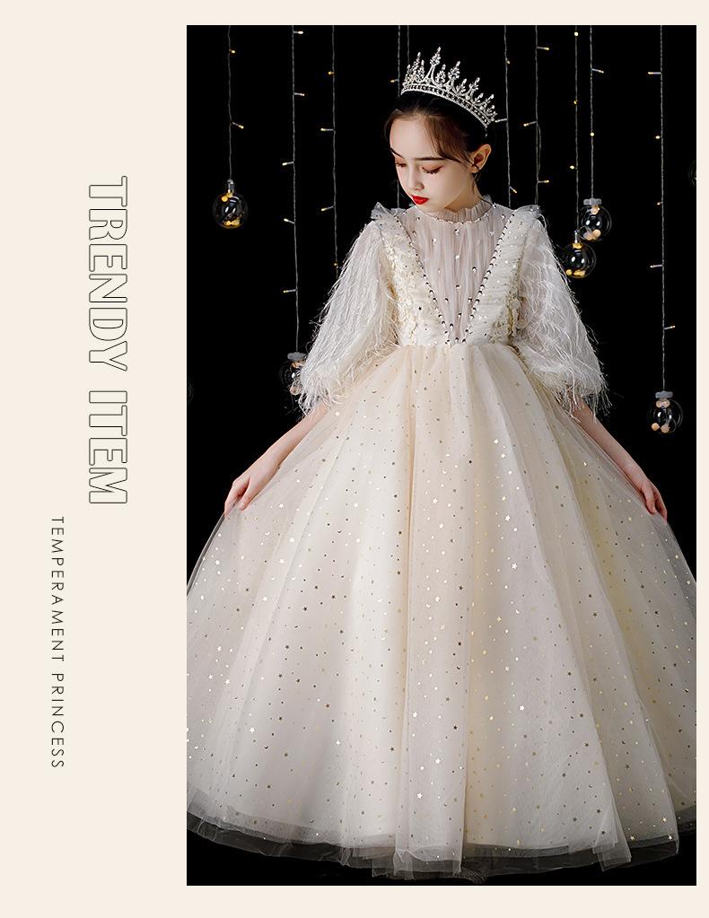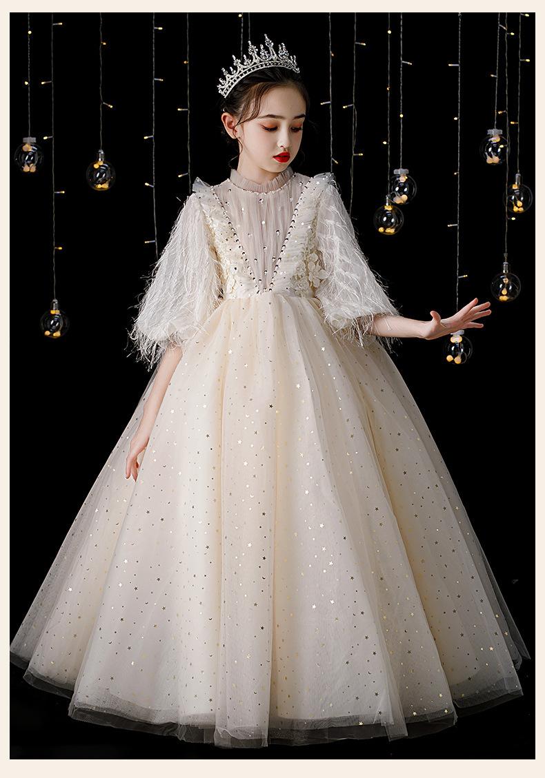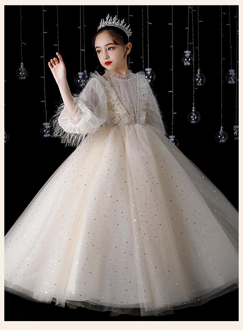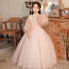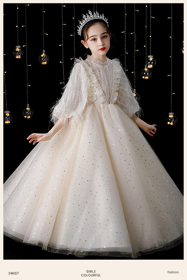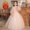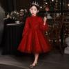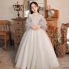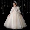 Vestido de Noite Infantil Aniversário da Menina Vestido de Princesa Casamento da Menina de Flor Anfitrião da Menina Vestido de Manga Comprida