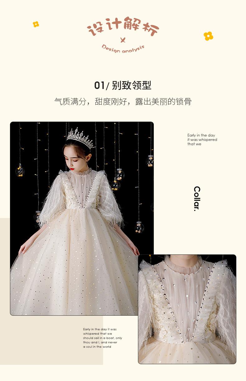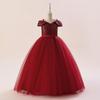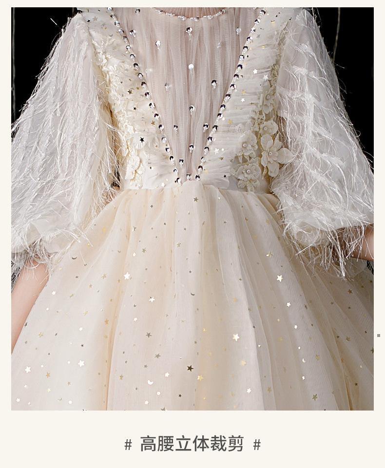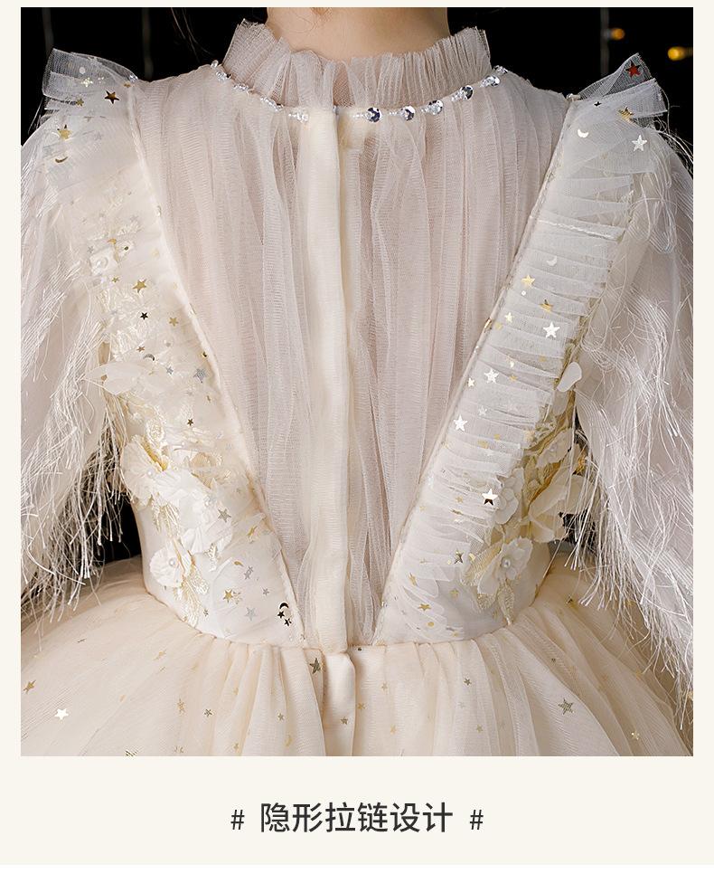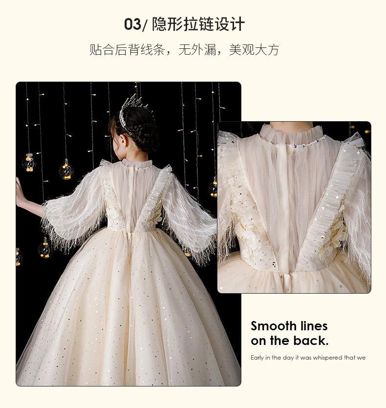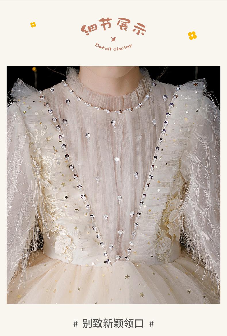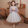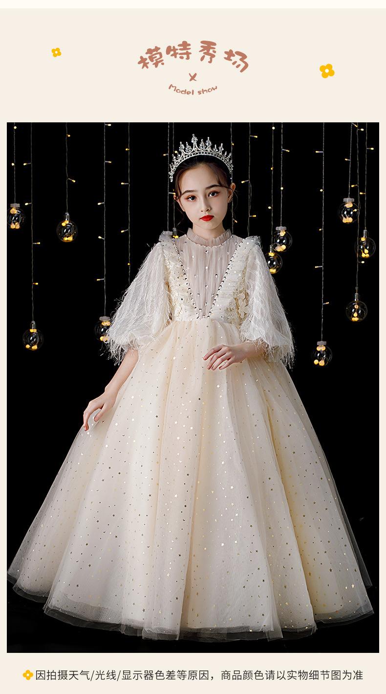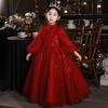 Vestido de Noite Infantil Aniversário da Menina Vestido de Princesa Casamento da Menina de Flor Anfitrião da Menina Vestido de Manga Comprida