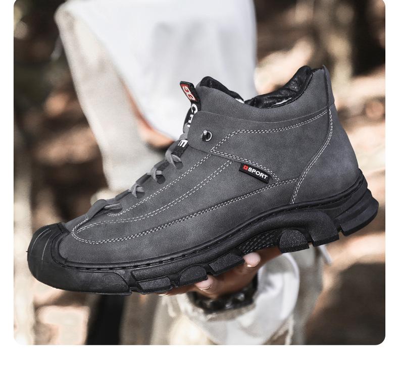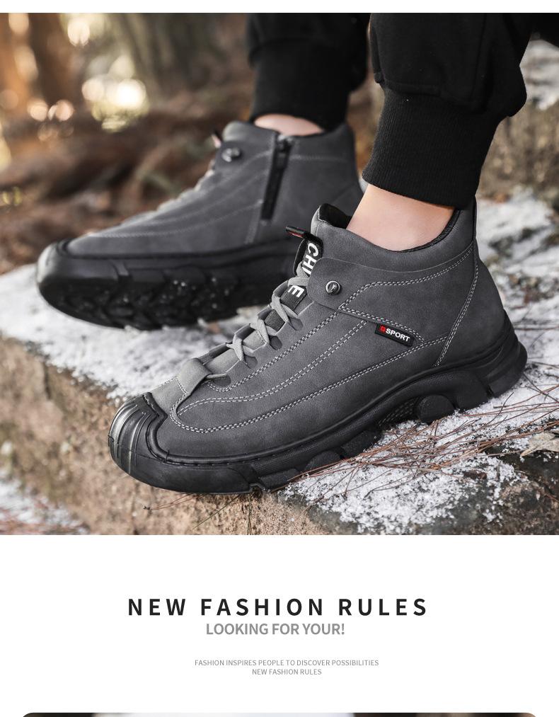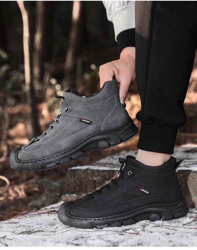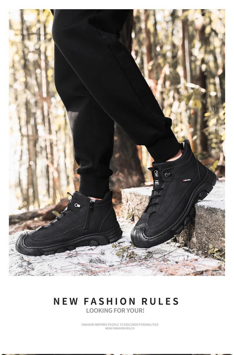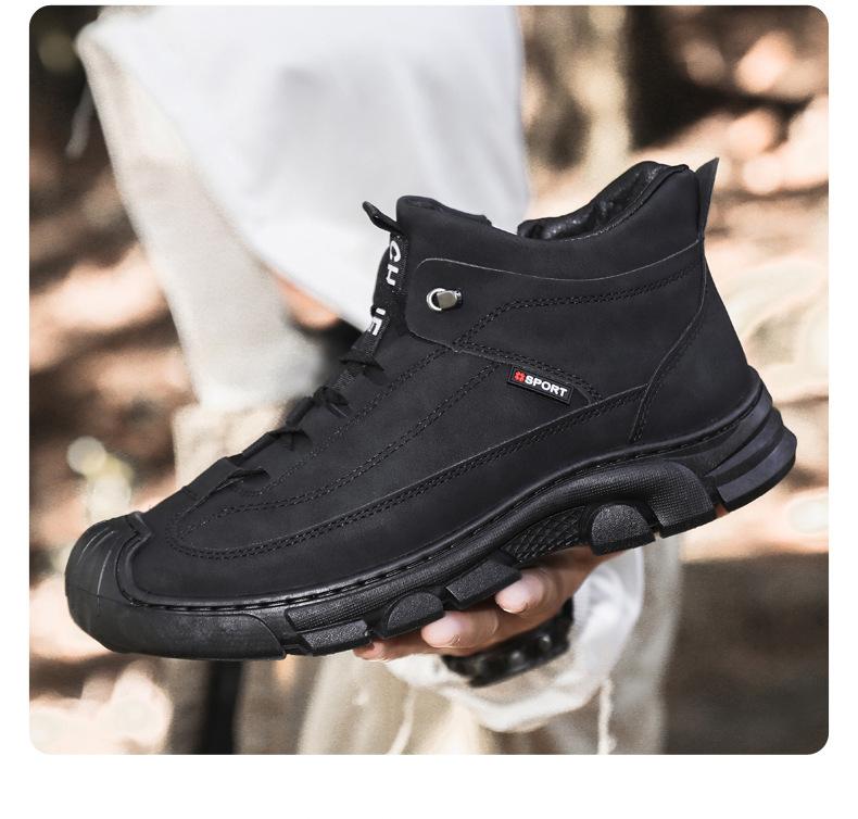 Botas Martin Botas Masculinas de Inverno com forro de lã, sapatos de couro de algodão de cano alto e espessos, sapatos masculinos de couro genuíno britânicos antiderrapantes, botas de neve quentes