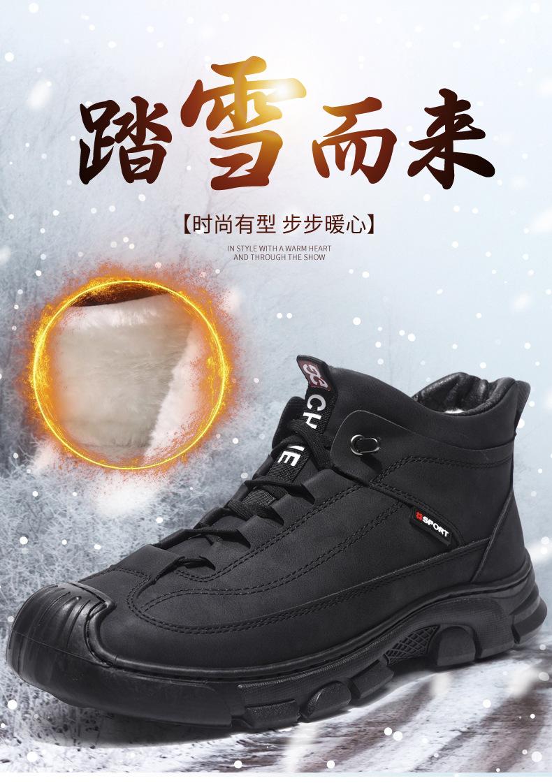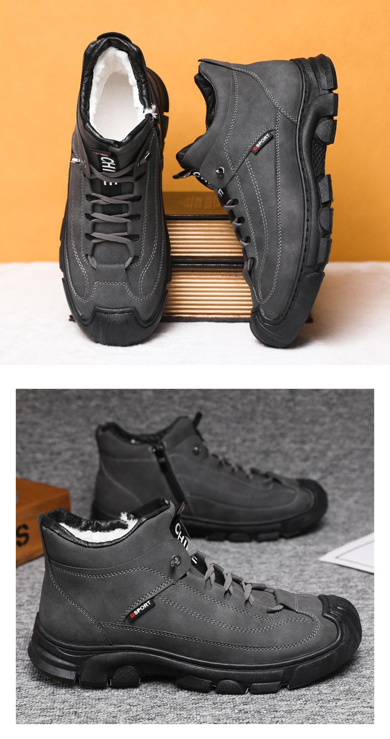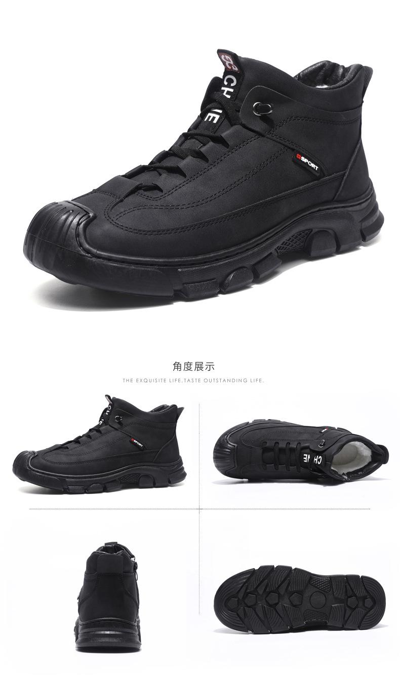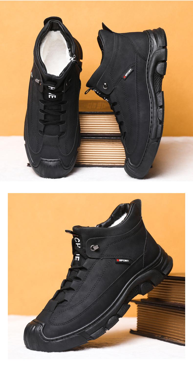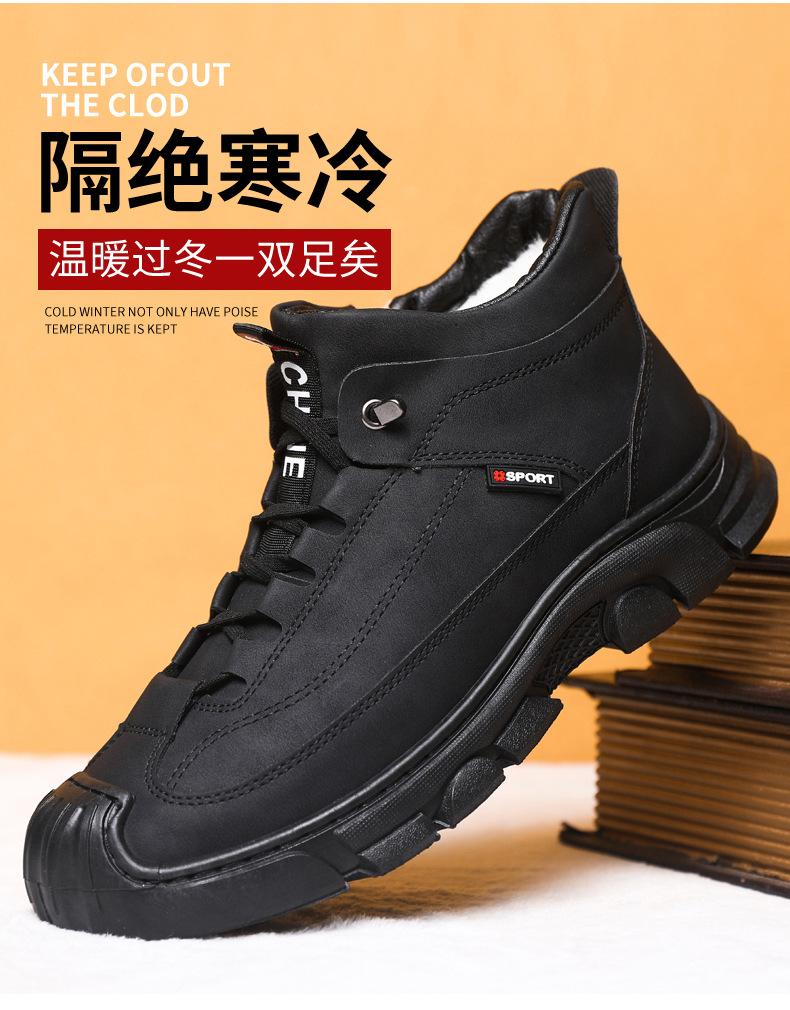 Compre Botas Martin Botas Masculinas de Inverno com forro de lã, sapatos de couro de algodão de cano alto e espessos, sapatos masculinos de couro genuíno britânicos antiderrapantes, botas de neve quentes no atacado no Joom.pro