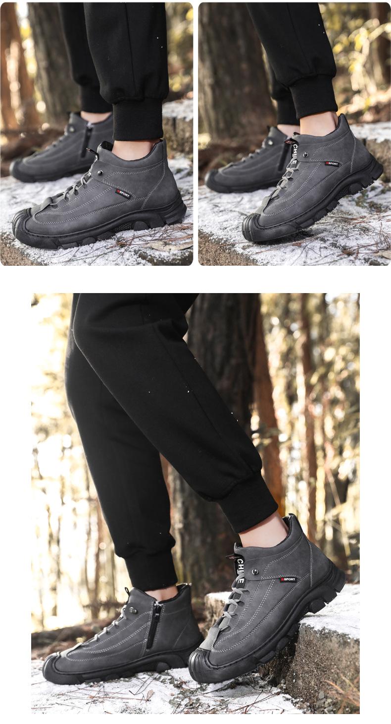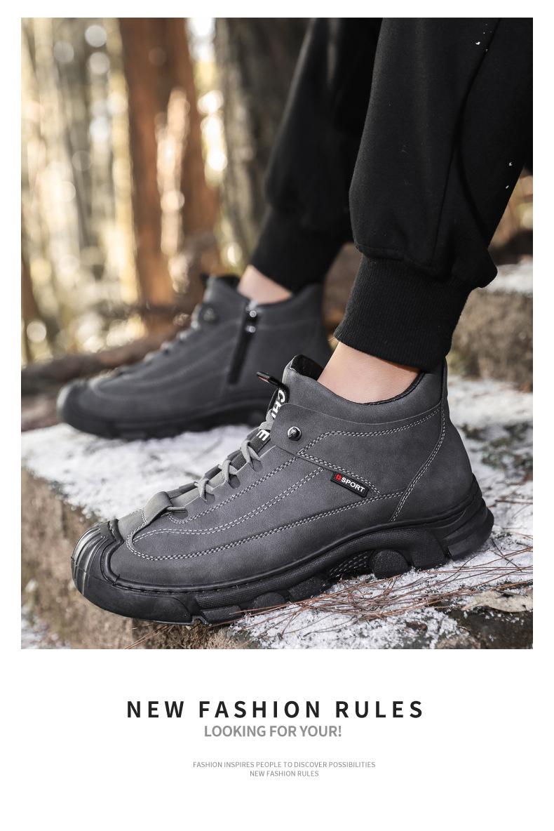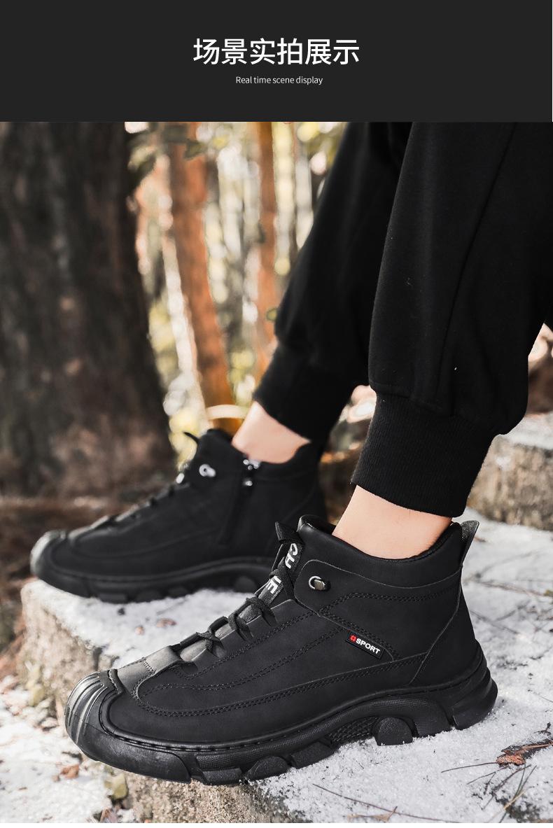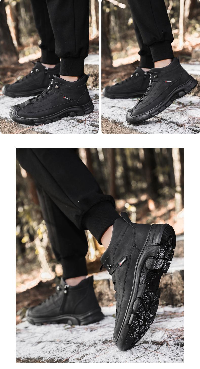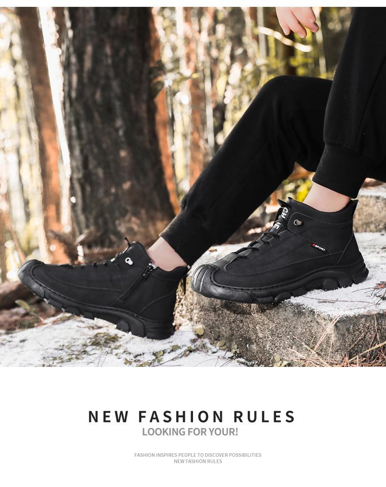 Compre Botas Martin Botas Masculinas de Inverno com forro de lã, sapatos de couro de algodão de cano alto e espessos, sapatos masculinos de couro genuíno britânicos antiderrapantes, botas de neve quentes no atacado no Joom.pro