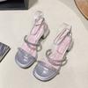 Belas sandálias elegantes de prata das mulheres desgaste exterior verão novo vestido estilo fada strass dedo do pé aberto francês salto alto