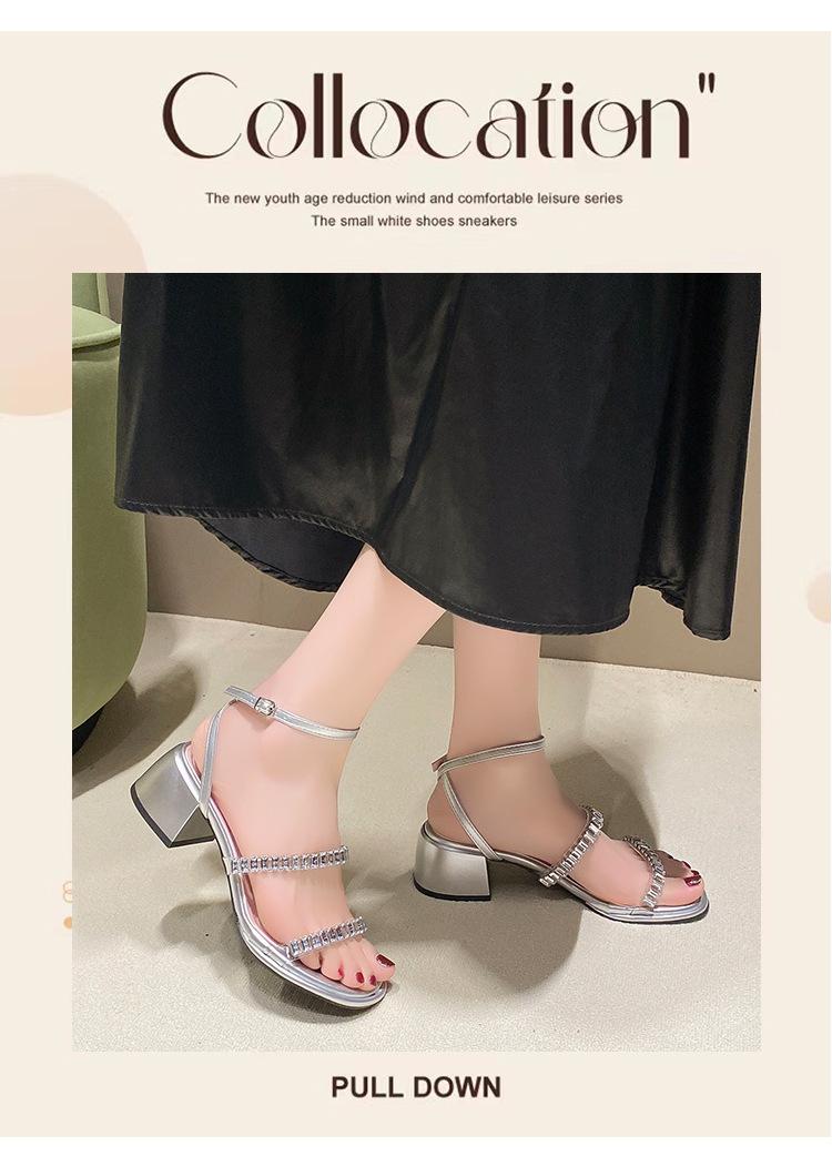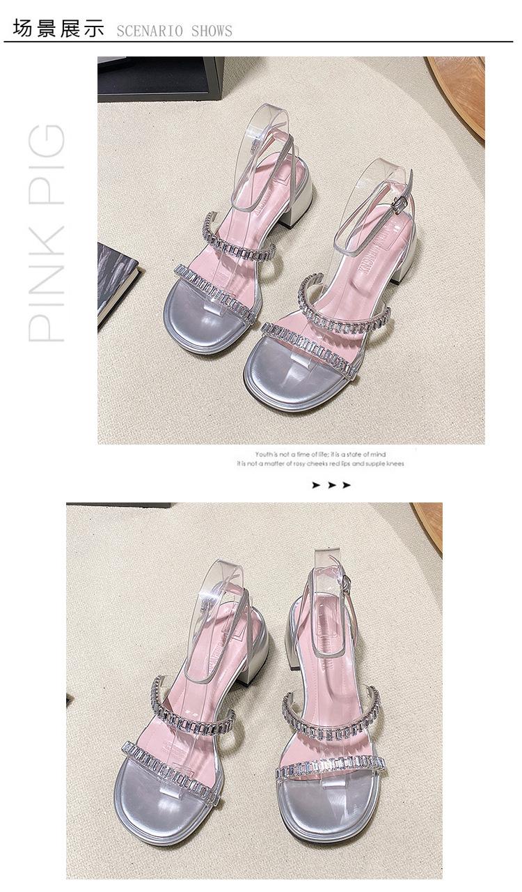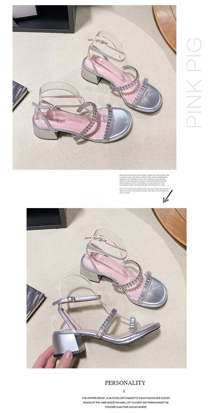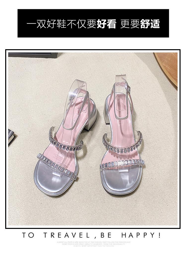 Compre Belas sandálias elegantes de prata das mulheres desgaste exterior verão novo vestido estilo fada strass dedo do pé aberto francês salto alto no atacado no Joom.pro