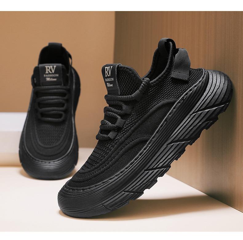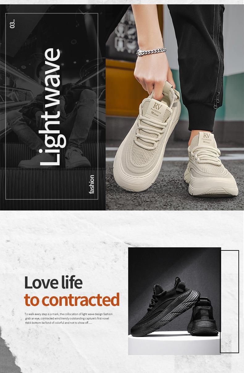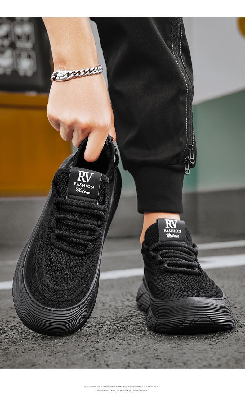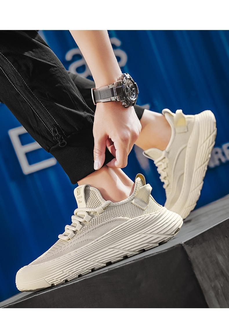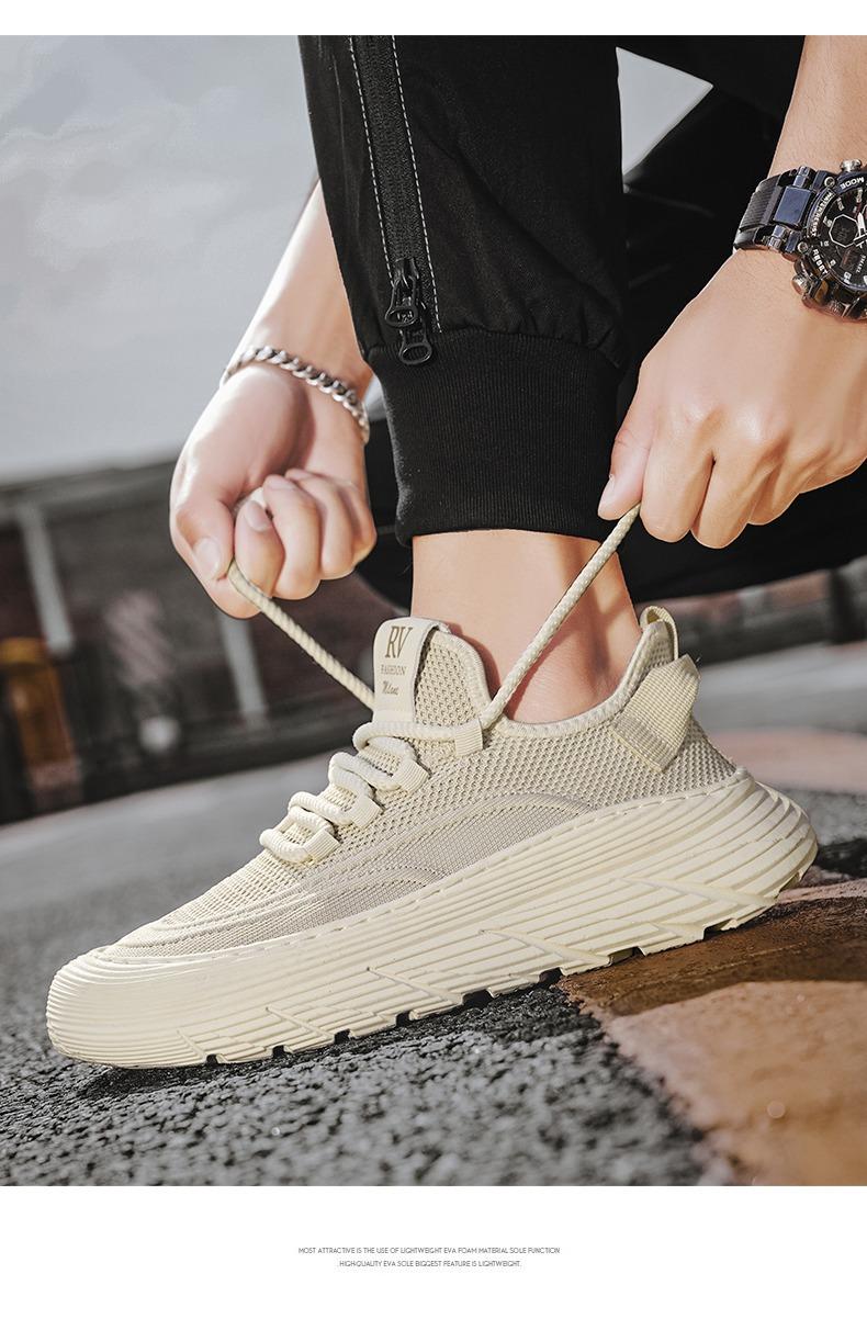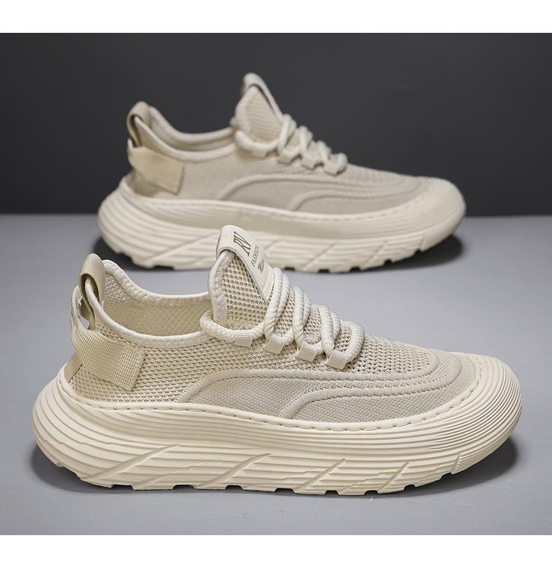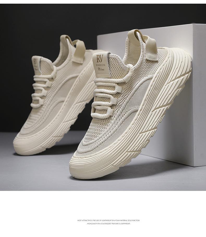 Sapatos Masculinos Novos de Primavera e Verão Solado Grosso Transfronteiriço Fly-Knit Respirável de Malha Sapatos Esportivos e de Lazer Masculinos Finos Leves Sapatos de Pai