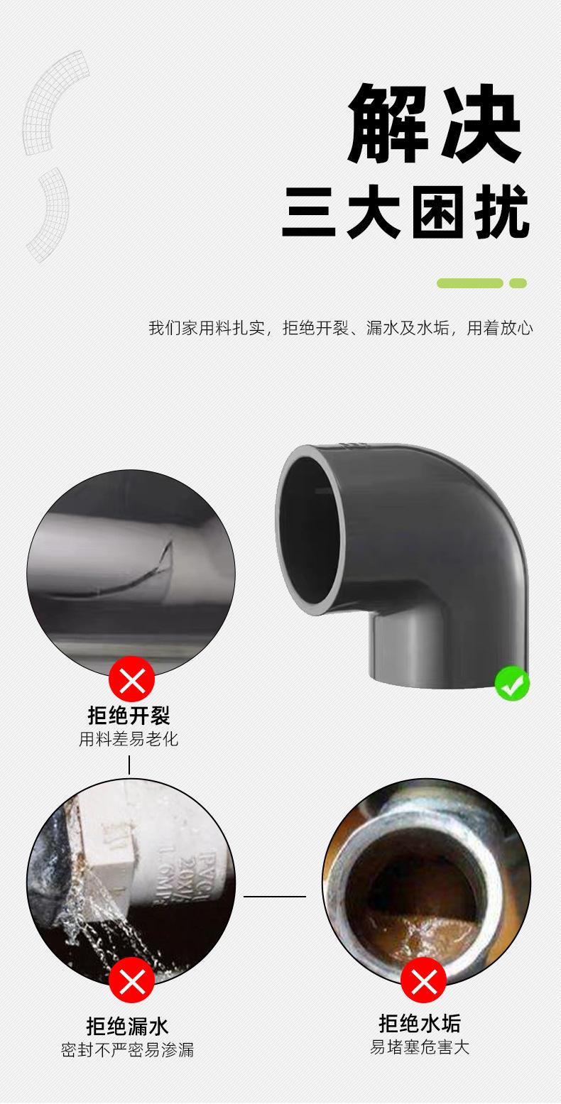 Cotovelo de abastecimento de água em PVC cotovelo de ângulo reto de 90 graus 20 25 32 40 ~ 315 conexões de cotovelo de ângulo de tubo de água superior e inferior