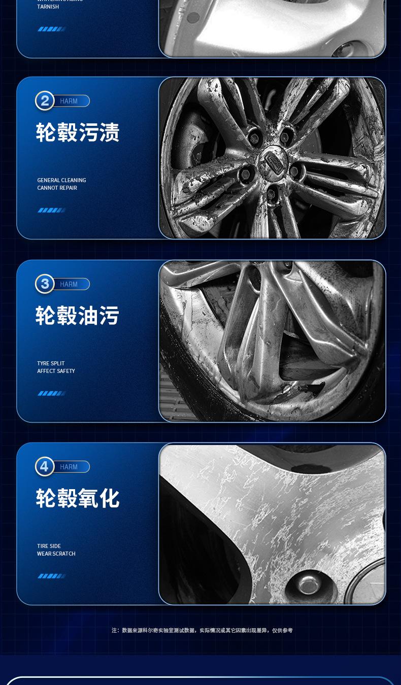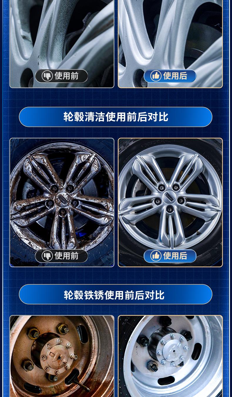 Colqi agente de limpeza do cubo da roda do carro liga de alumínio anel de aço recondicionamento agente redutor removedor de ferrugem descontaminação pó de ferro líquido de lavagem de carro