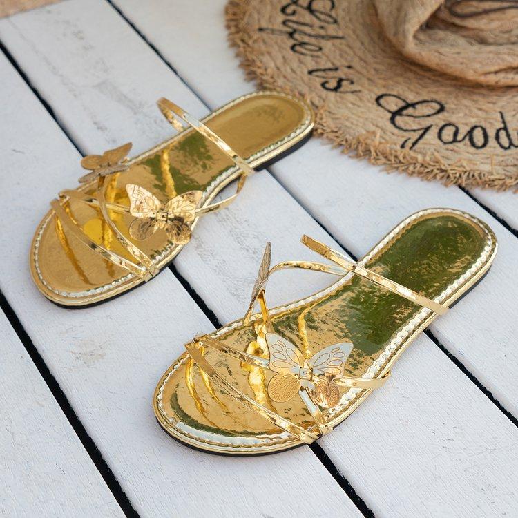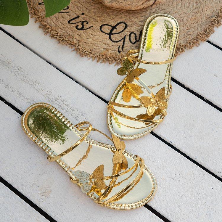 2024 primavera e verão comércio exterior transfronteiriço feminino bico redondo arco plano ao ar livre uma tira plus size sandálias da moda slip-on