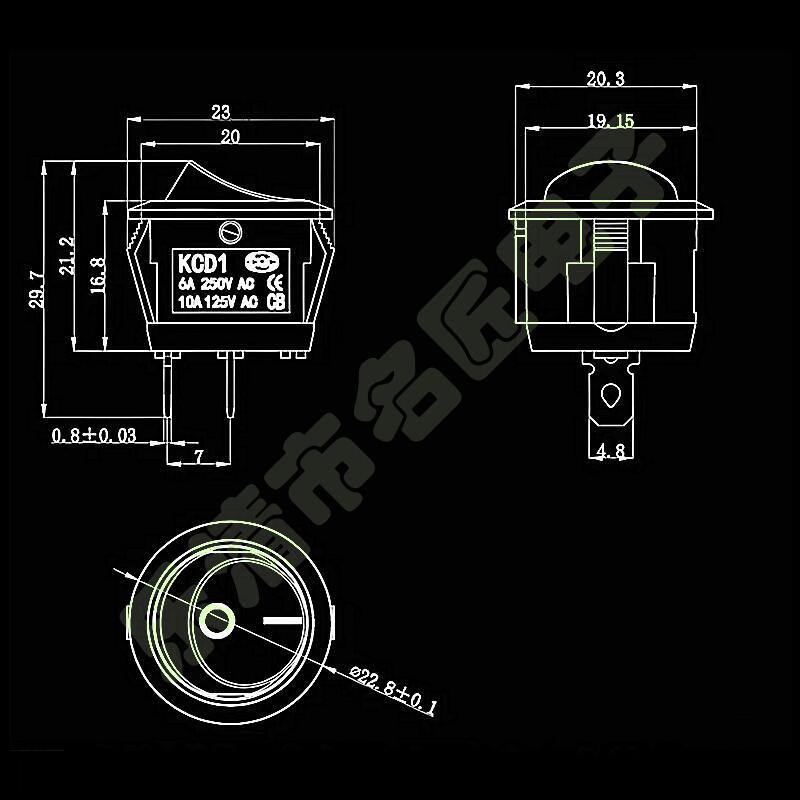 Furo 20mm interruptor de balancim redondo 2 pés 2 engrenagem preto KCD1 interruptor de balancim redondo interruptor de alimentação redondo