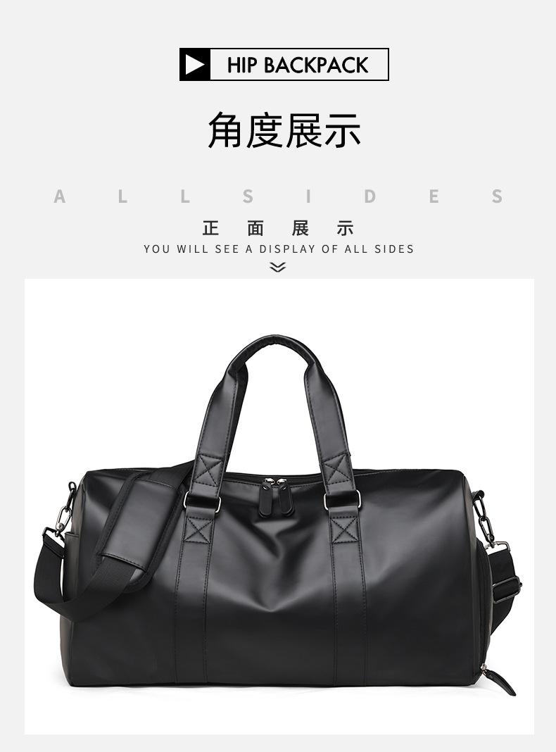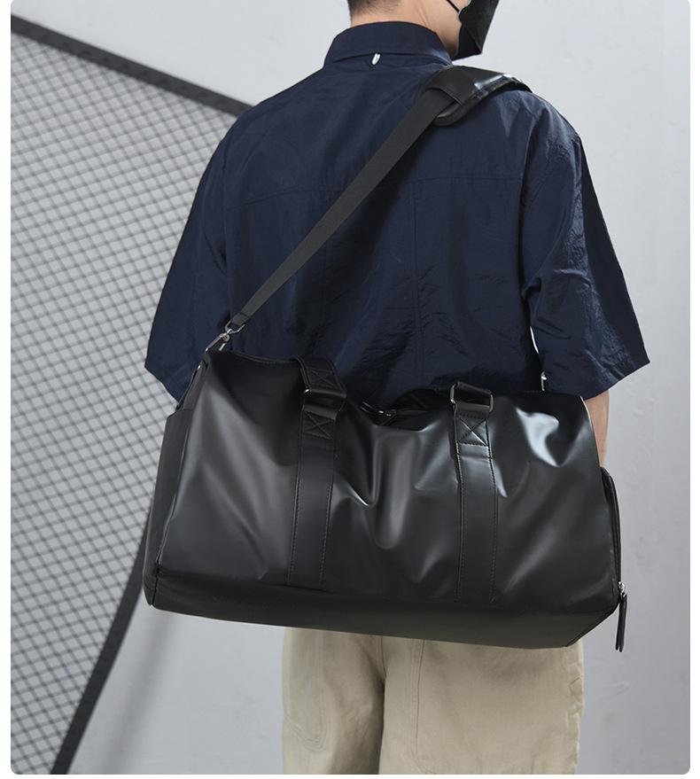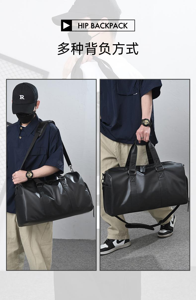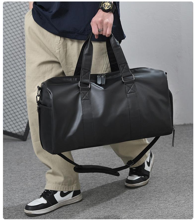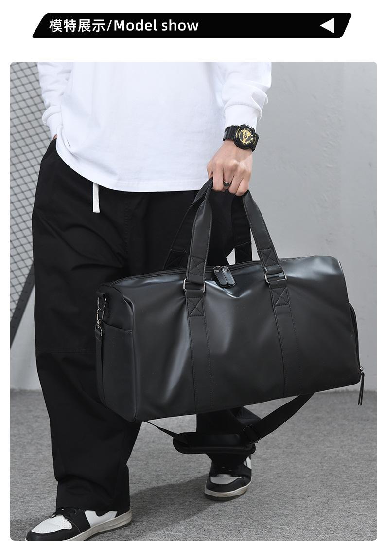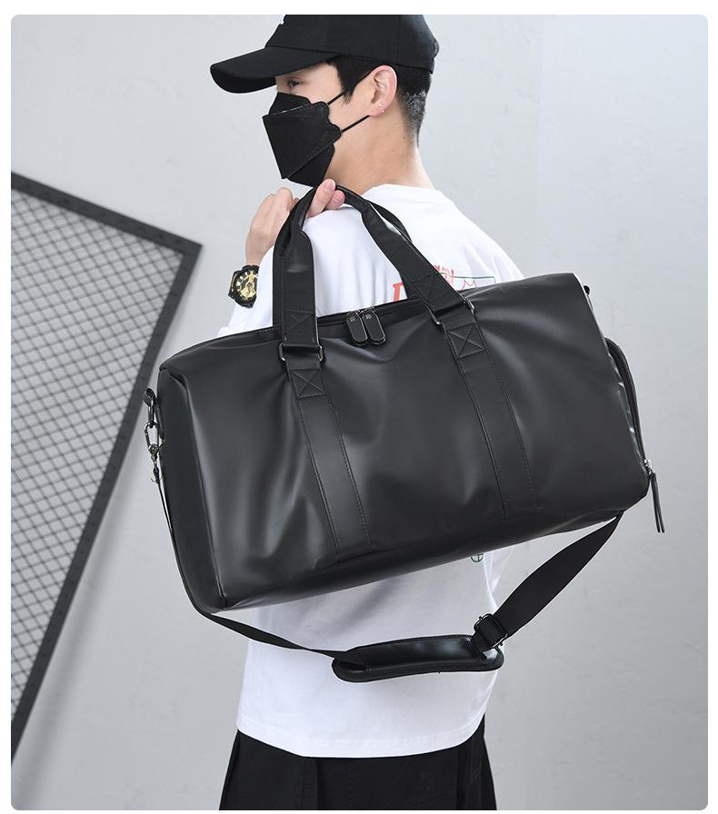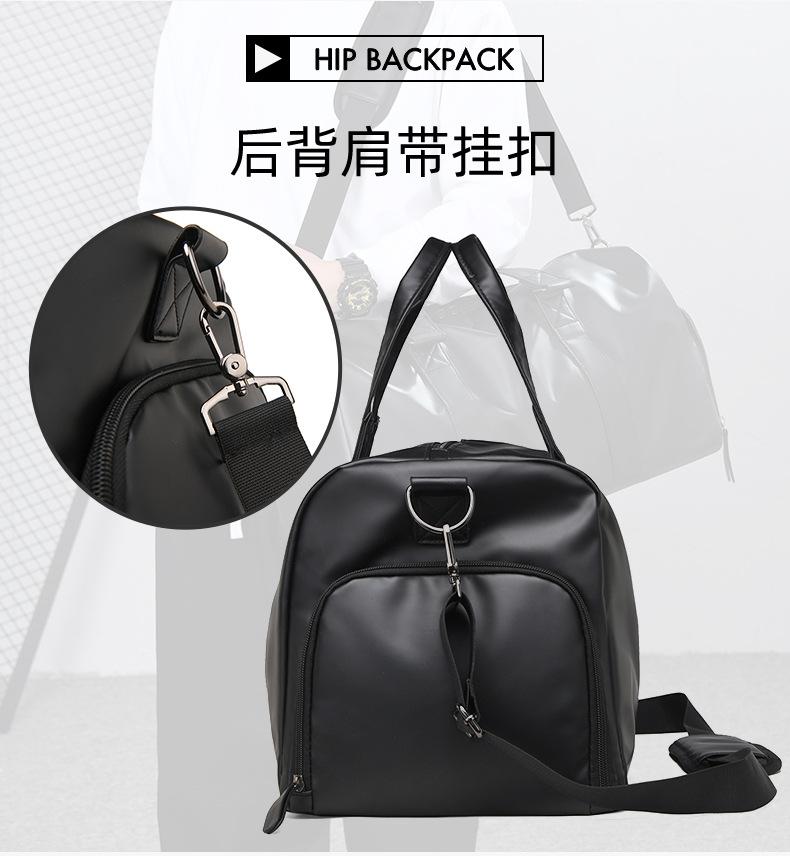 um:A bolsa de viagem usa hardware galvanizado que não desbota