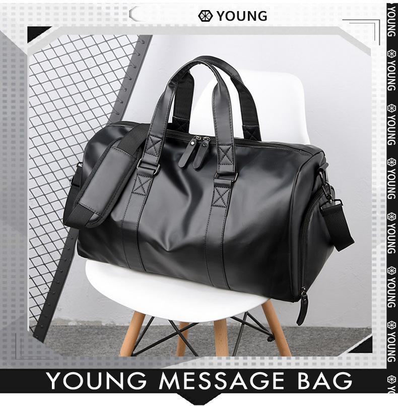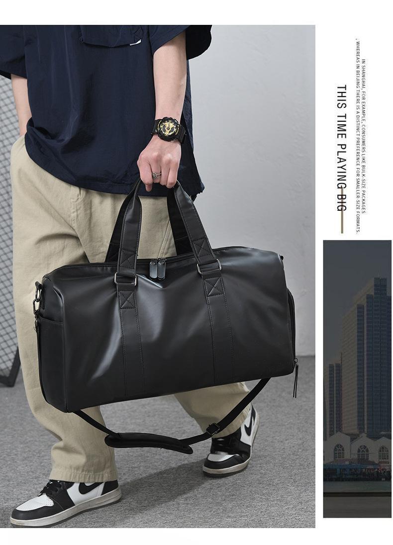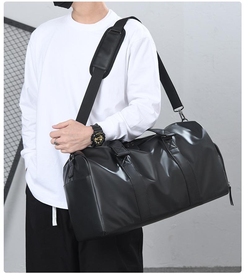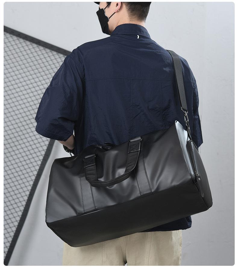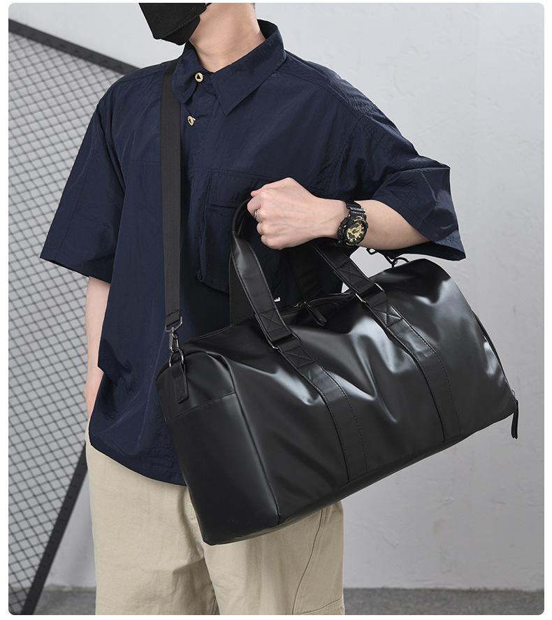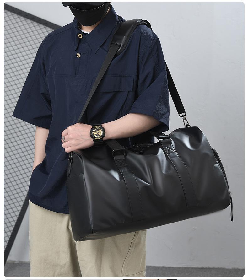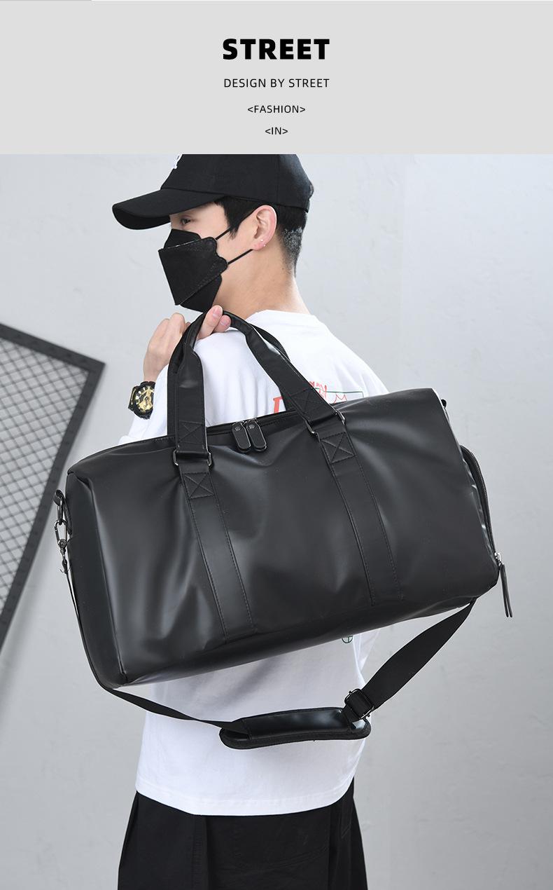 um:A bolsa de viagem usa hardware galvanizado que não desbota