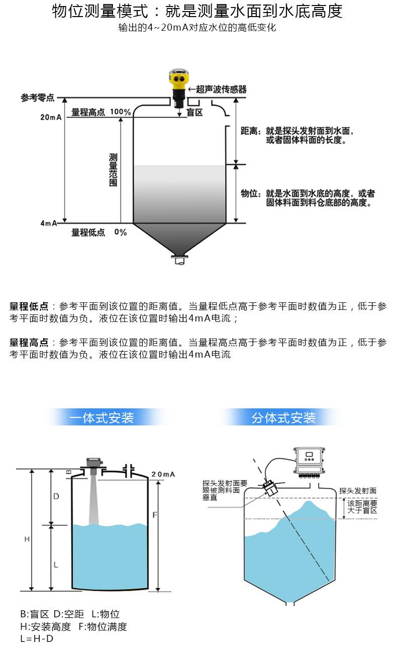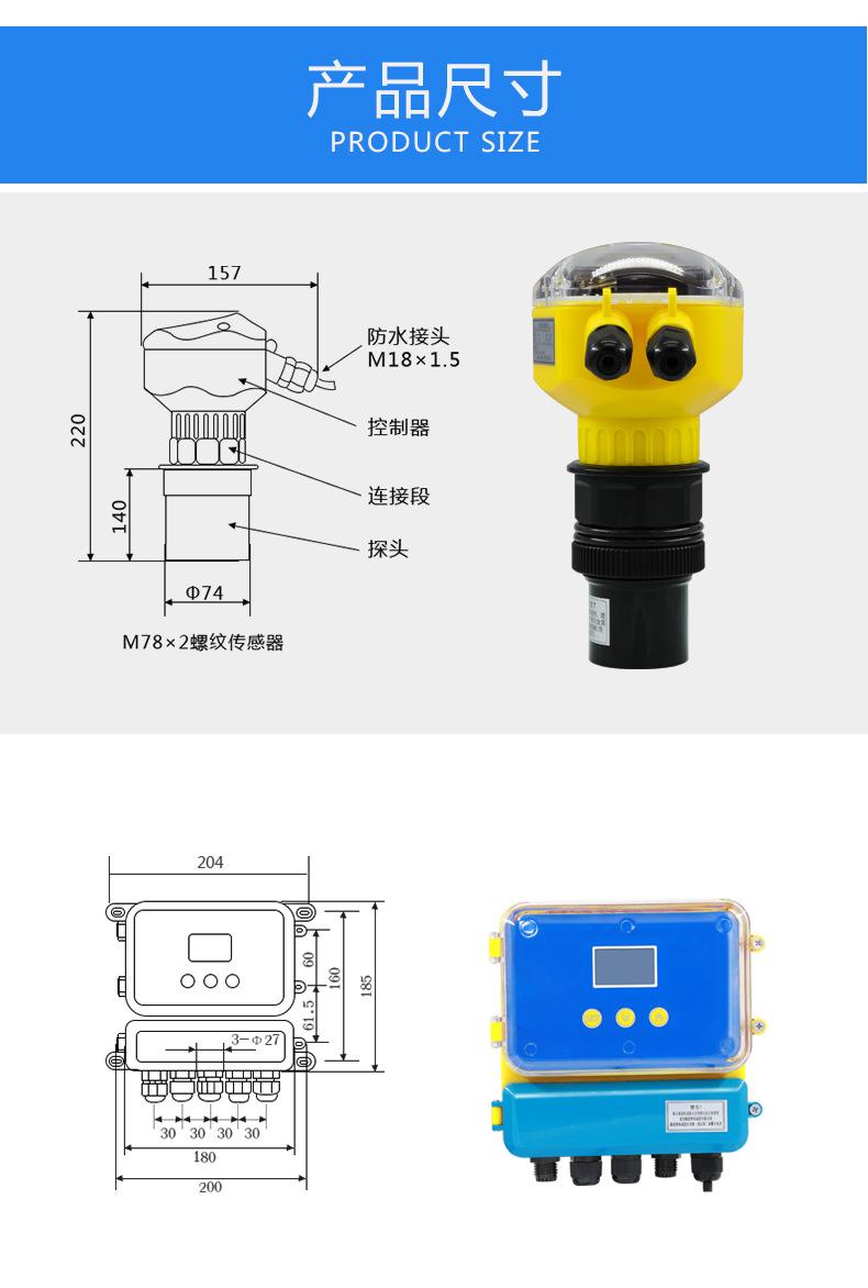 Medidor de Nível de Líquido Ultrassônico Integrado Separado Sensor Medidor de Nível Medidor de Nível Dois Fios 4-20Ma Quatro Fios