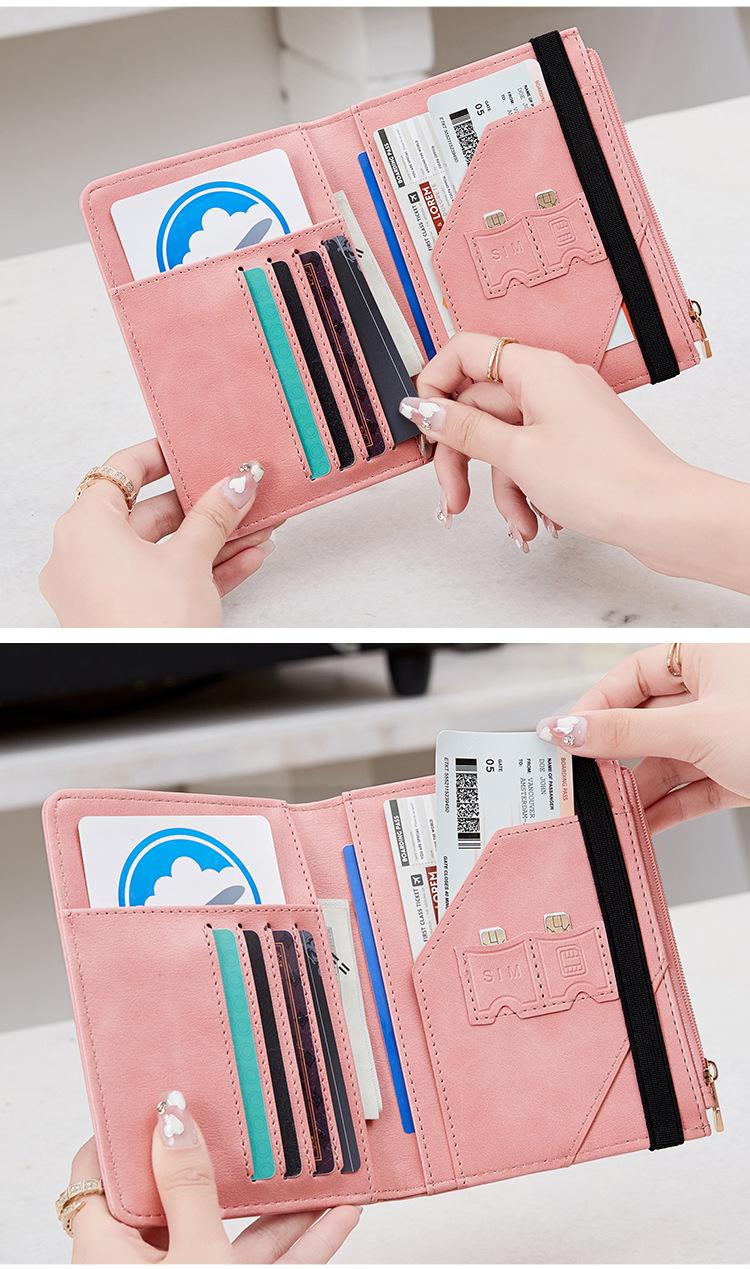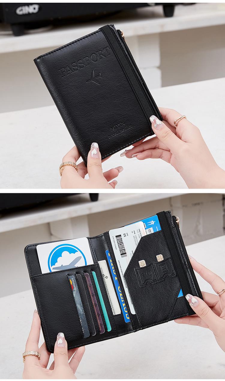 Bolsa para passaporte RFID com zíper, carteira longa, armazenamento de tíquetes, bolsa para documentos, porta-passaporte de viagem multifuncional