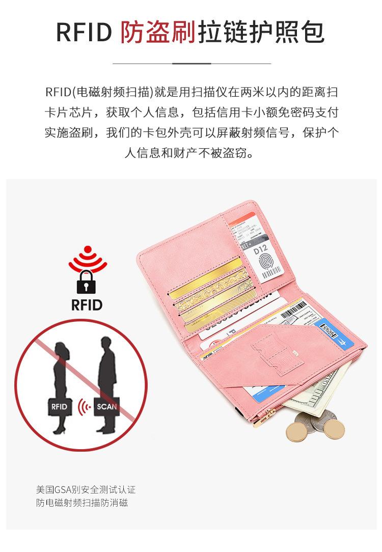 Transfronteiriço novo RFID anti-roubo escova id saco curto zíper passaporte titular do cartão multi-funcional do passaporte titular do passaporte de viagem