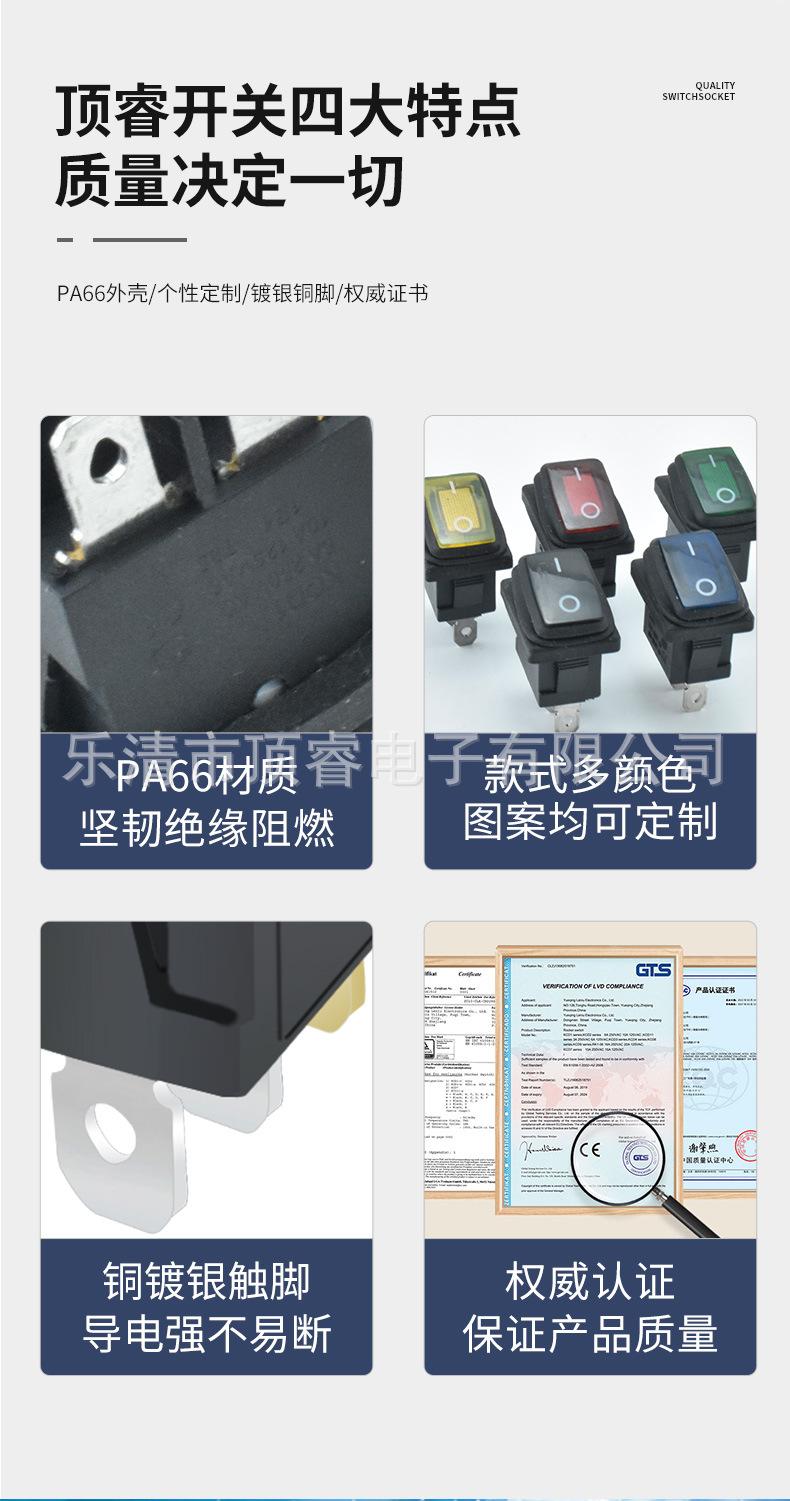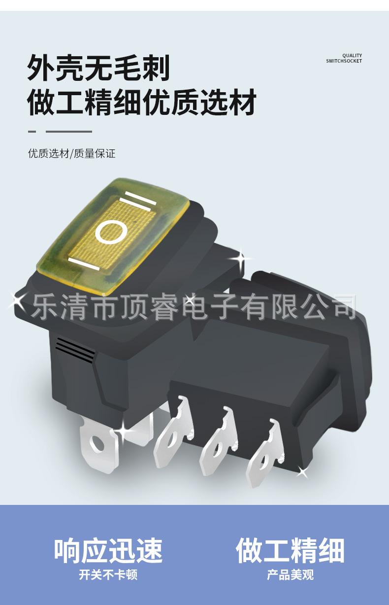 Introdução à troca de barco: A troca de barco também é chamada de troca de onda. Sua estrutura é a mesma do interruptor de botão, exceto que a alça do botão foi substituída por um formato de barco. O interruptor do barco é frequentemente usado como interruptor de energia de equipamentos eletrônicos. Seus contatos são divididos em pólo único de curso único e pólo duplo de curso duplo. Alguns interruptores precisam ser equipados com luzes e luzes indicadoras. Faixa de aplicação: Os interruptores basculantes são usados em dispensadores de água, esteiras, alto-falantes de computador, carros elétricos, motocicletas, TVs de plasma, cafeteiras, filtros de linha, máquinas de massagem, etc. Eles são usados principalmente em eletrodomésticos. O método de teste da vida útil do interruptor basculante: teste principalmente o número de aberturas e fechamentos, até que ele esteja danificado. Se você não precisar fazer isso manualmente, pode usar um pequeno motor para acionar o interruptor excêntrico de abertura e fechamento e usar um contador para registrar o número de vezes! Este interruptor requer certificação de segurança. Se o produto for vendido internamente, ele usa CQC. Se for vendido no exterior, depende de qual país é vendido, como UL nos Estados Unidos, CUL no Canadá e VDE, ENEC, TUV e outras certificações de segurança em países europeus. Classificação do interruptor basculante: 1. SPST: 1 contato móvel e 1 contato estático. Apenas 1 canal 2. Contato unipolar de dupla ação: 1 contato móvel e 2 contatos estacionários (os contatos estacionários em ambos os lados podem ser conectados separadamente) 3. Bipolar, simples, 2 contatos móveis e 2 contatos estacionários, com 2 canais 4. Bipolar, duplo curso, 2 contatos móveis e 4 contatos estáticos, com 4 canais (os 2 contatos estáticos em ambos os lados podem ser conectados separadamente) Problema de falha do interruptor basculante: Há uma folha de metal dentro do interruptor em forma de barco com um fulcro de mola no meio. A mola está deslocada e o suporte de plástico está envelhecendo e deformado, então o interruptor não é flexível. Você pode desconectar a energia e dar uma olhada. Se as peças de plástico não estiverem danificadas, ele pode ser restaurado. A linha neutra dentro do interruptor é reta e não tem nada a ver com os componentes do interruptor. Portanto, se o interruptor desarmar e o interruptor de ar estiver ligado, a camada de isolamento da linha neutra que passa pelo interruptor está danificada. Você pode cortar a seção danificada e religá-la. Preste atenção ao isolamento. Também pode ser que o pé da luz indicadora esteja em curto-circuito, então basta religá-lo.。